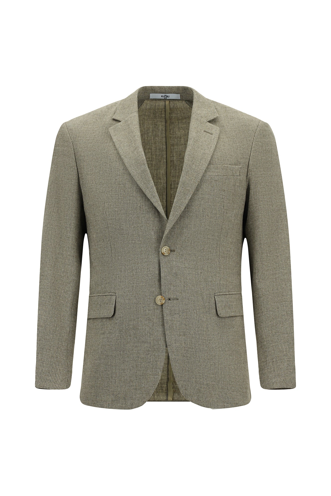 Orta Bej Relaxed Fit Rahat Kesim Desenli Yünlü Ceket