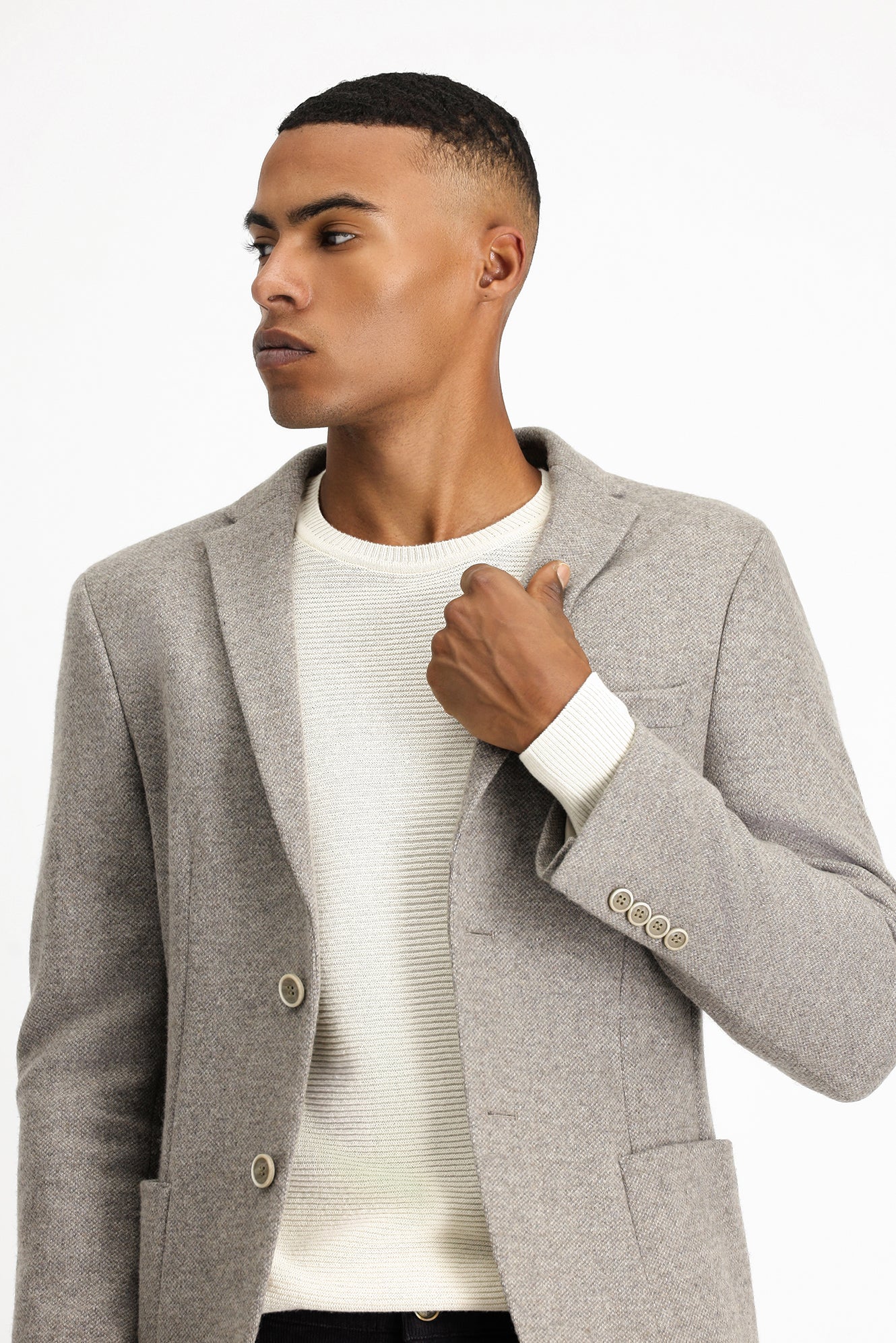Orta Bej Relaxed Fit Rahat Kesim Yünlü Spor Ceket