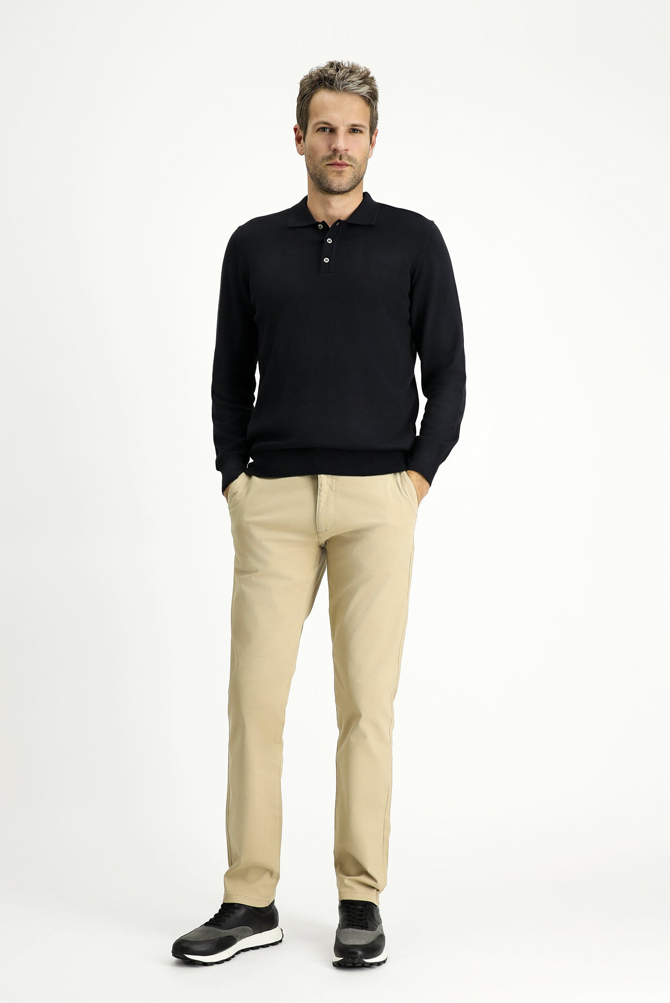 Orta Bej 7 Drop Slim Fit Dar Kesim Likralı Kanvas / Chino Pantolon