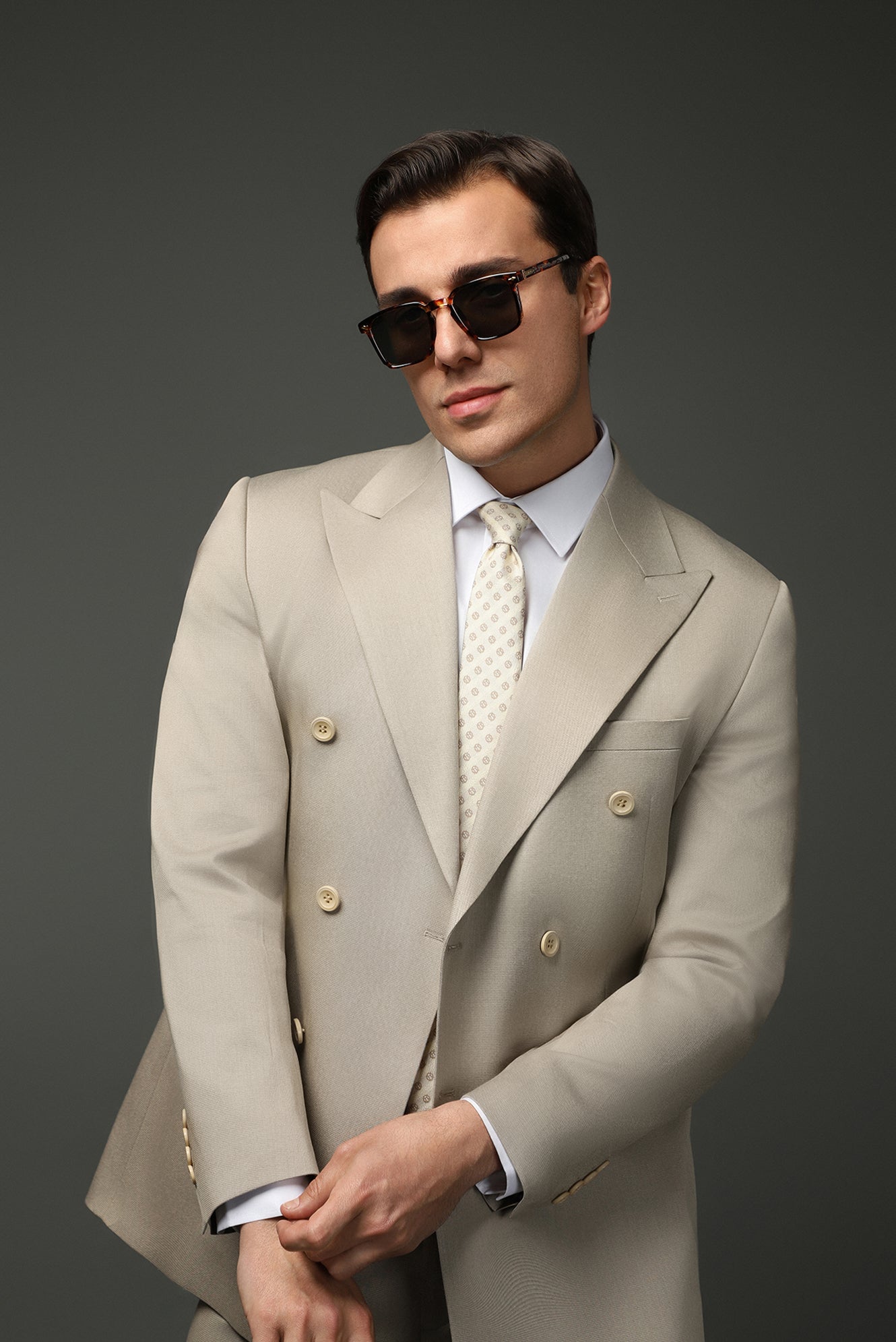 Orta Bej 7 Drop Super Slim Fit Eksra Dar Kesim Pamuklu Lyocell Kruvaze Takım Elbise