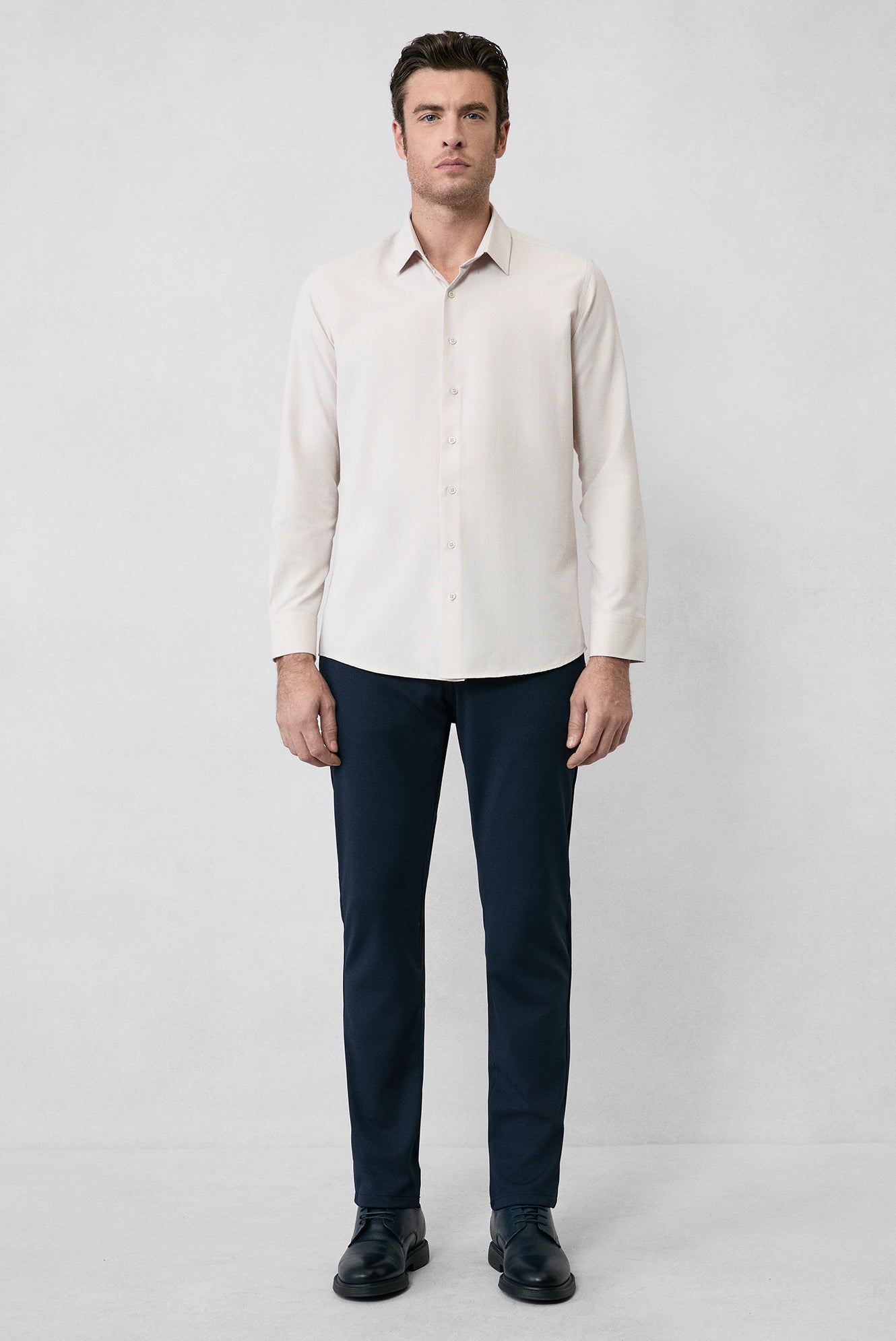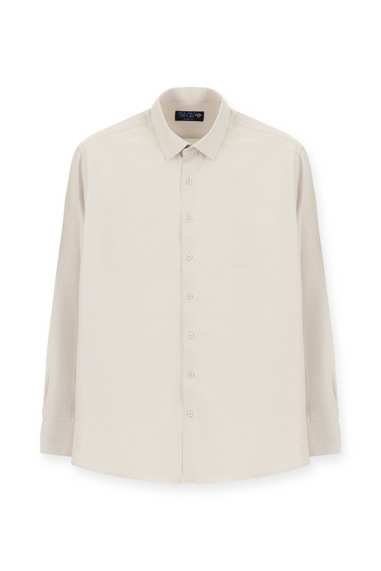 Orta Bej Uzun Kol Slim Fit Klasik Yaka Pamuklu Kolay Ütülenebilir Oxford 4 Mevsim Gömlek