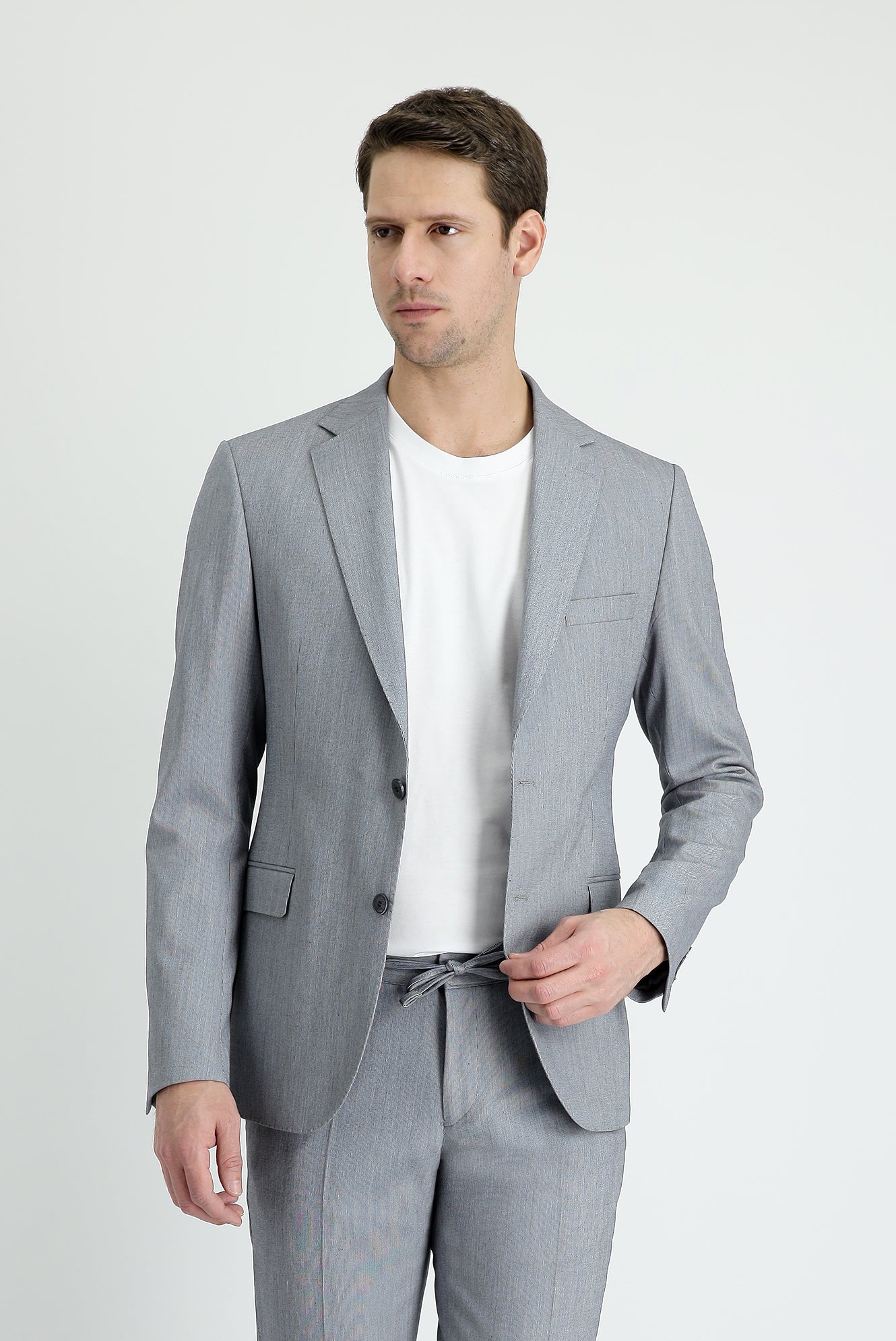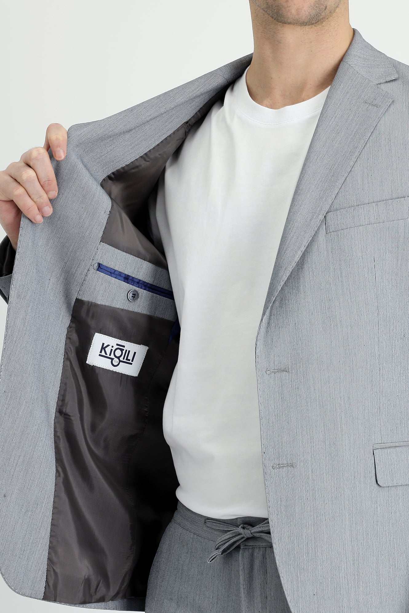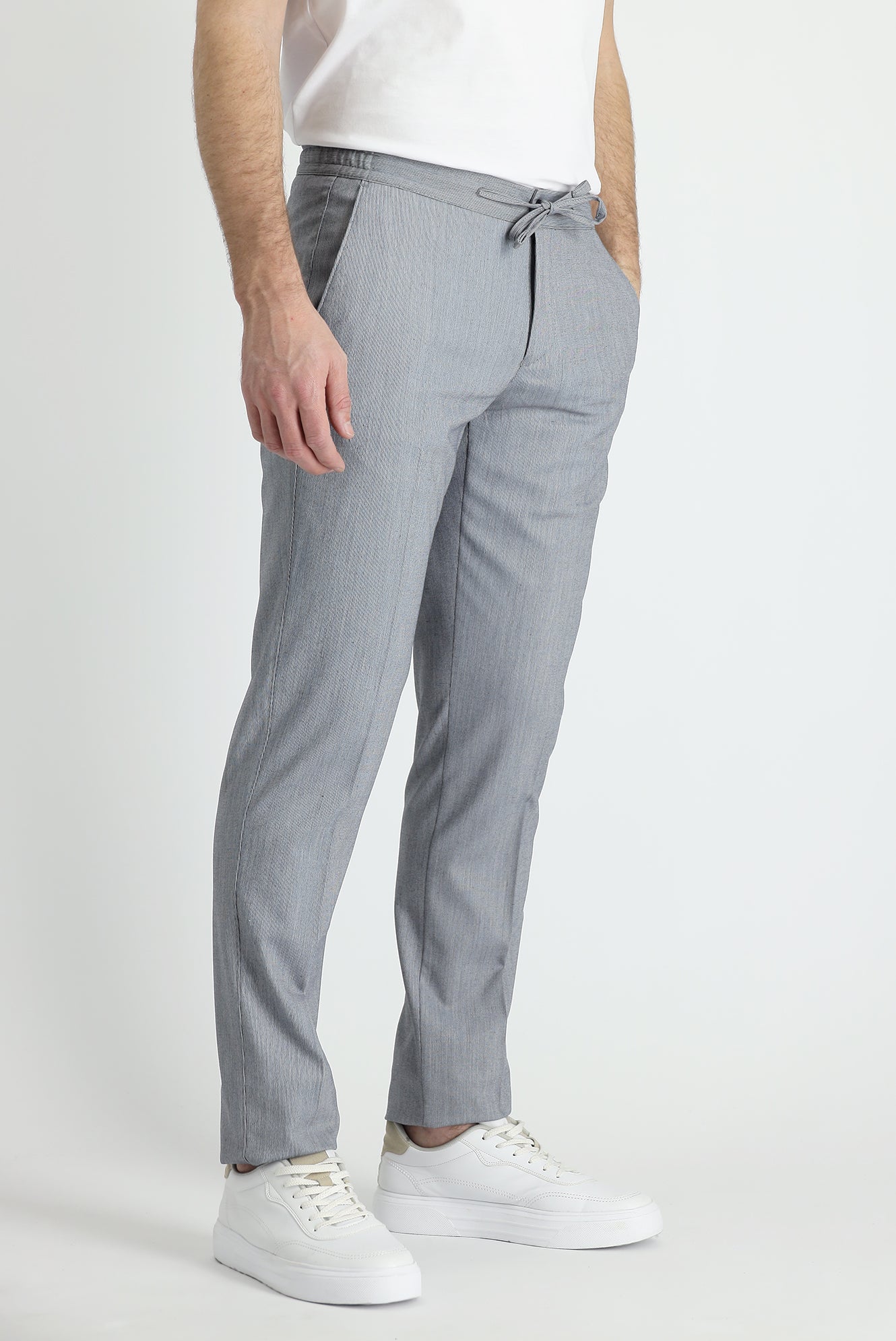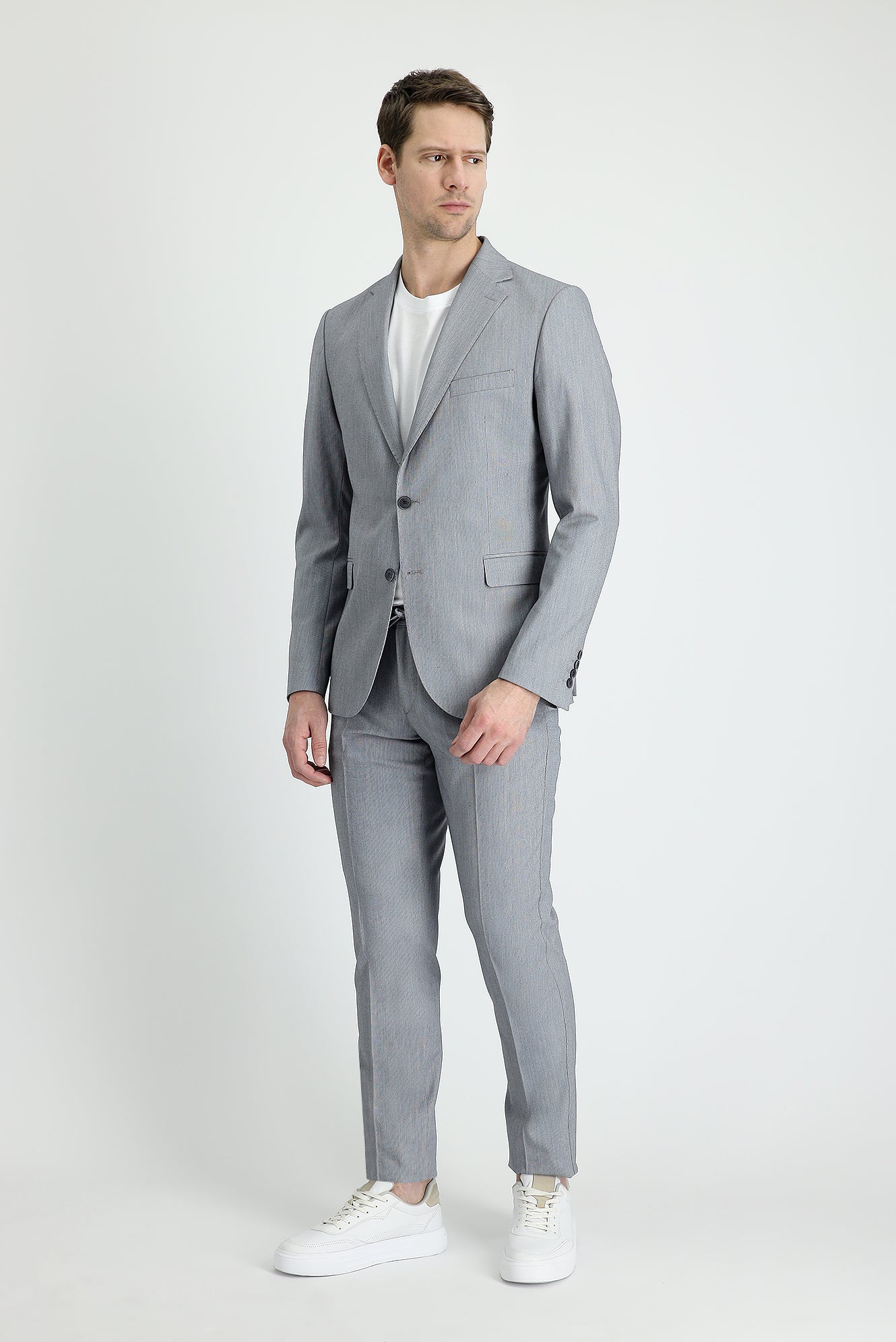 Orta Füme Muscle Fit Beli Lastikli İpli Takım Elbise