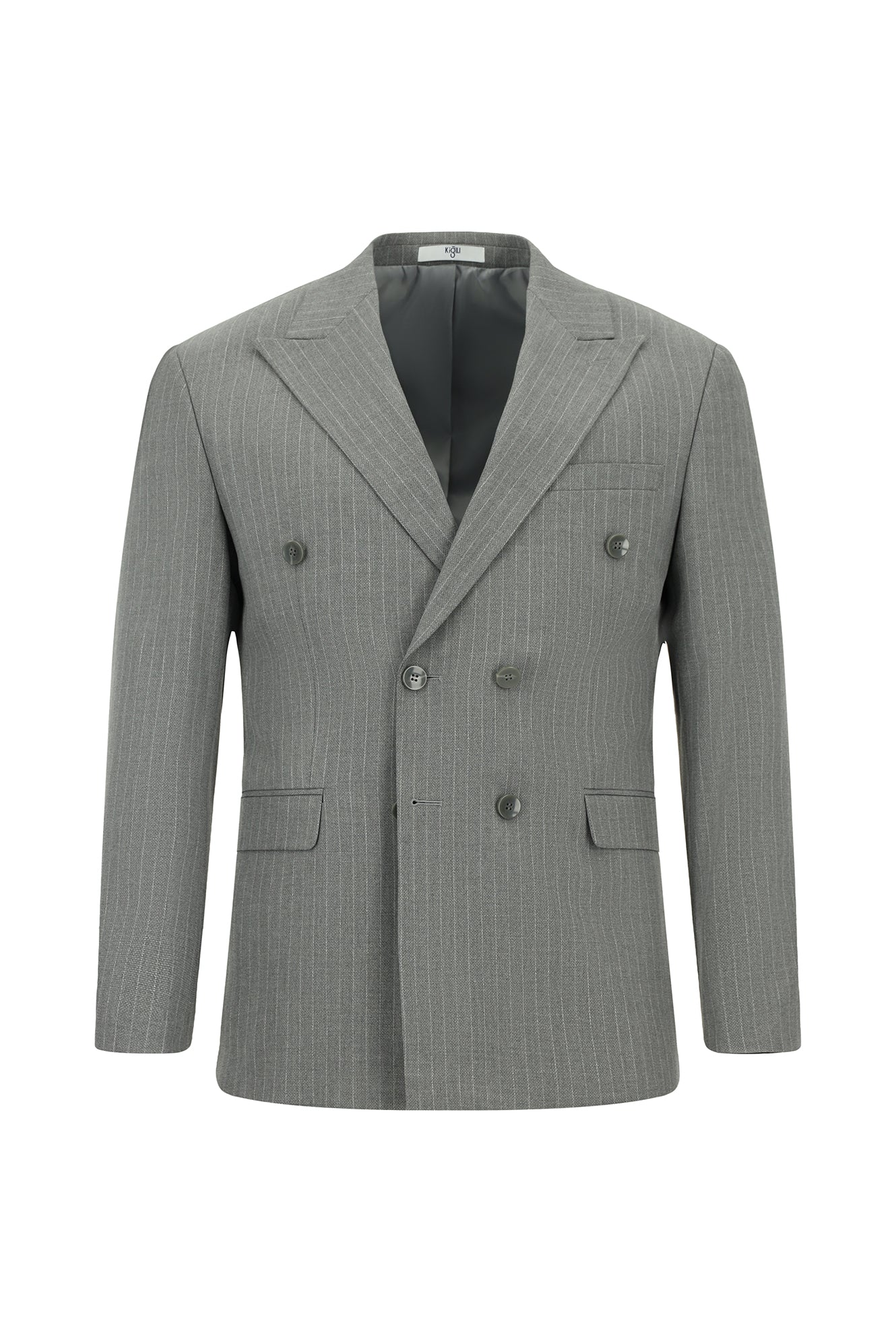 Orta Füme 6 Drop Regular Fit Standart Kesim Çizgili Kruvaze Takım Elbise