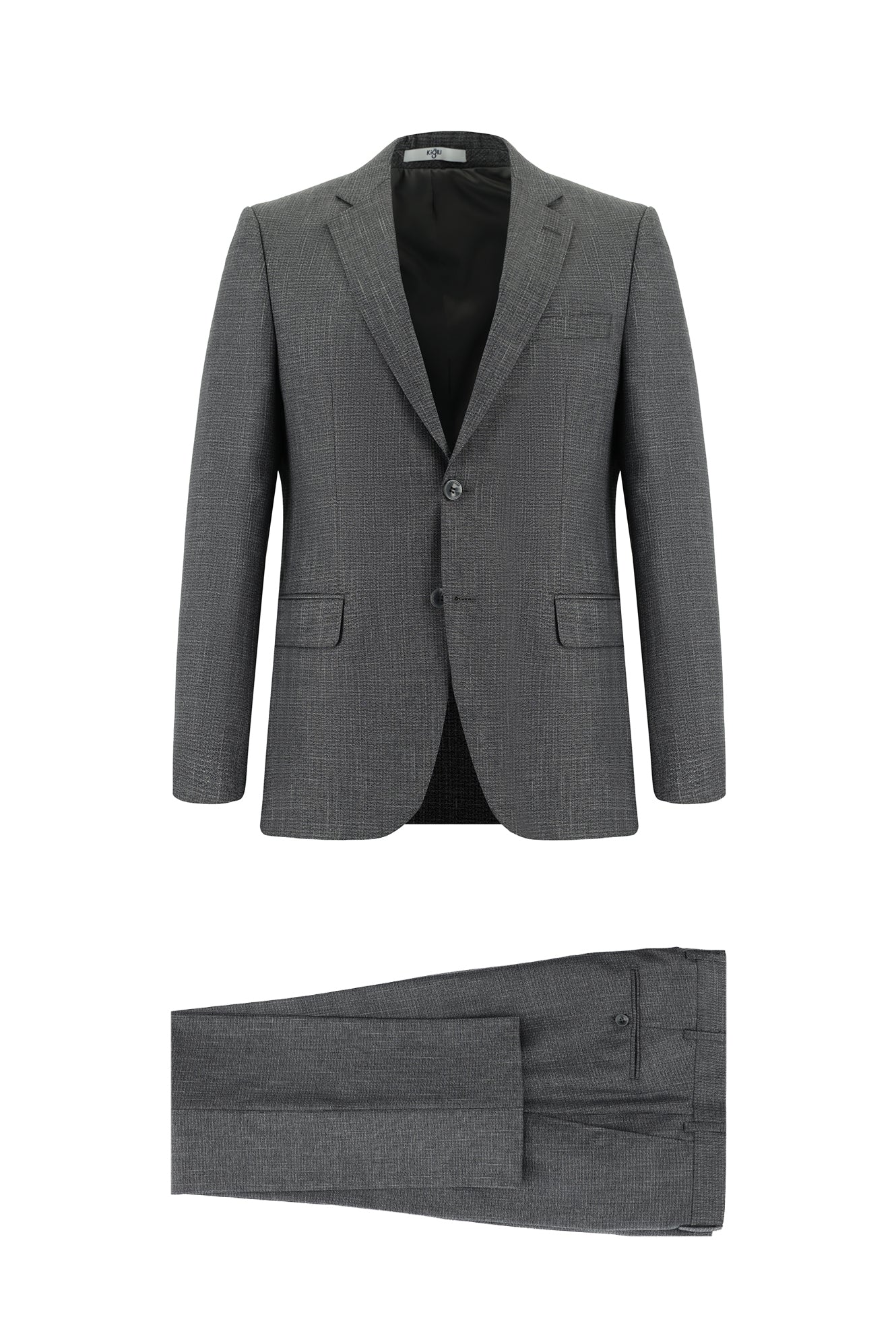 Orta Füme 6 Drop Regular Fit Standart Kesim Desenli Takım Elbise