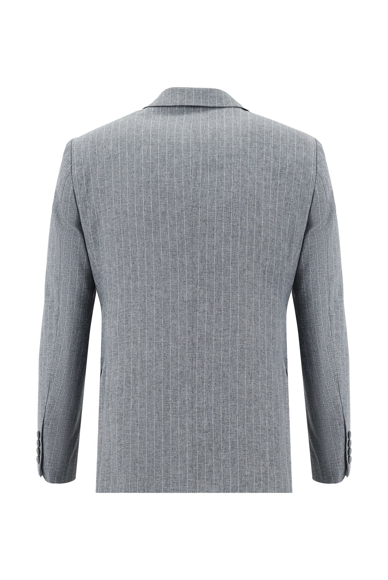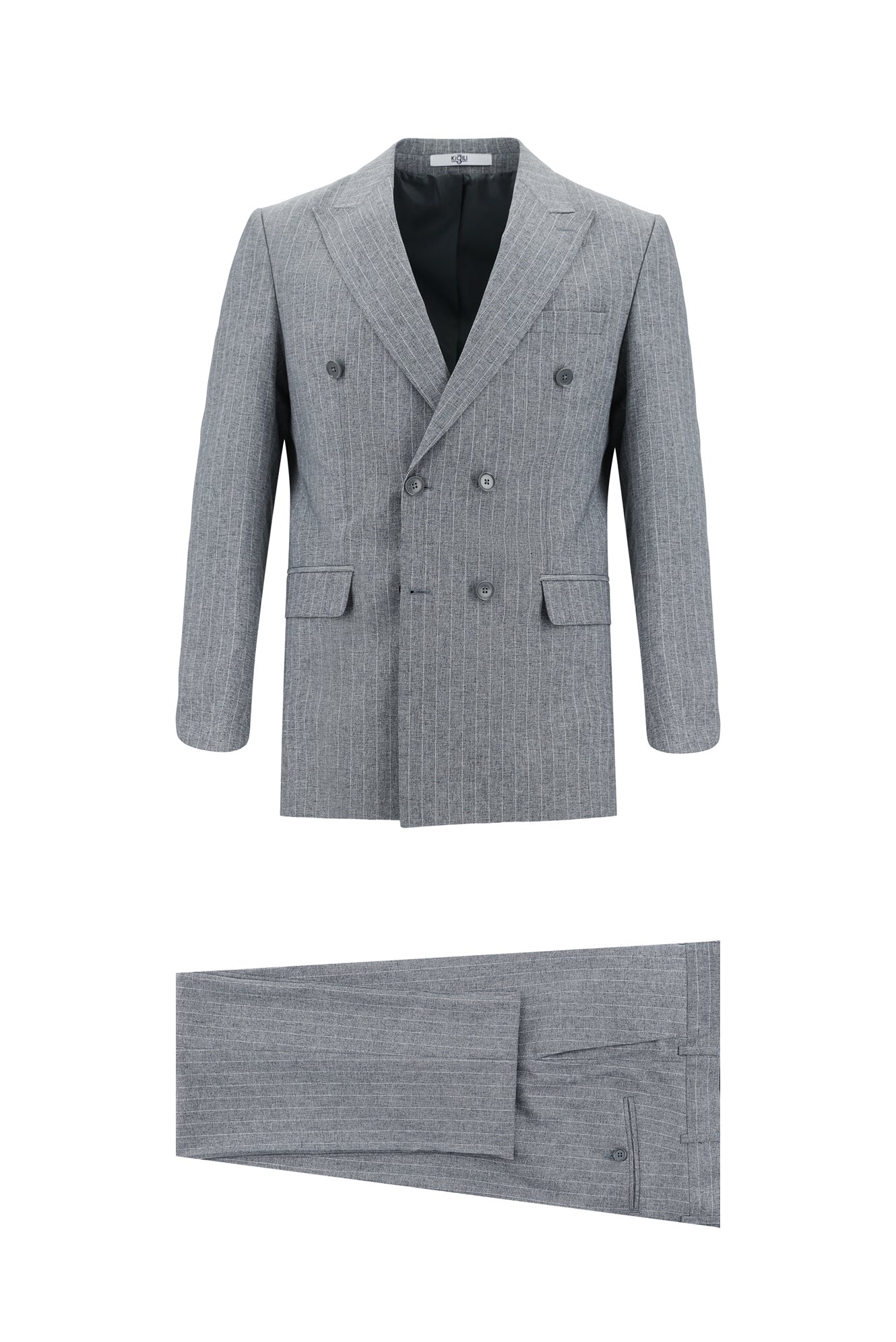 Orta Füme Regular Fit Kruvaze Çizgili Takım Elbise