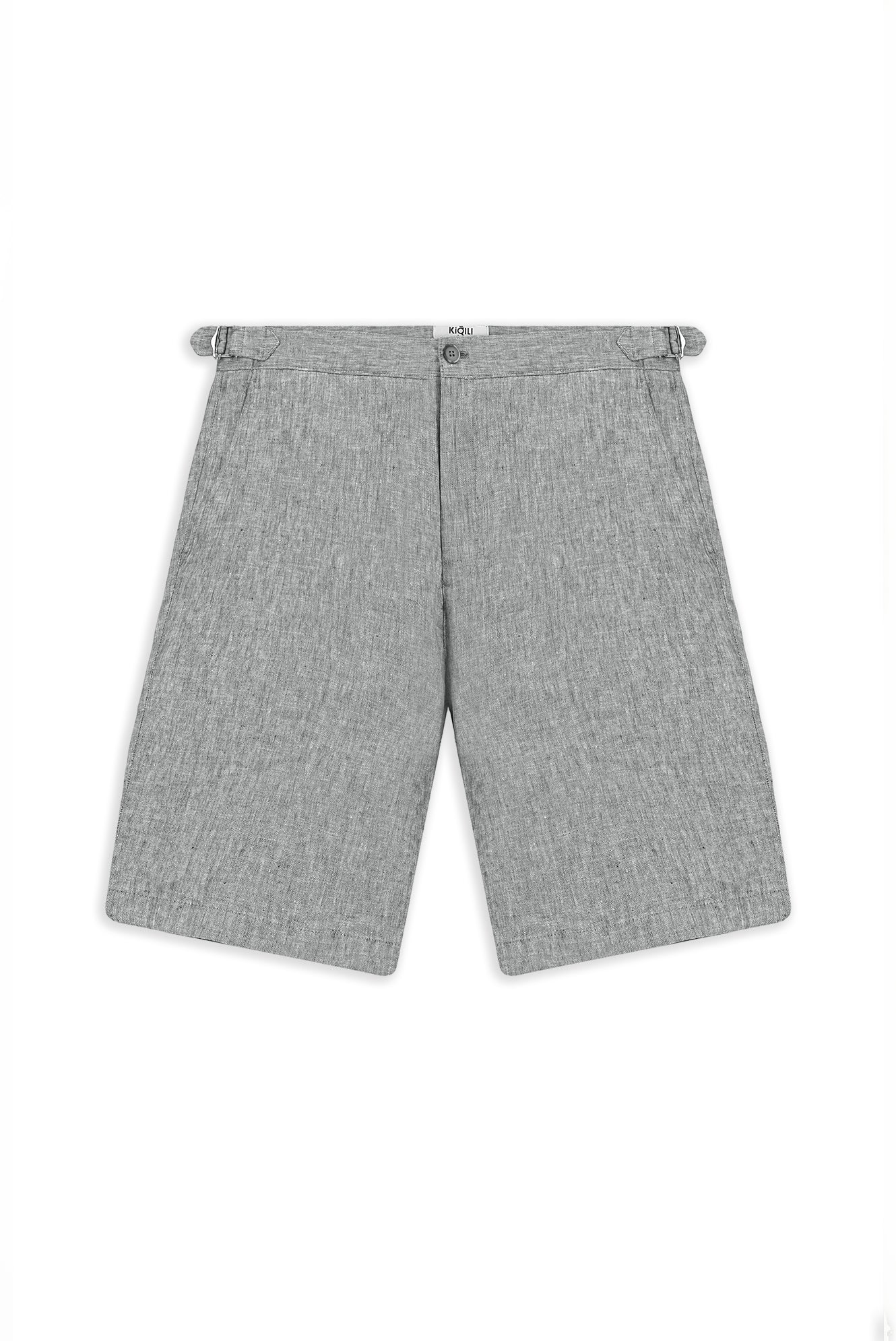 Orta Füme 6 Drop Regular Fit Standart Kesim Tokalı Keten Bermuda Şort