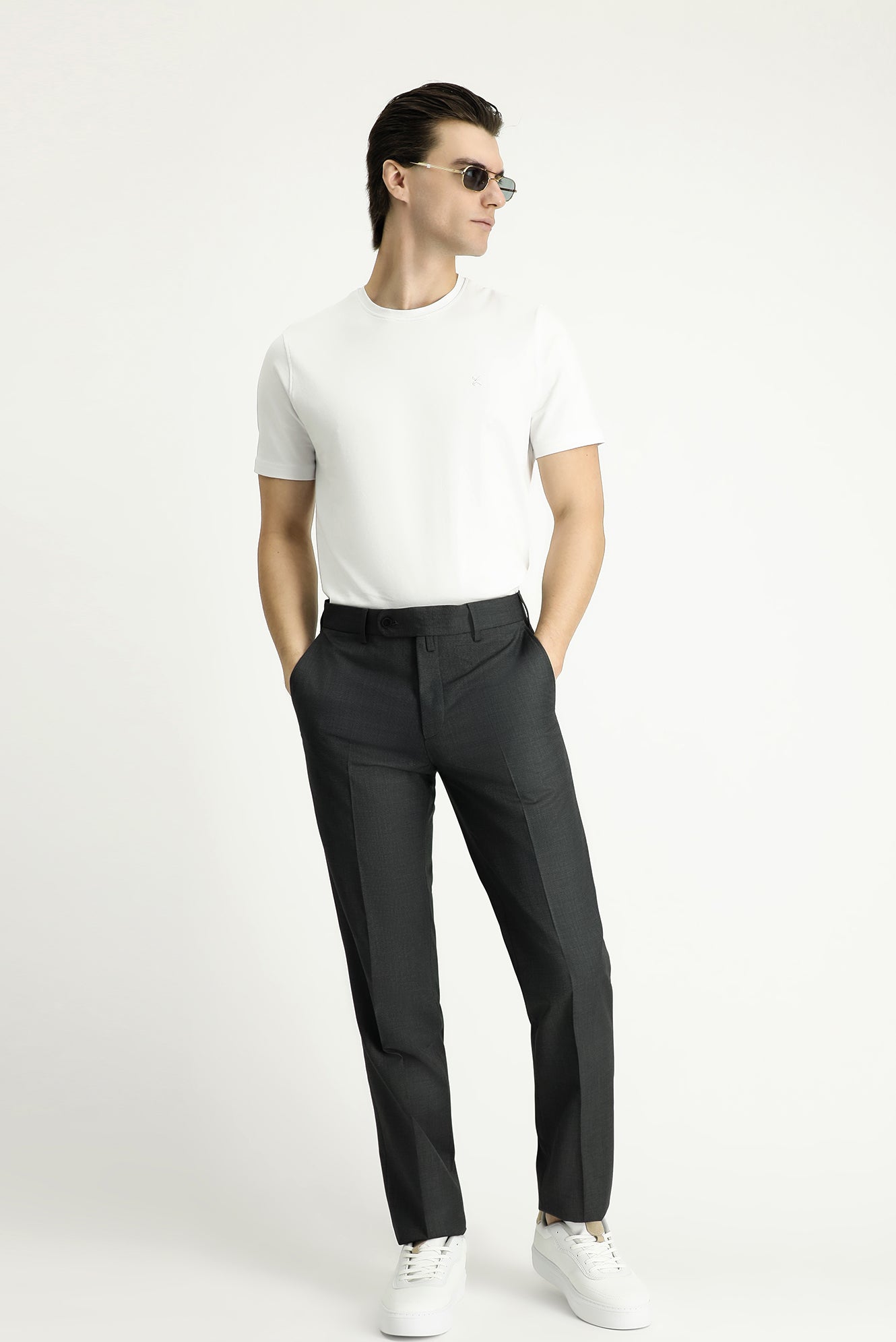 Orta Füme Relaxed Fit Rahat Kesim Klasik Kumaş Pantolon