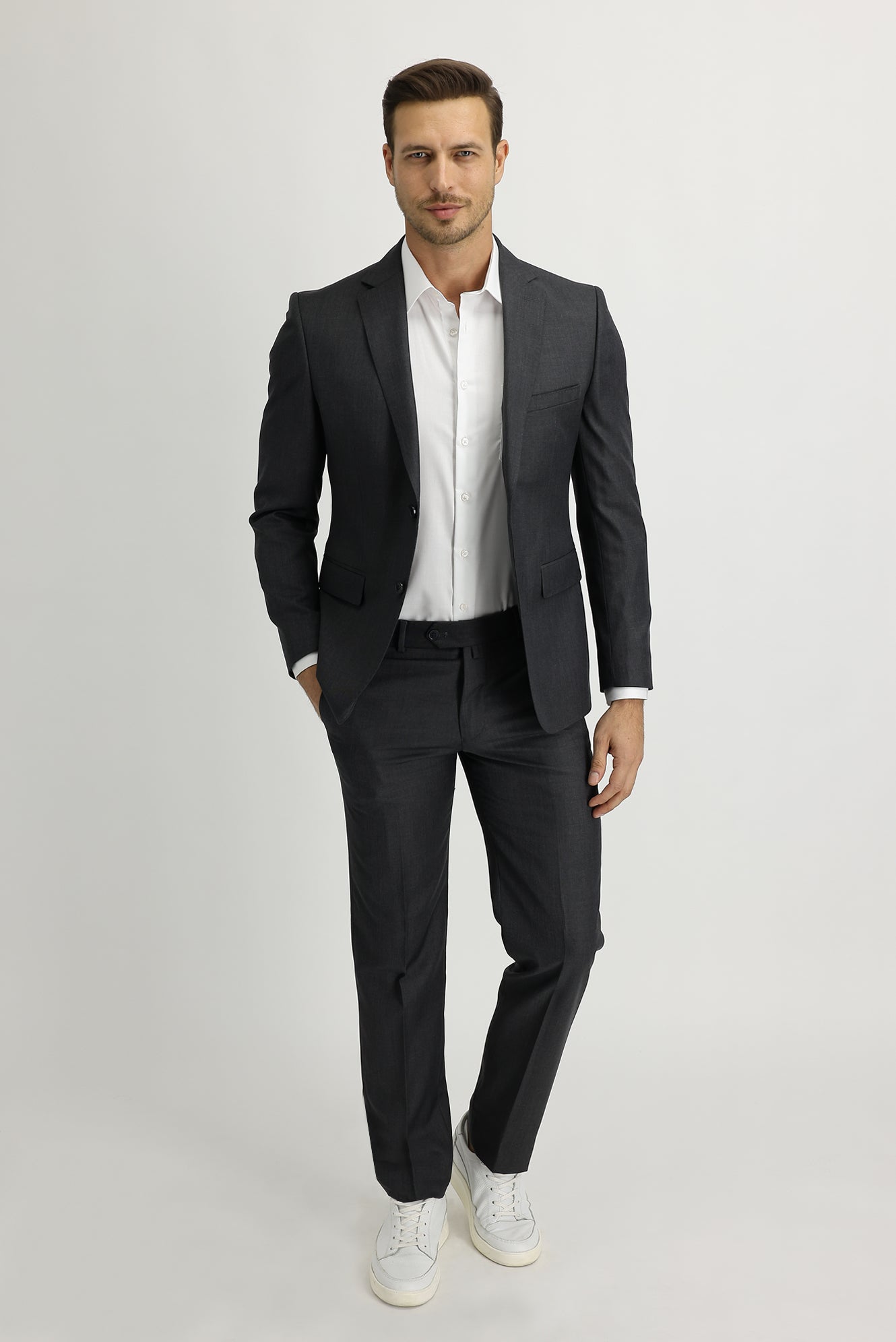 Orta Füme Slim Fit Dar Kesim Klasik Takım Elbise