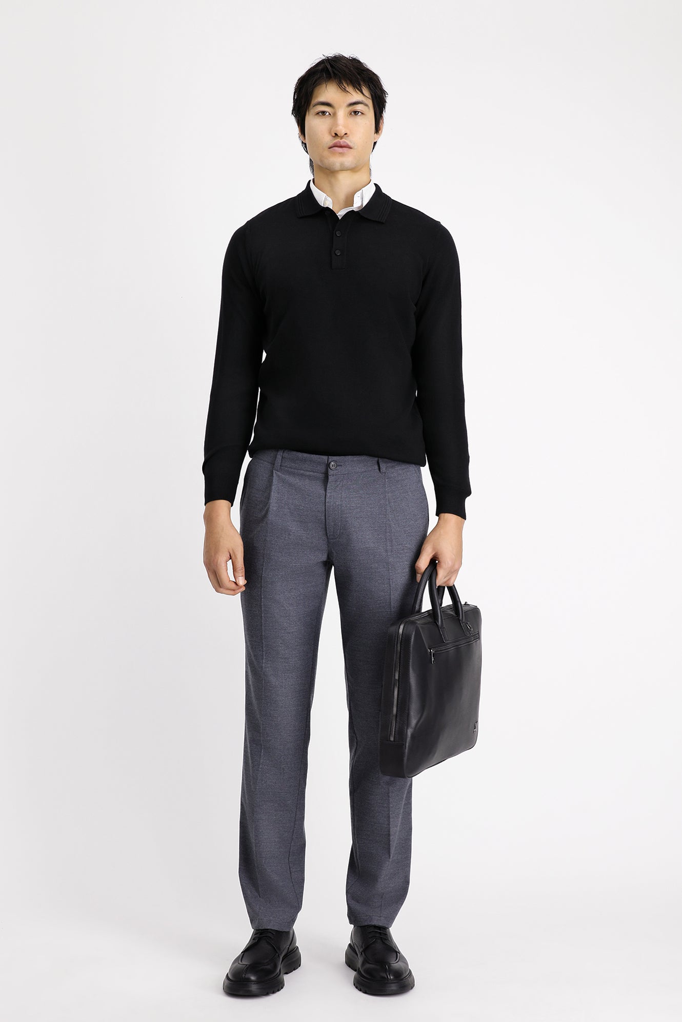 Orta Füme Slim Fit Dar Kesim Likralı Pileli Klasik Kumaş Pantolon
