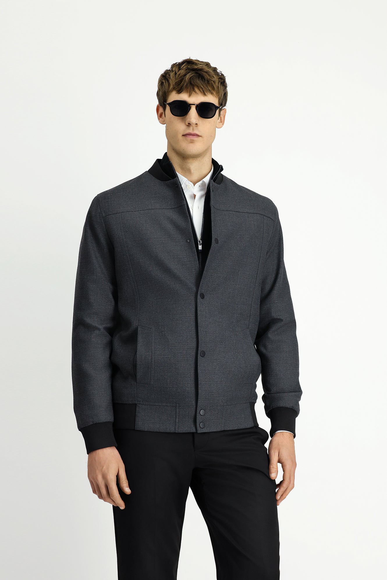 Orta Füme Slim Fit Dar Kesim Likralı Bomber Ceket Mont