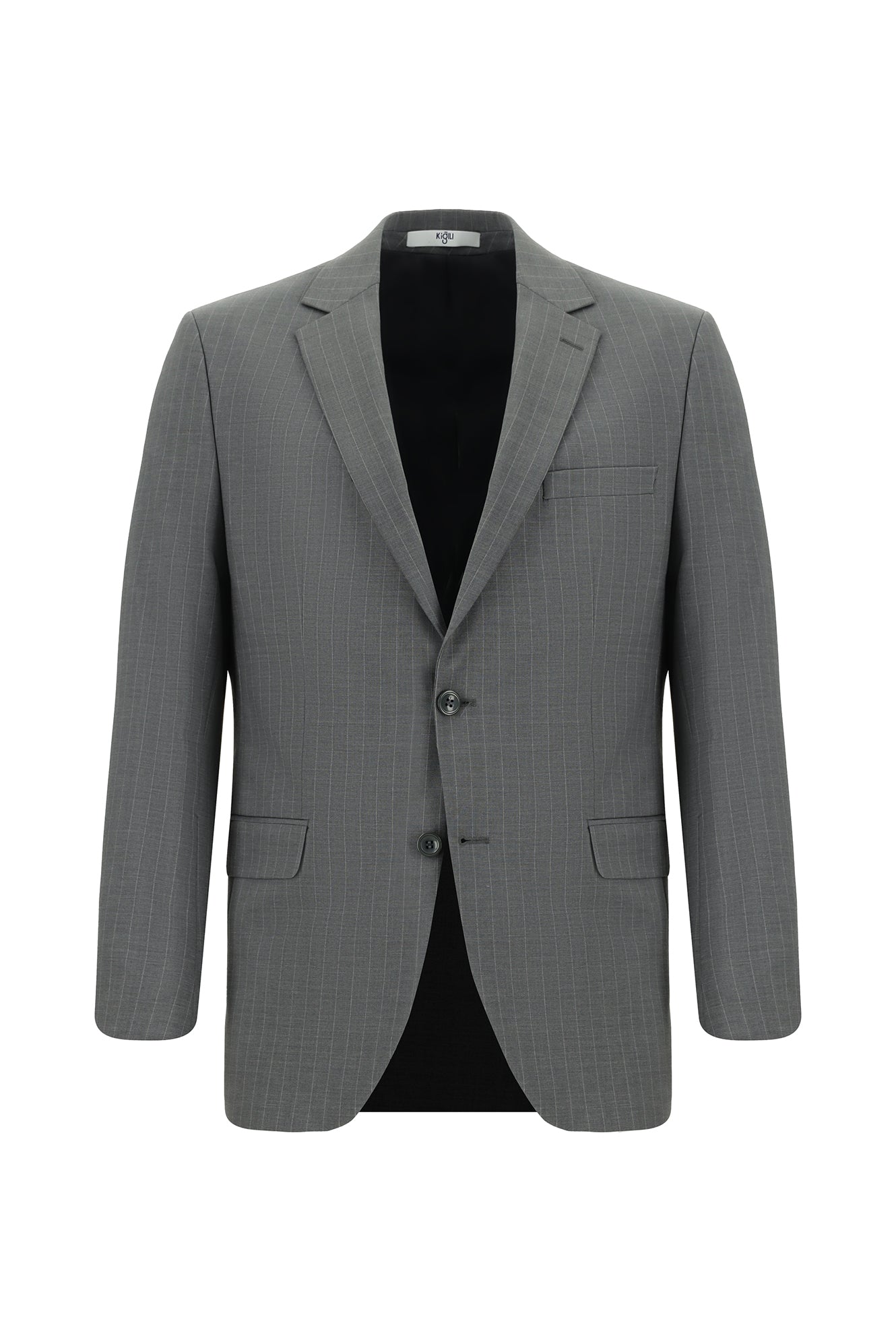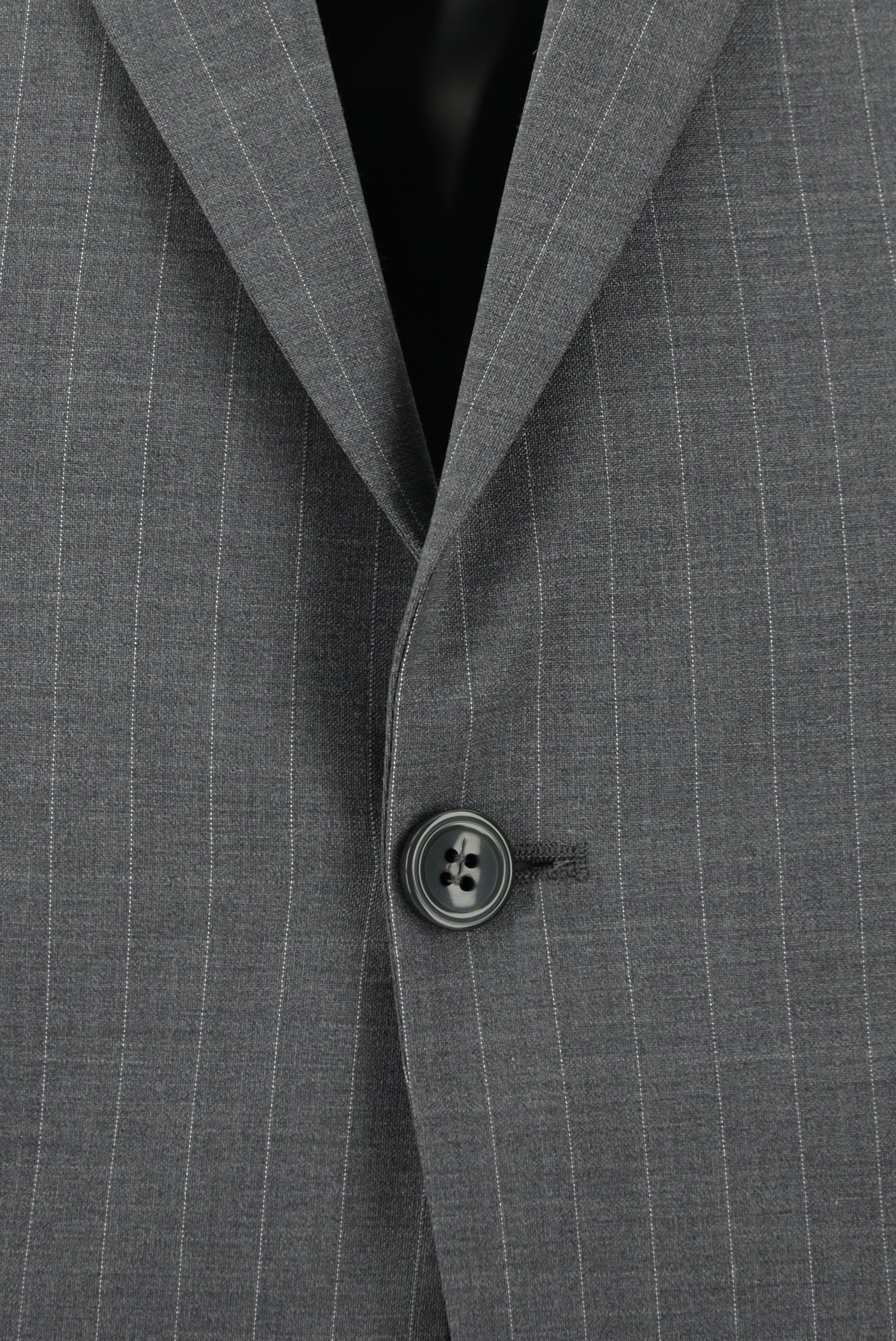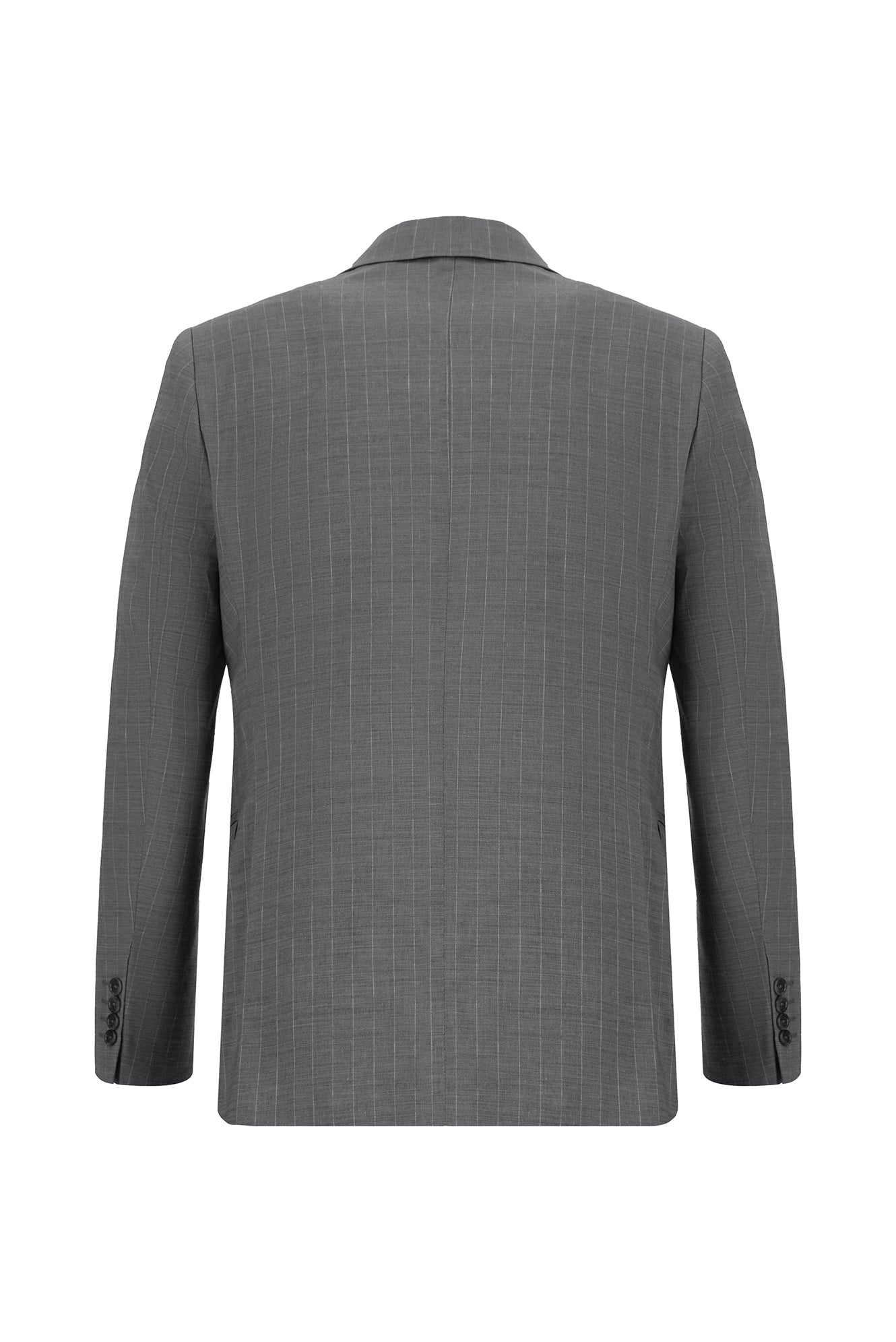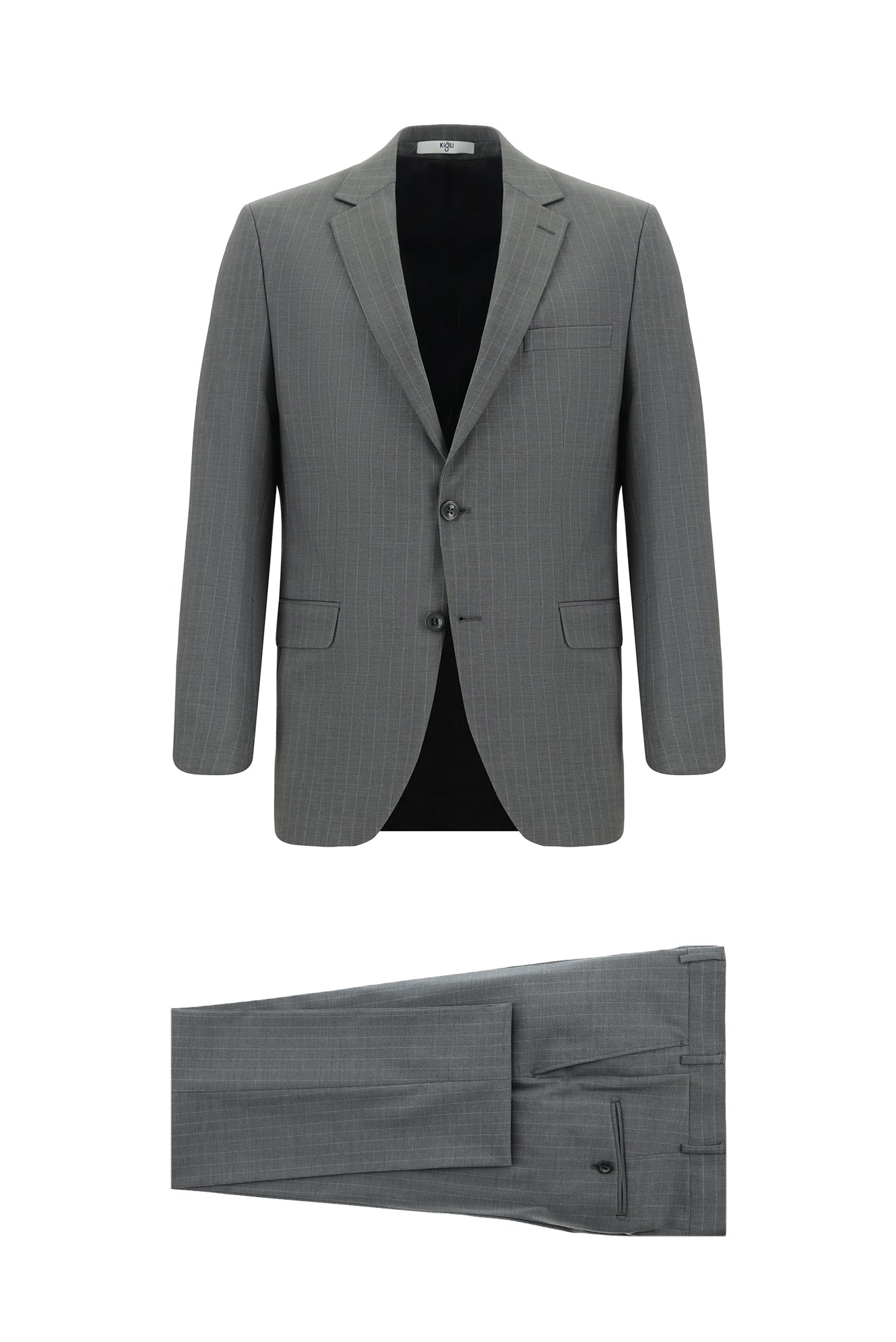 Orta Füme 7 Drop Super Slim Fit Eksra Dar Kesim Yünlü Çizgili Klasik Takım Elbise