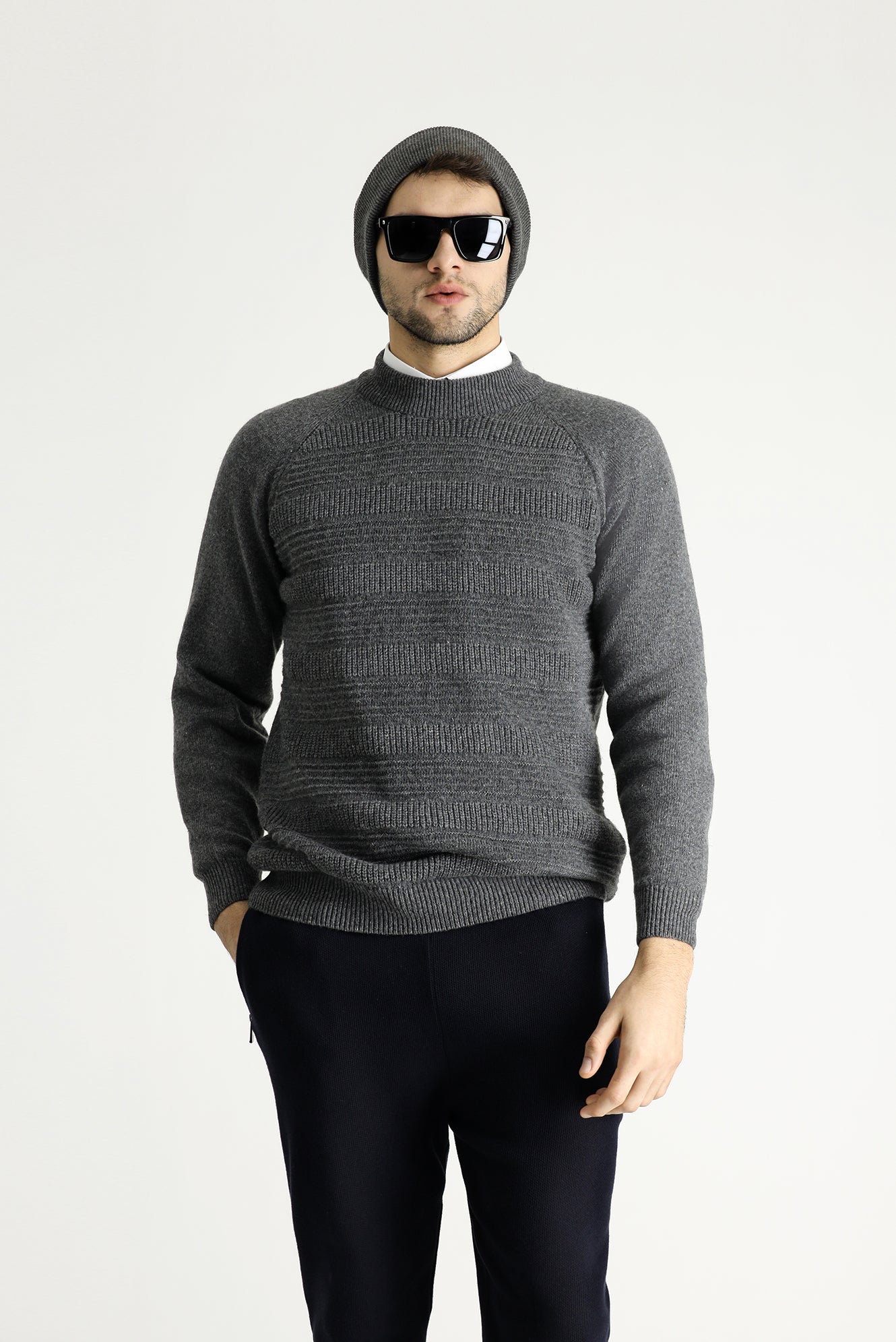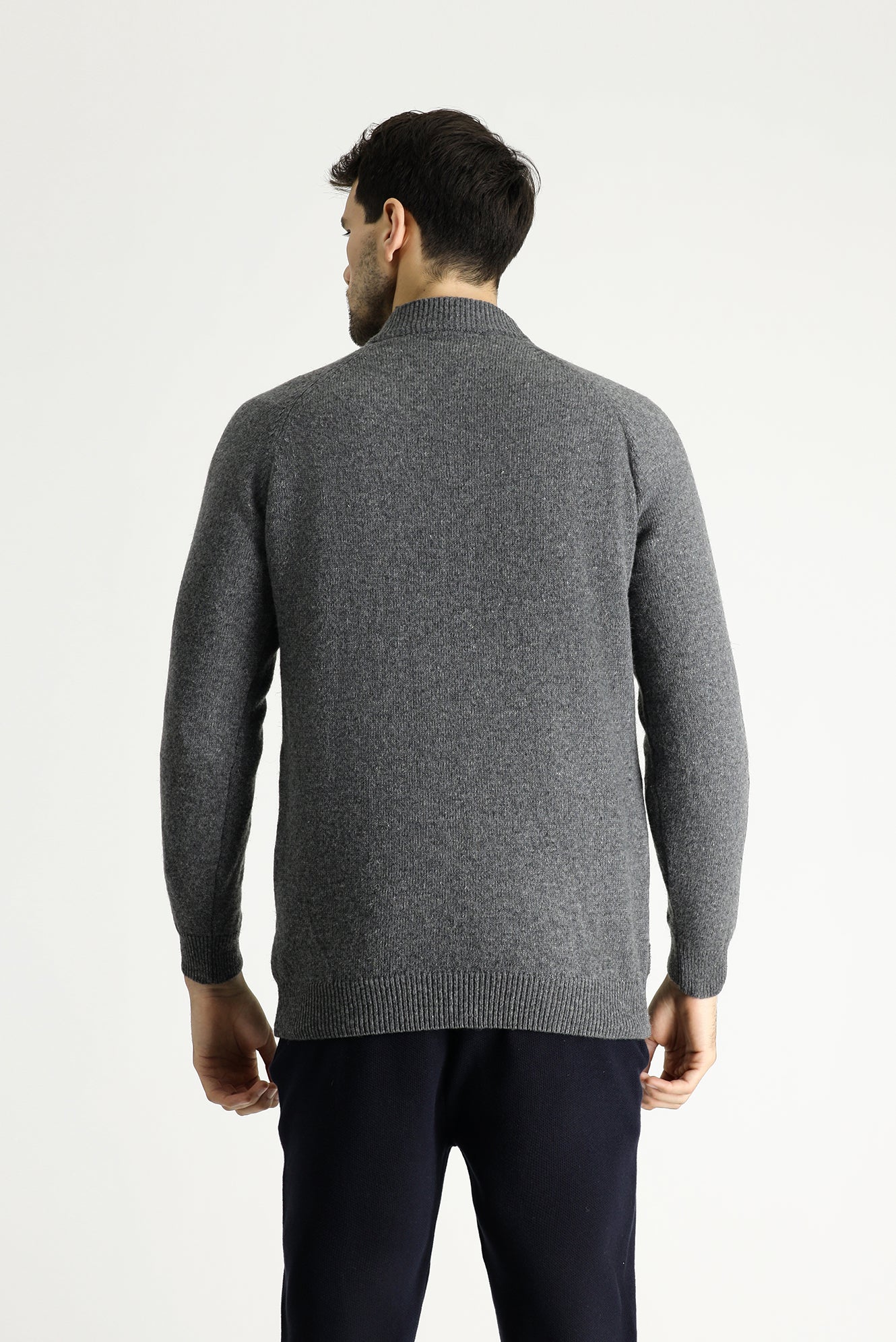 Orta Füme Yarım Balıkçı Yaka Slim Fit Dar Kesim Desenli Yünlü Triko Kazak