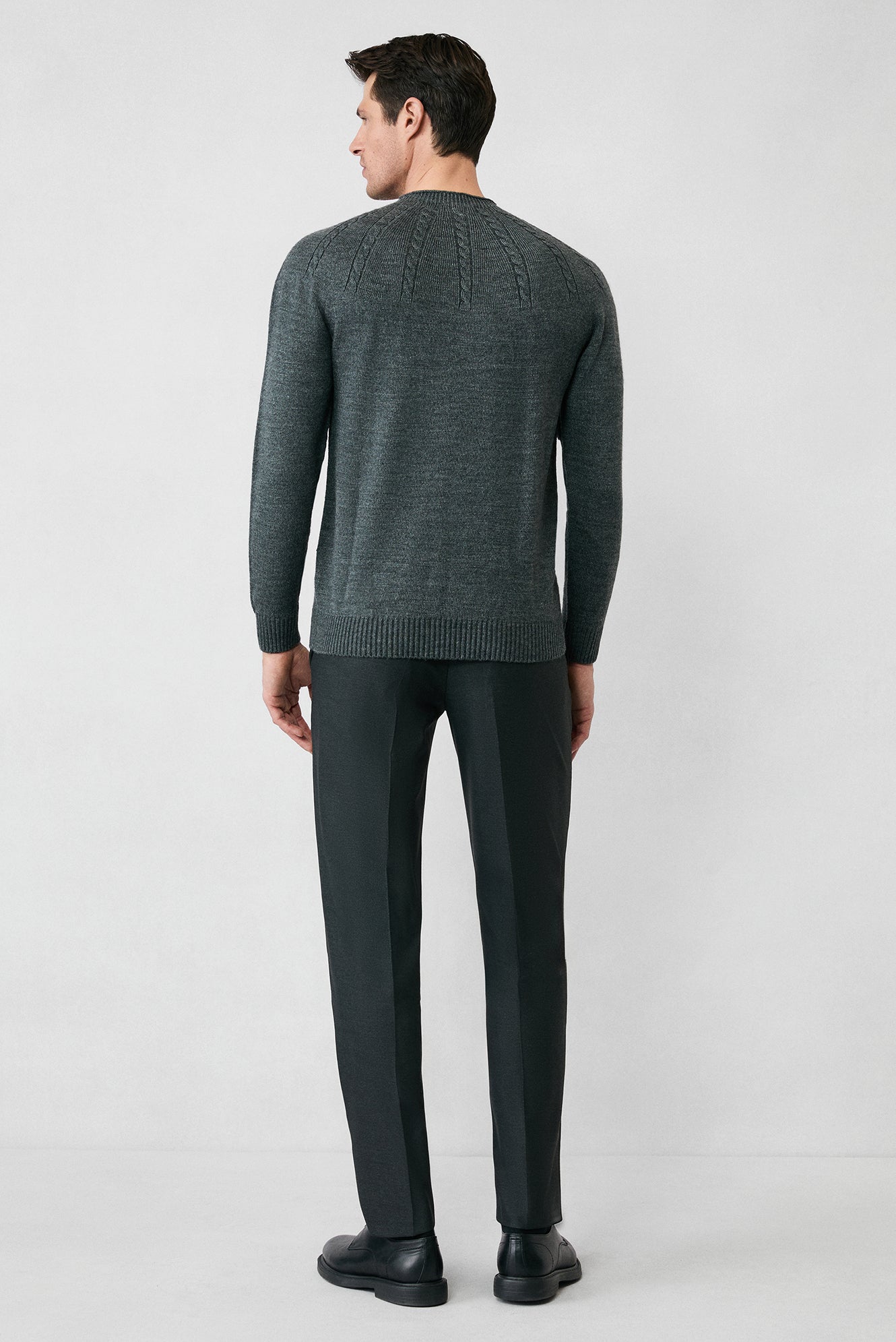 Orta Füme Yarım Balıkçı Yaka Slim Fit Desenli Dikişsiz Triko Kazak