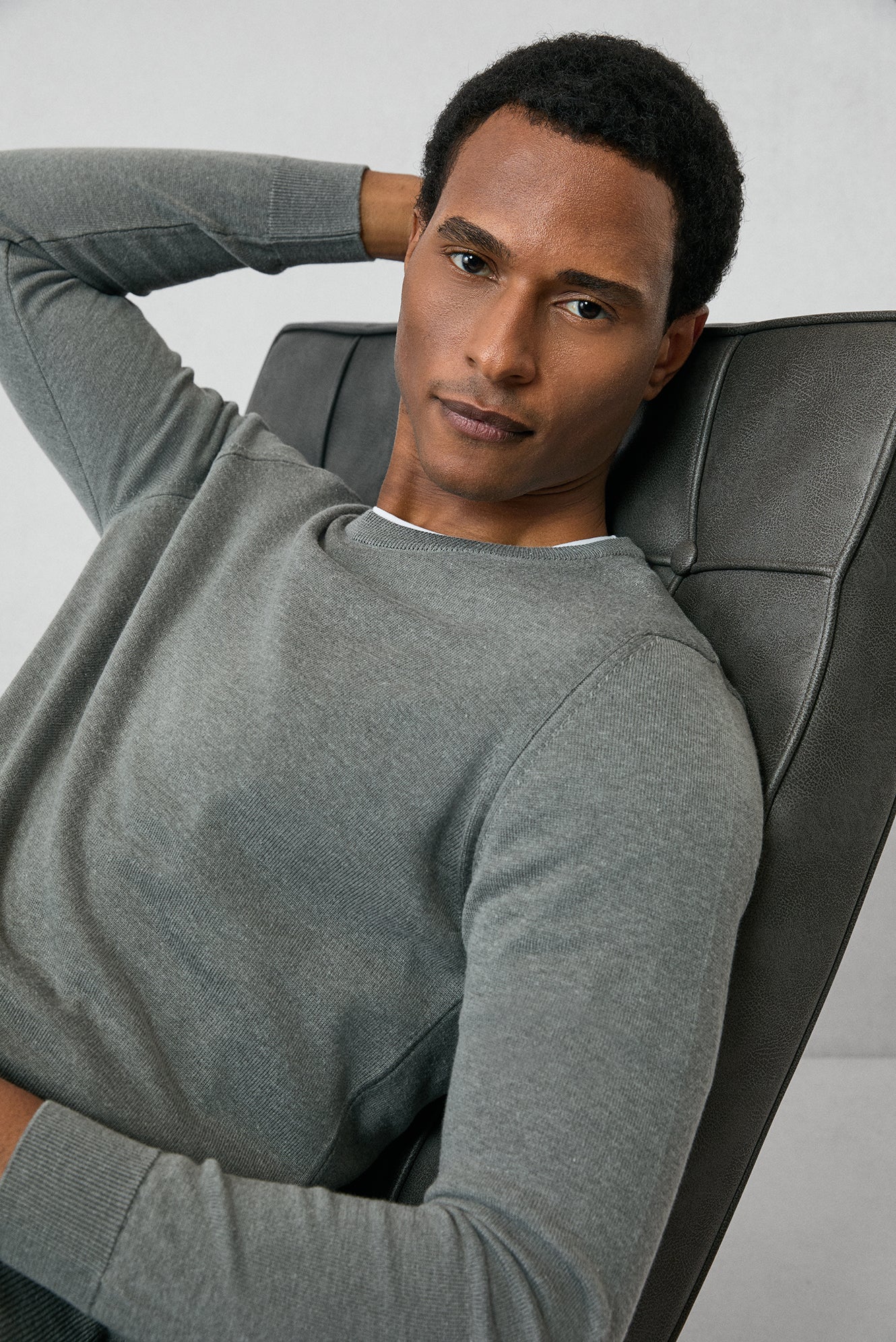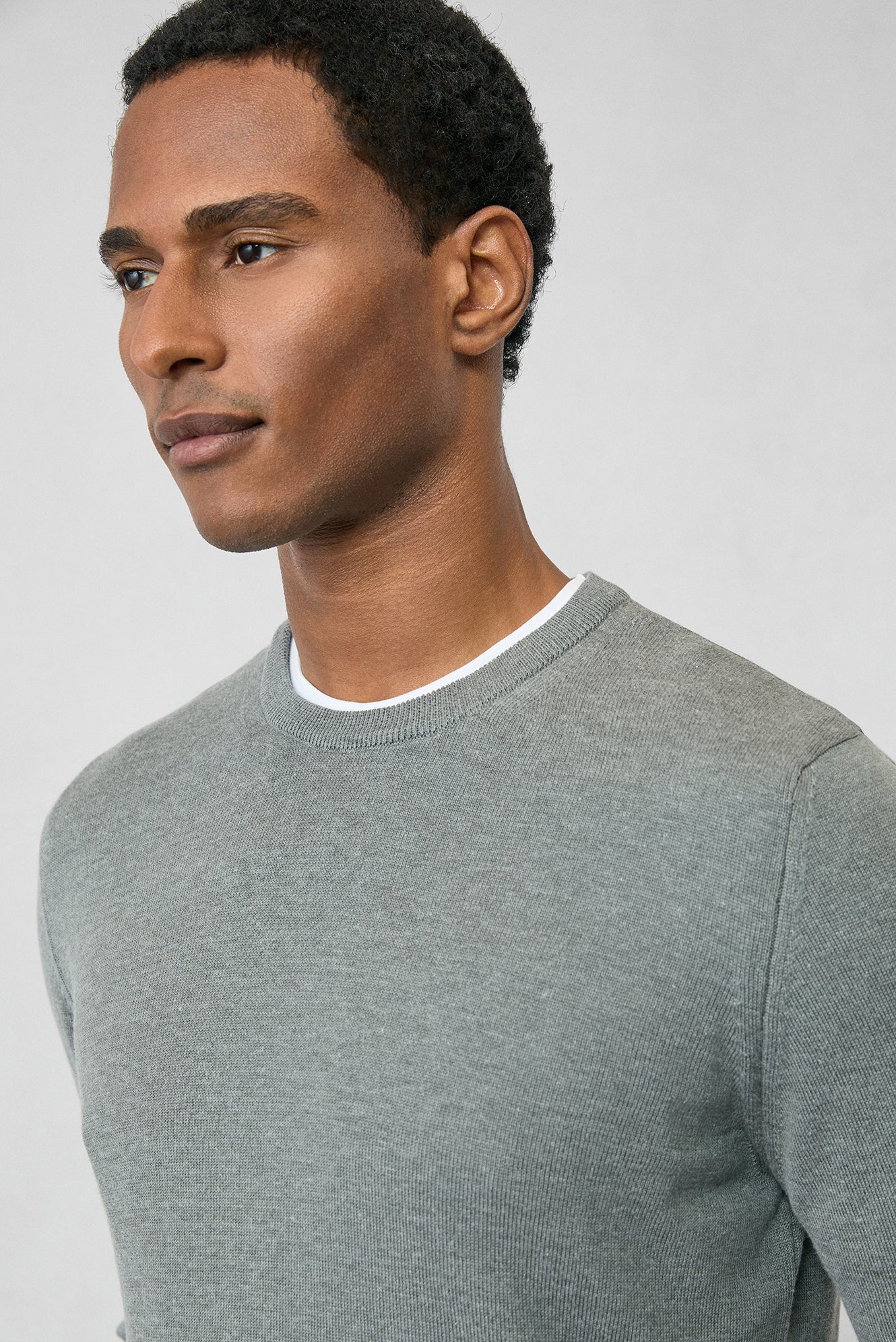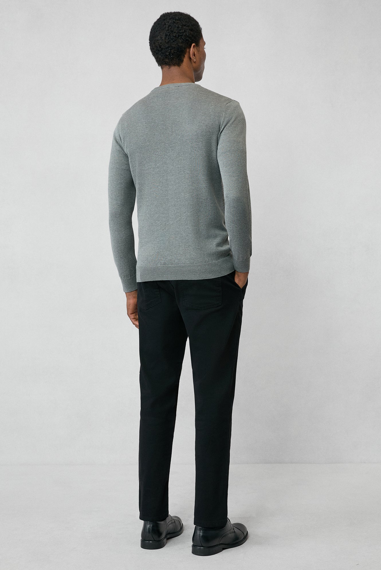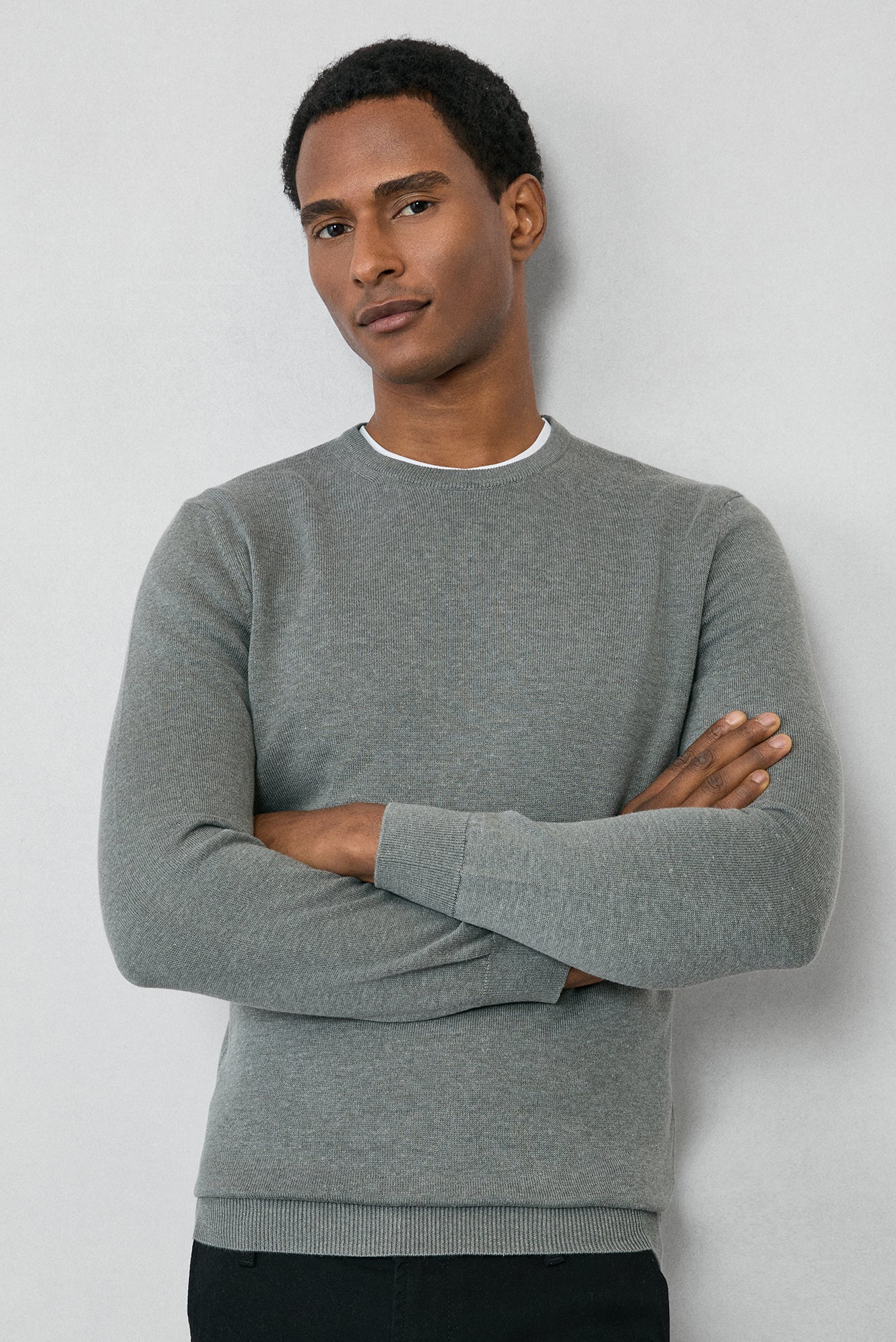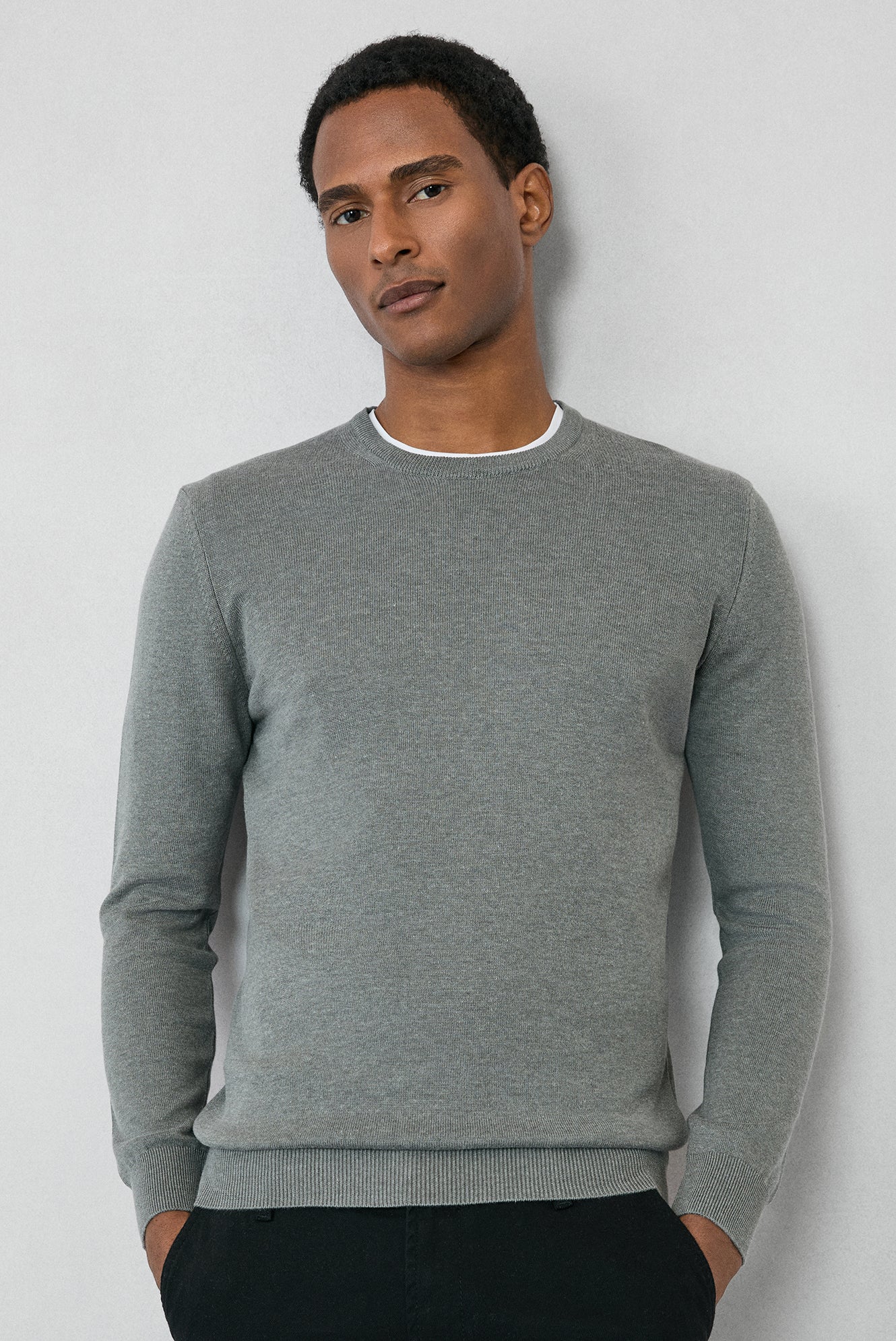 Orta Gri Bisiklet Yaka Regular Fit Pamuklu Triko Kazak