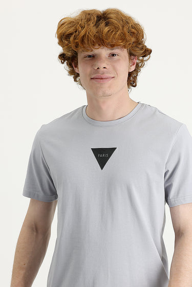 Orta Gri Bisiklet Yaka Slim Fit Dar Kesim Baskılı Tişört