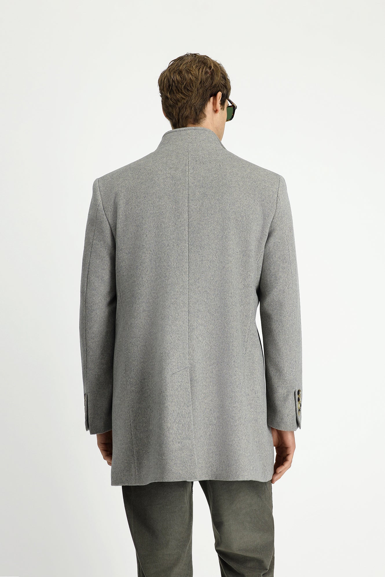 Orta Gri Çıkma Mostra Yünlü Klasik Kaban
