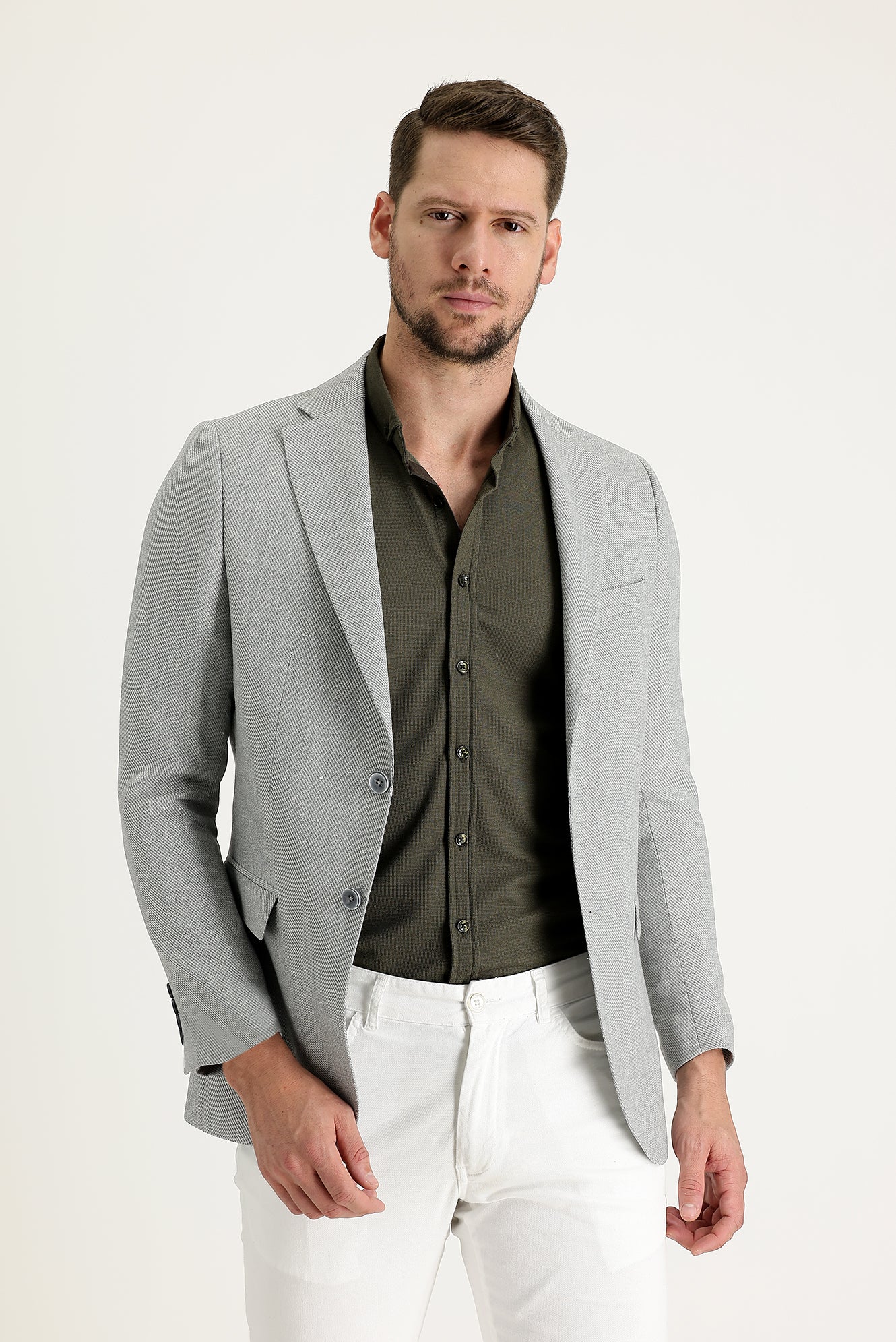 Orta Gri 4 Drop Relaxed Fit Rahat Kesim Desenli Klasik Ceket