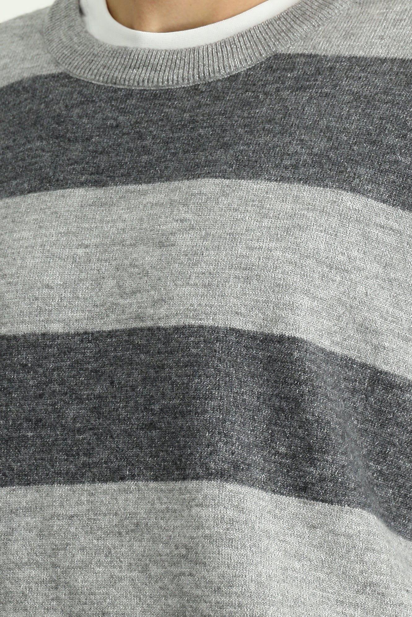 Orta Gri Melanj Bisiklet Yaka Oversize Ekstra Rahat Kesim Çizgili Triko Kazak