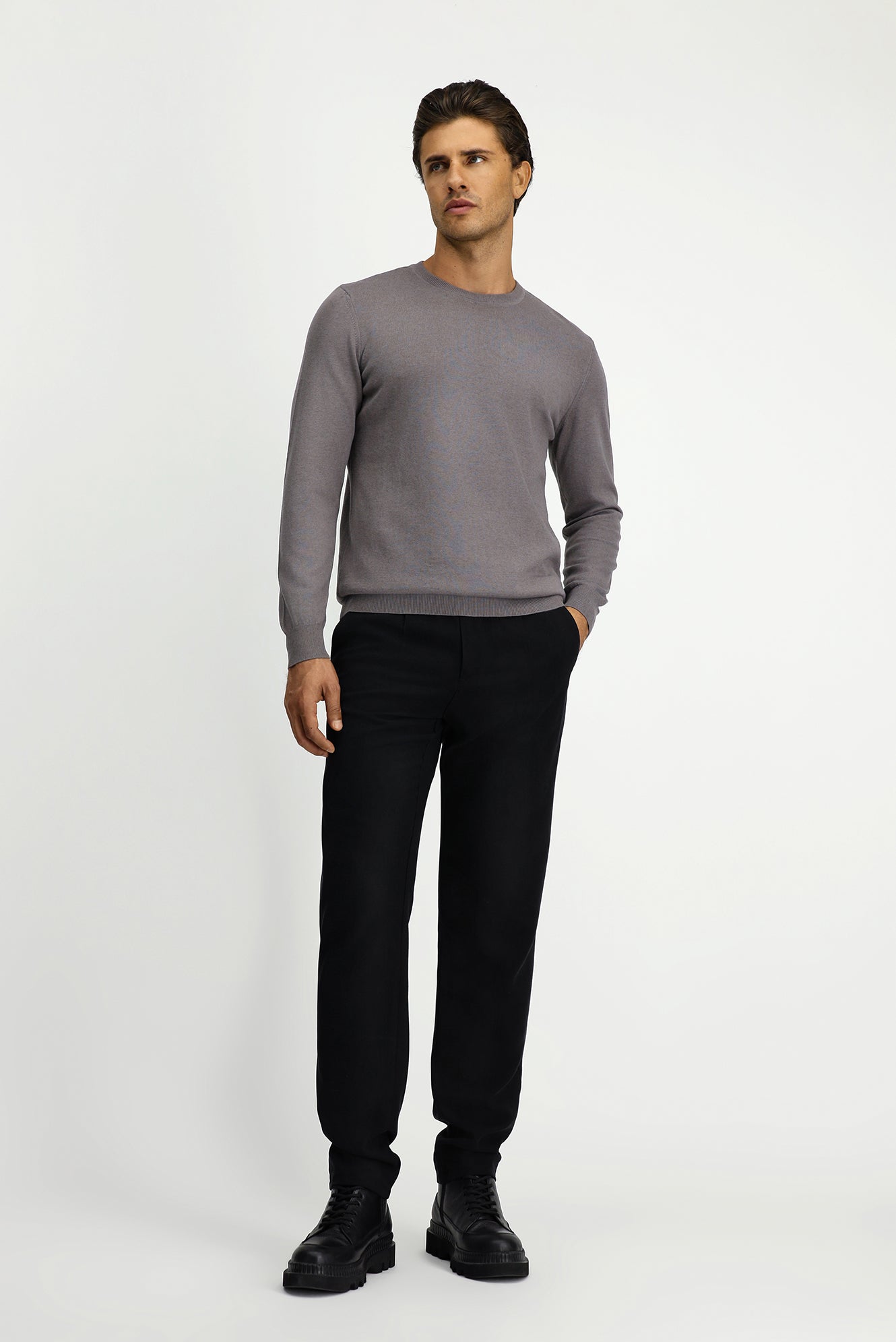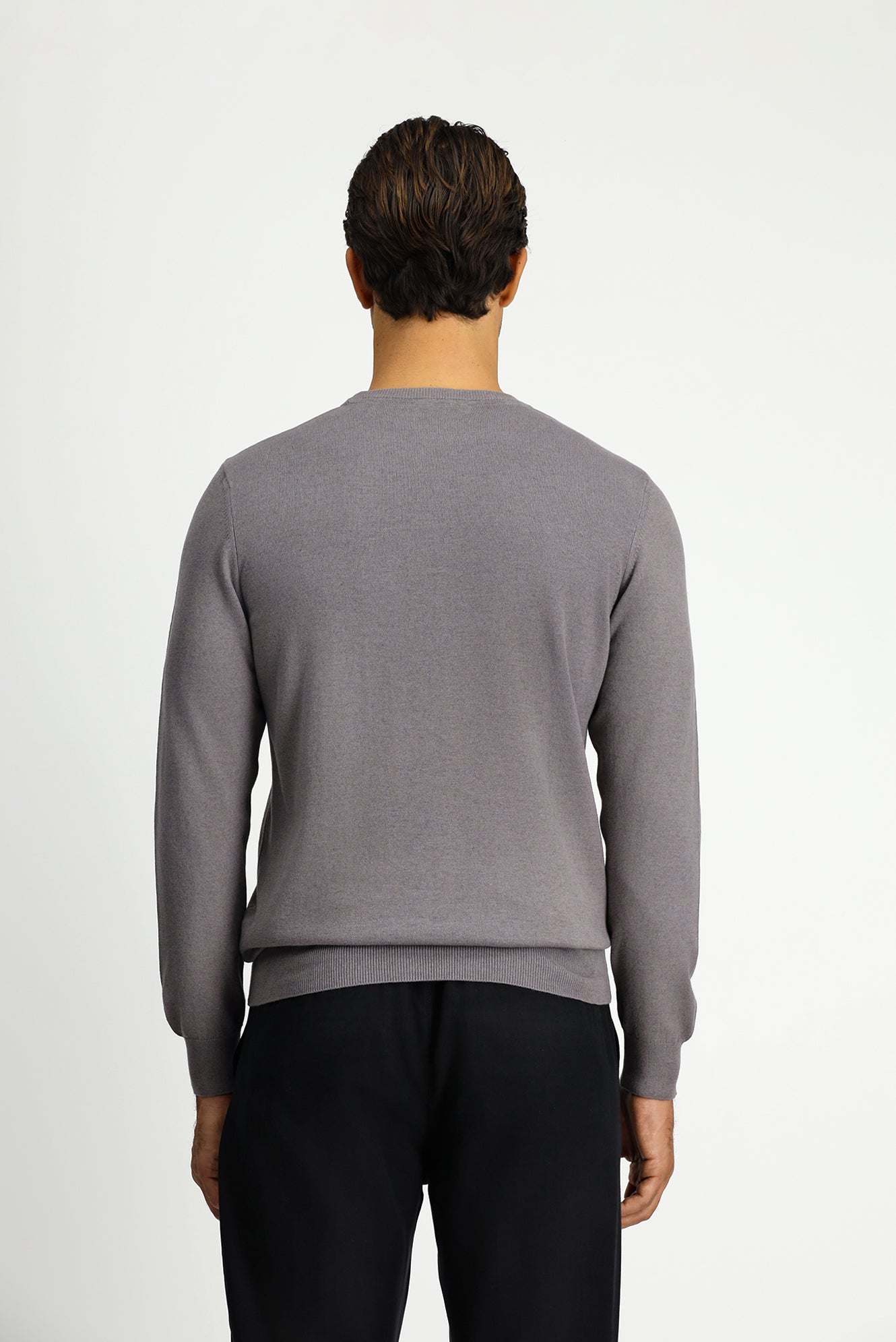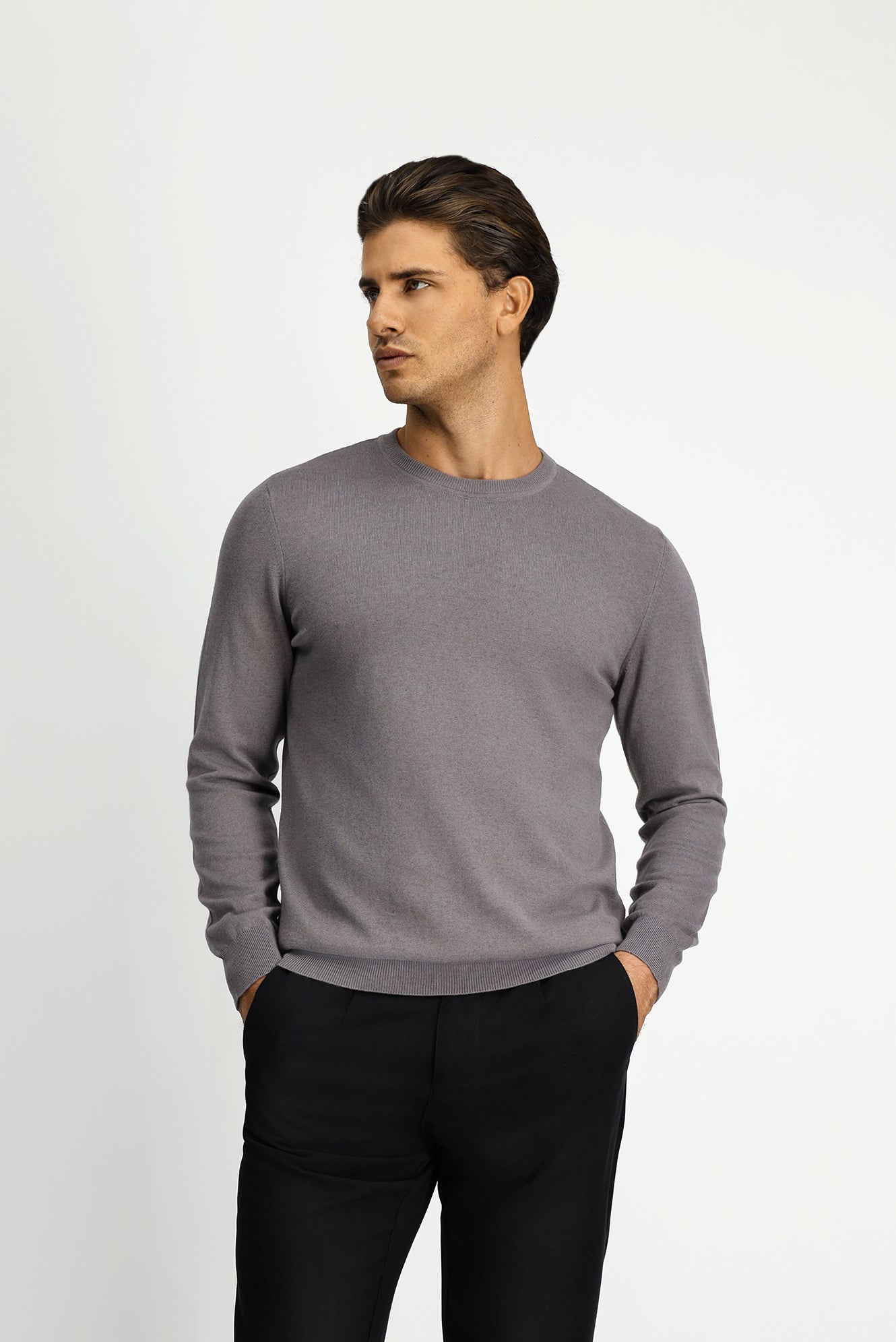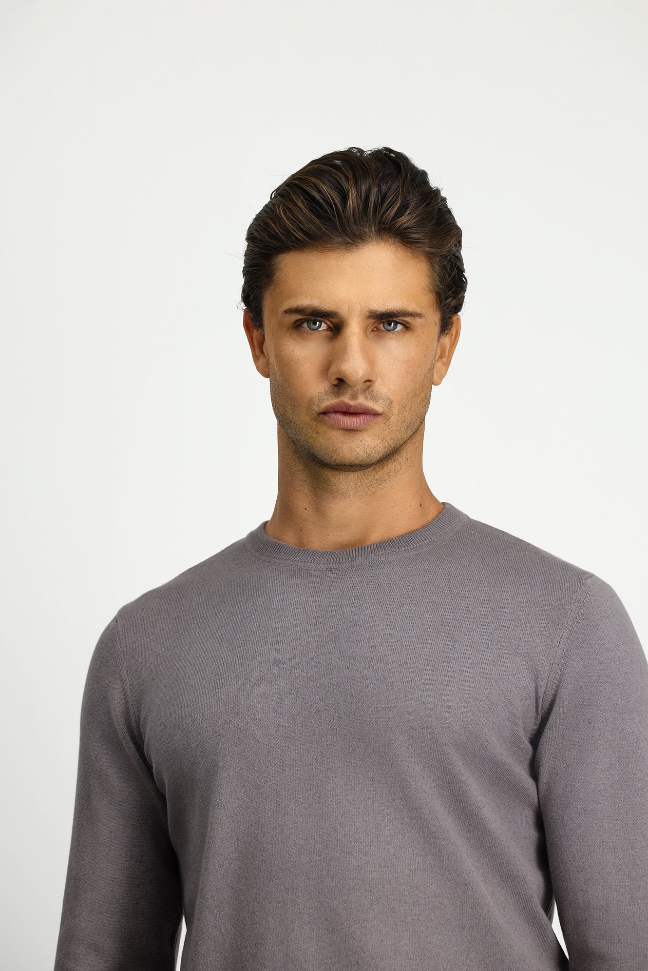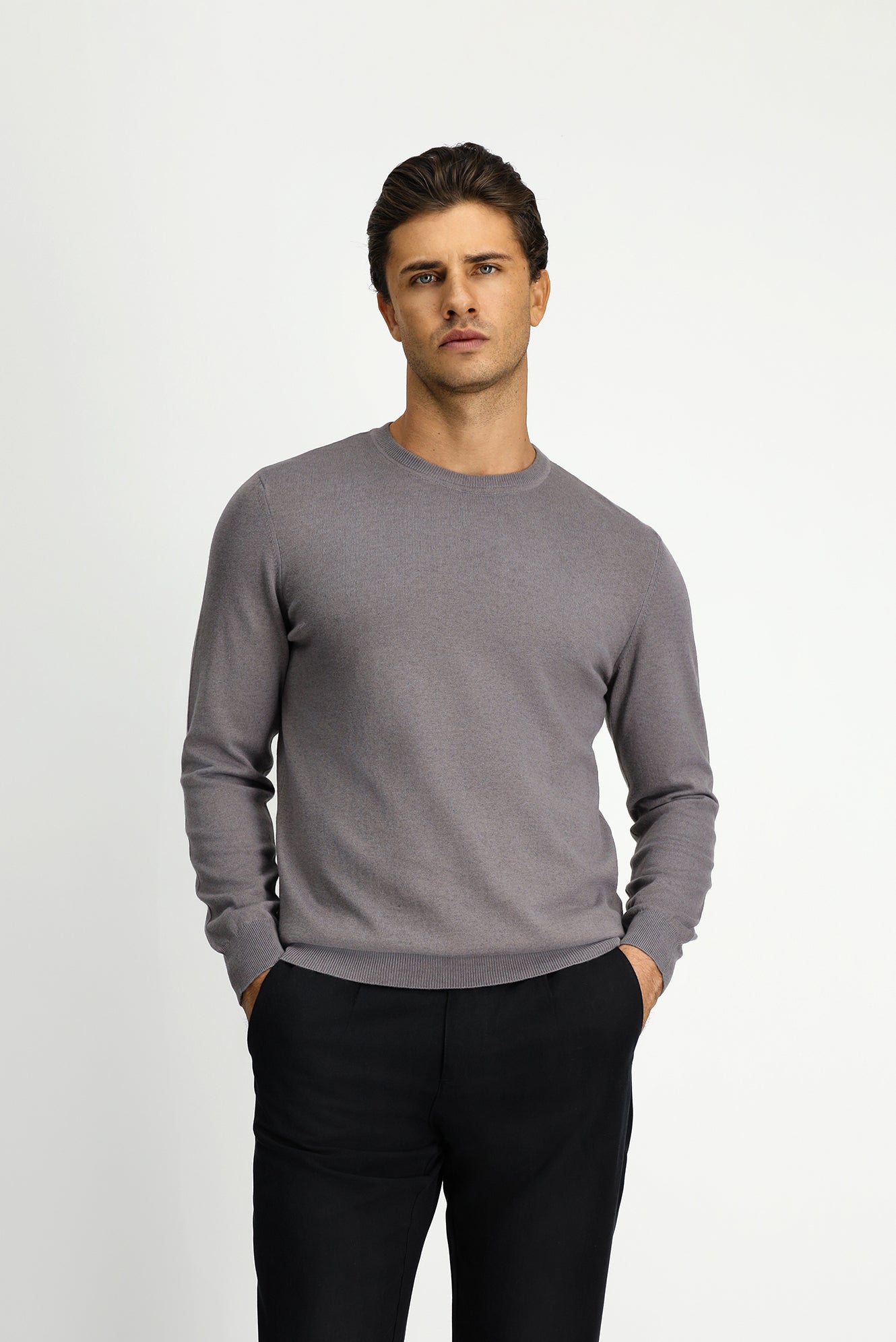 Orta Gri Melanj Bisiklet Yaka Regular Fit Pamuklu Kaşmirli Triko Kazak