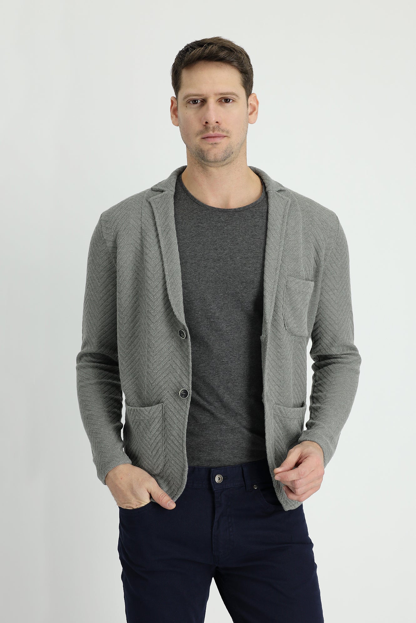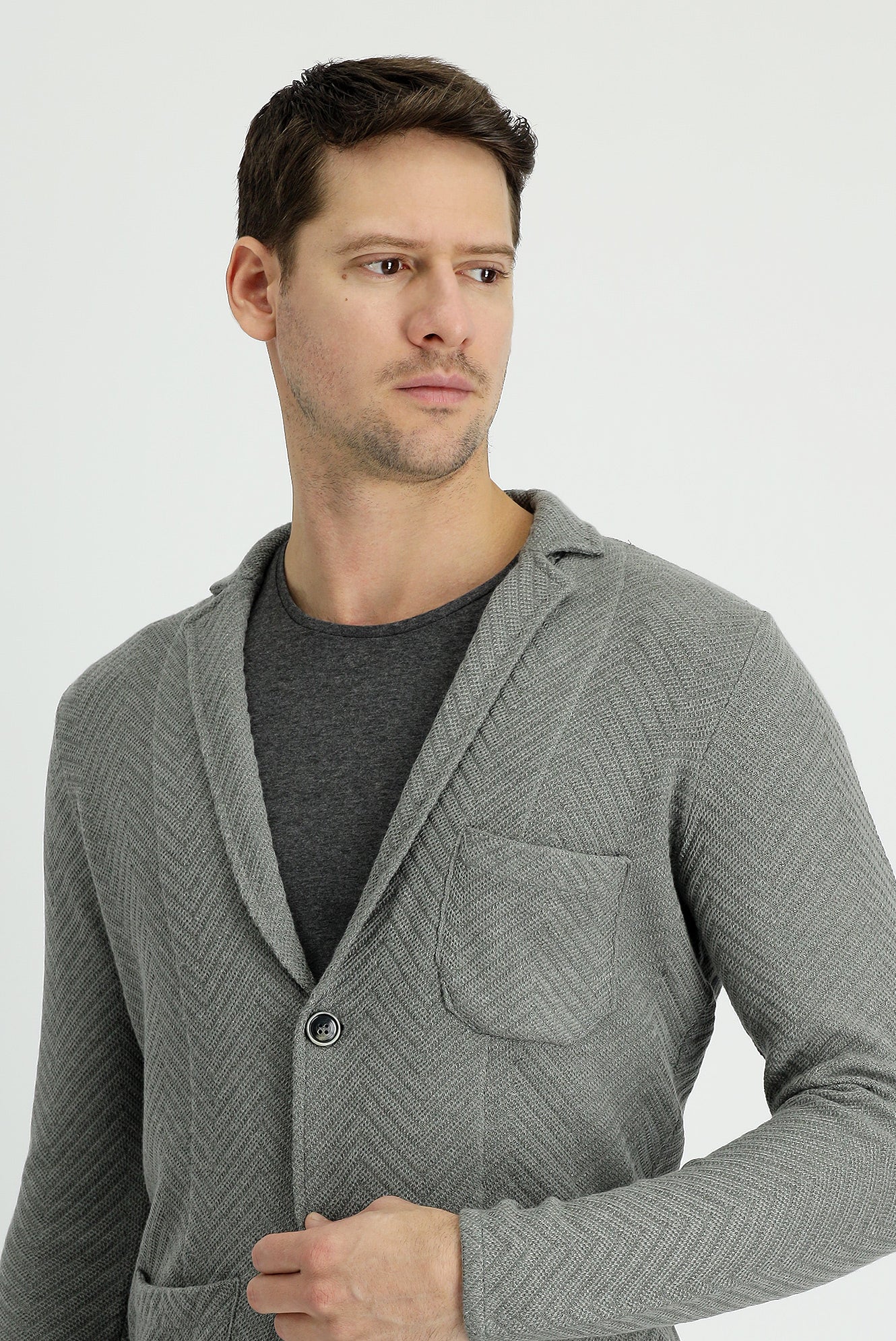 Orta Gri Melanj Pamuklu Triko Hırka
