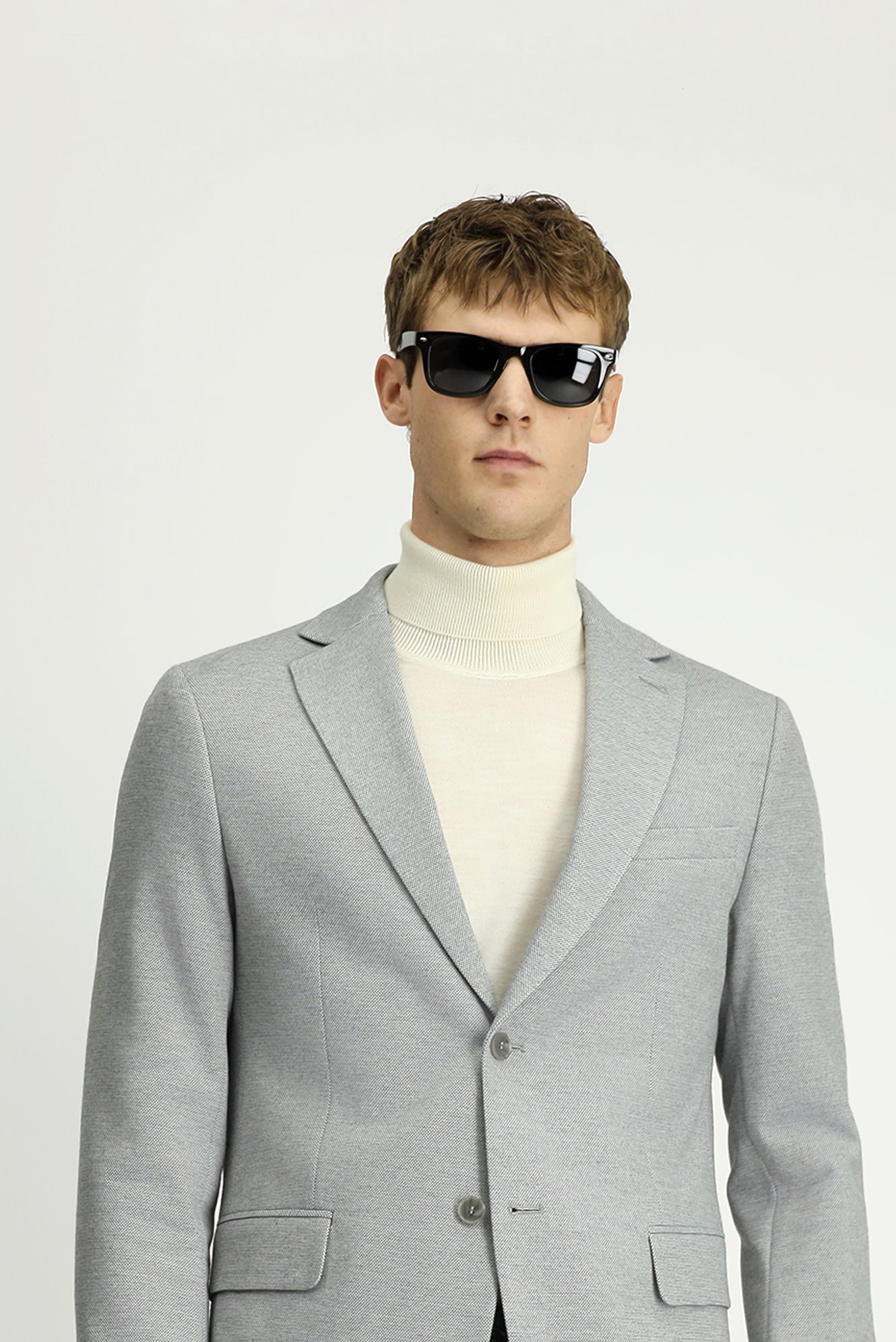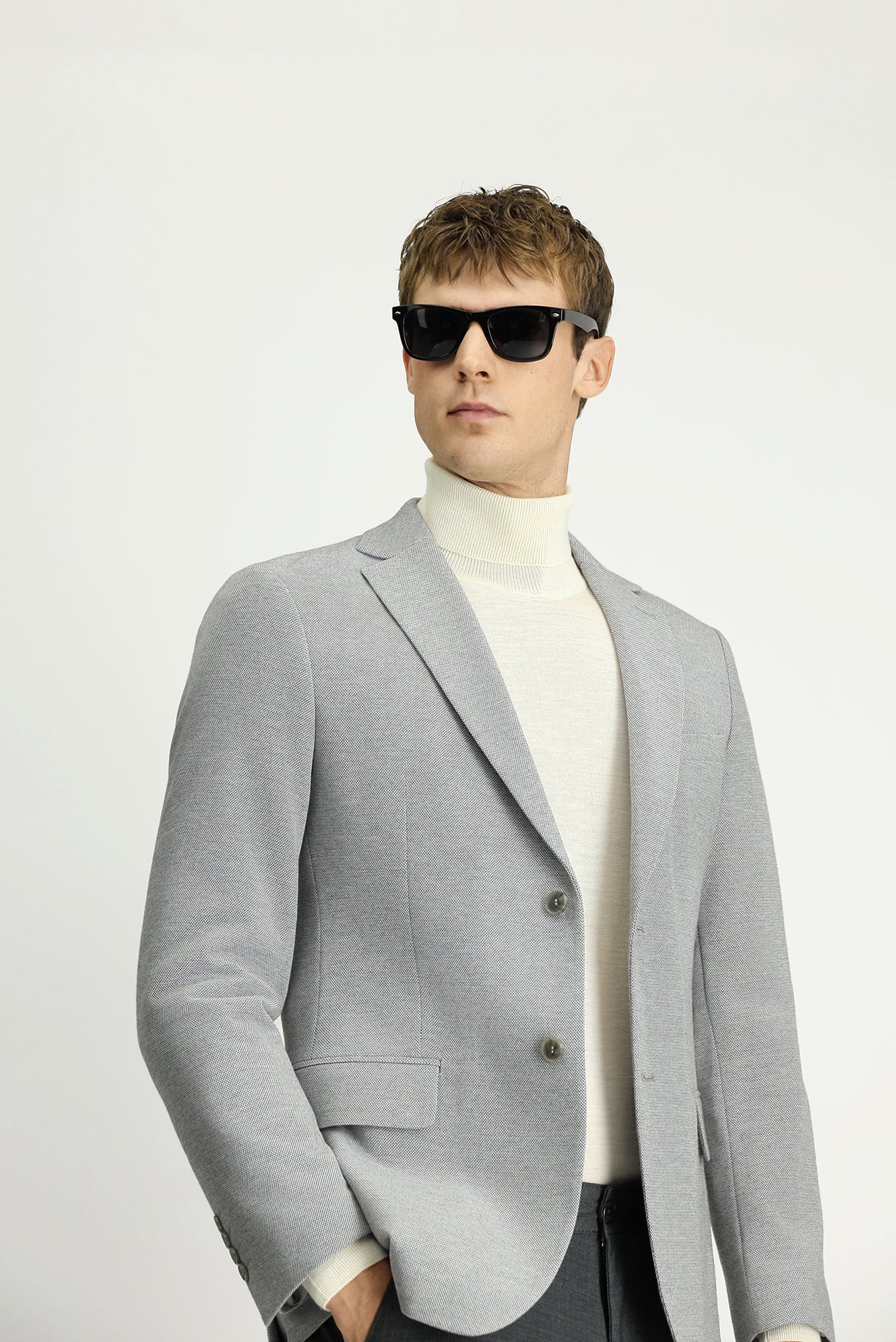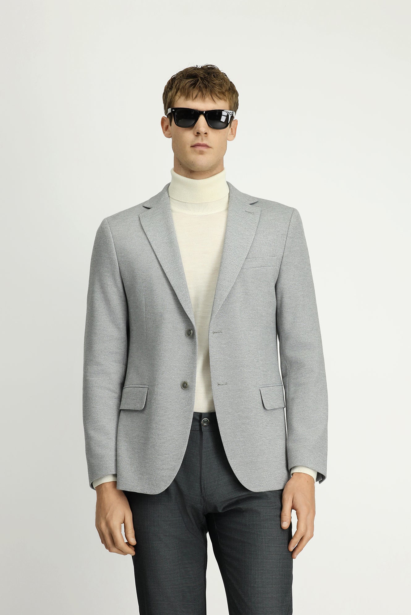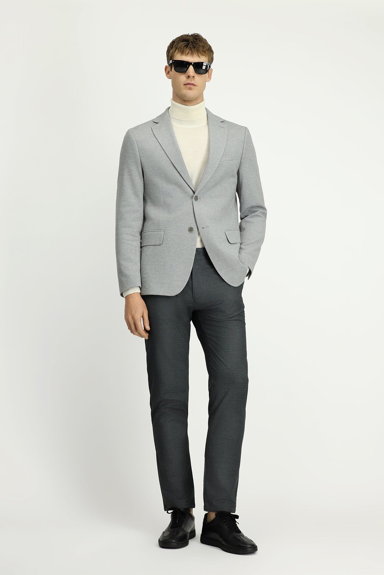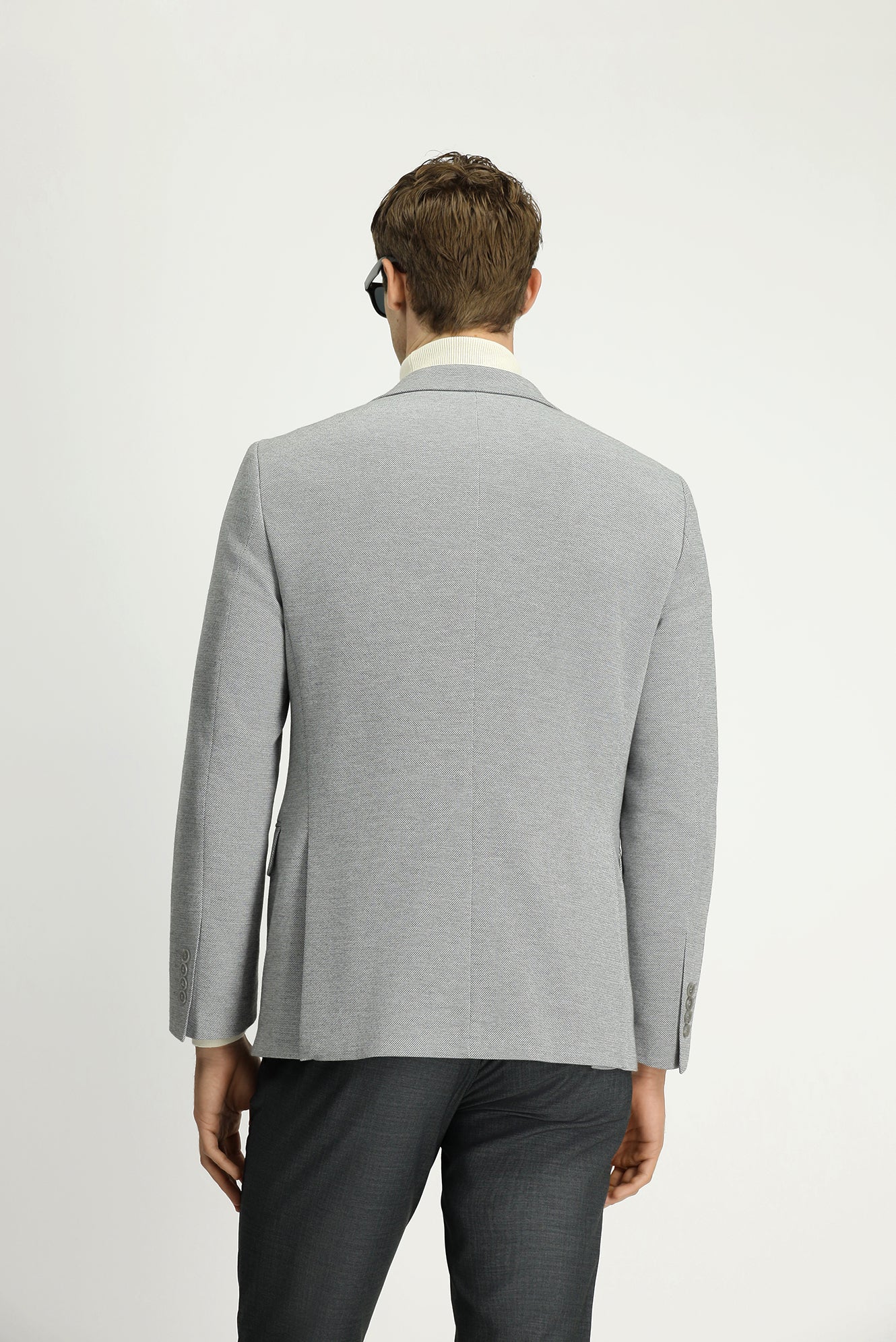 Orta Gri Melanj Regular Fit Desenli Klasik Pamuklu Ceket