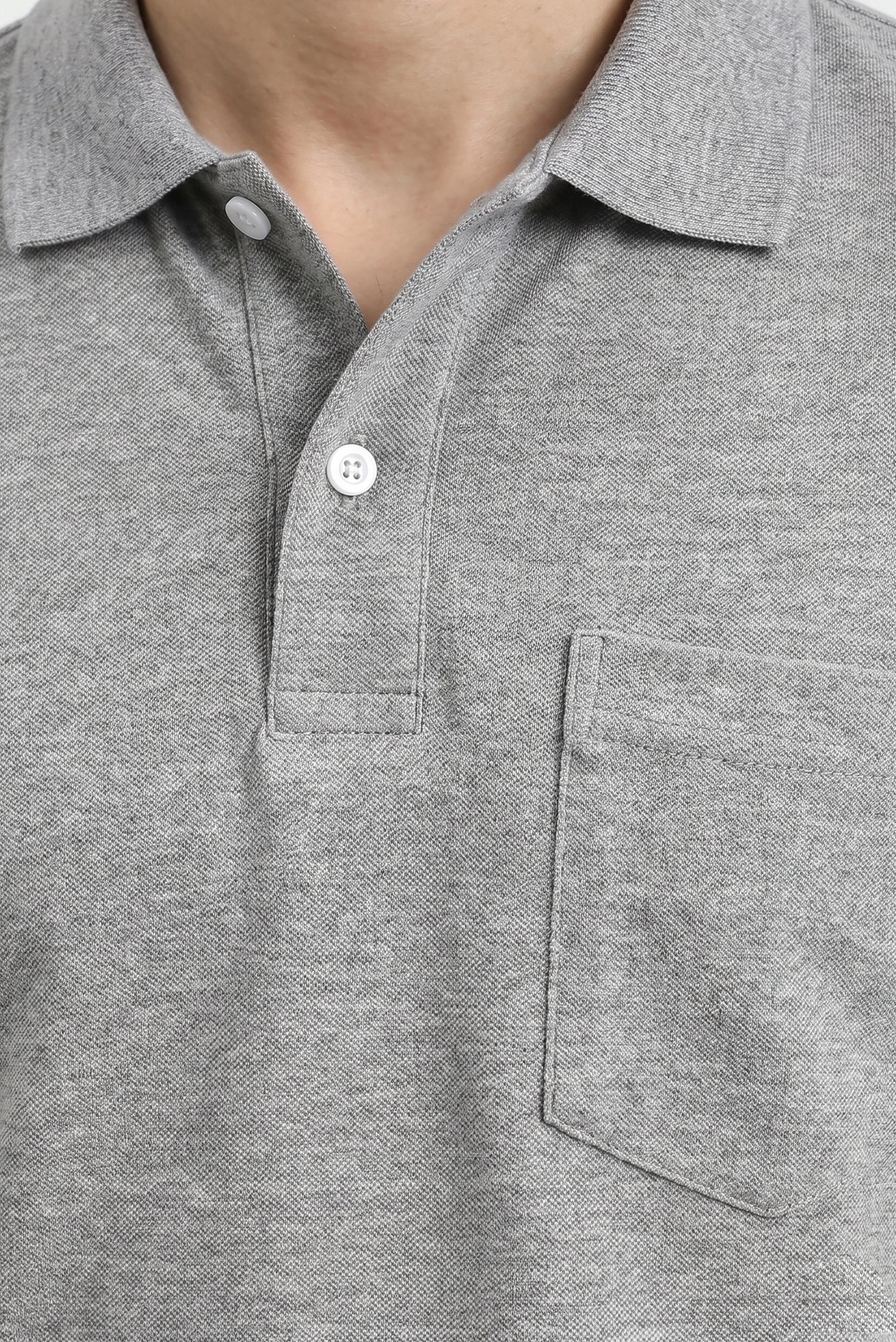 Orta Gri Melanj Regular Fit Pamuklu Nakışlı Cepli Polo Yaka Tişört