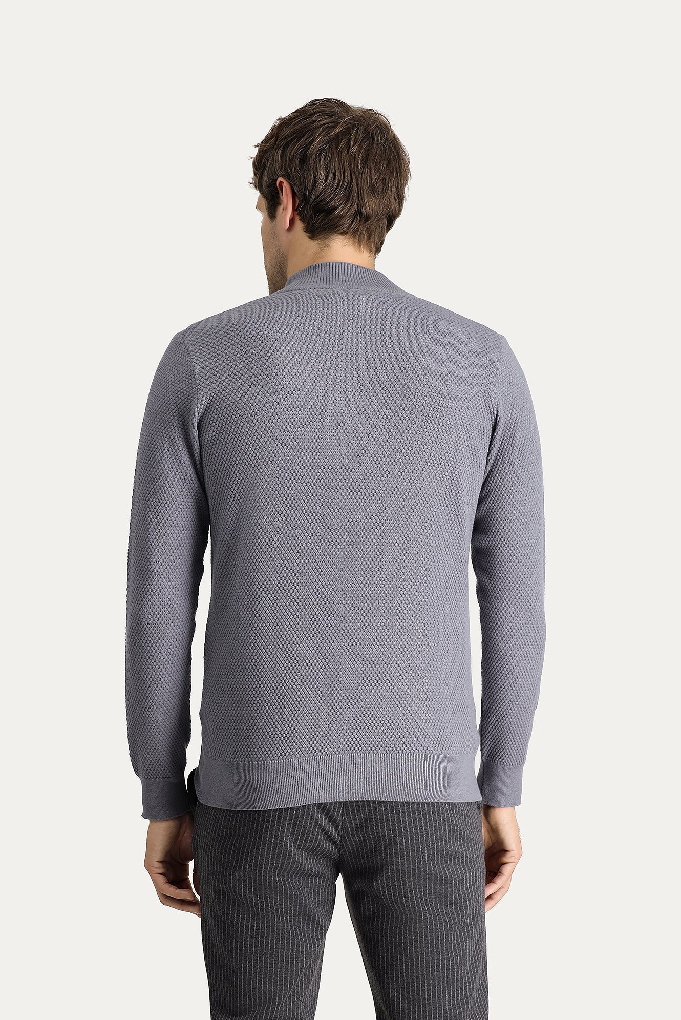 Orta Gri Melanj Slim Fit Dar Kesim Yünlü Desenli Pamuklu Triko Hırka