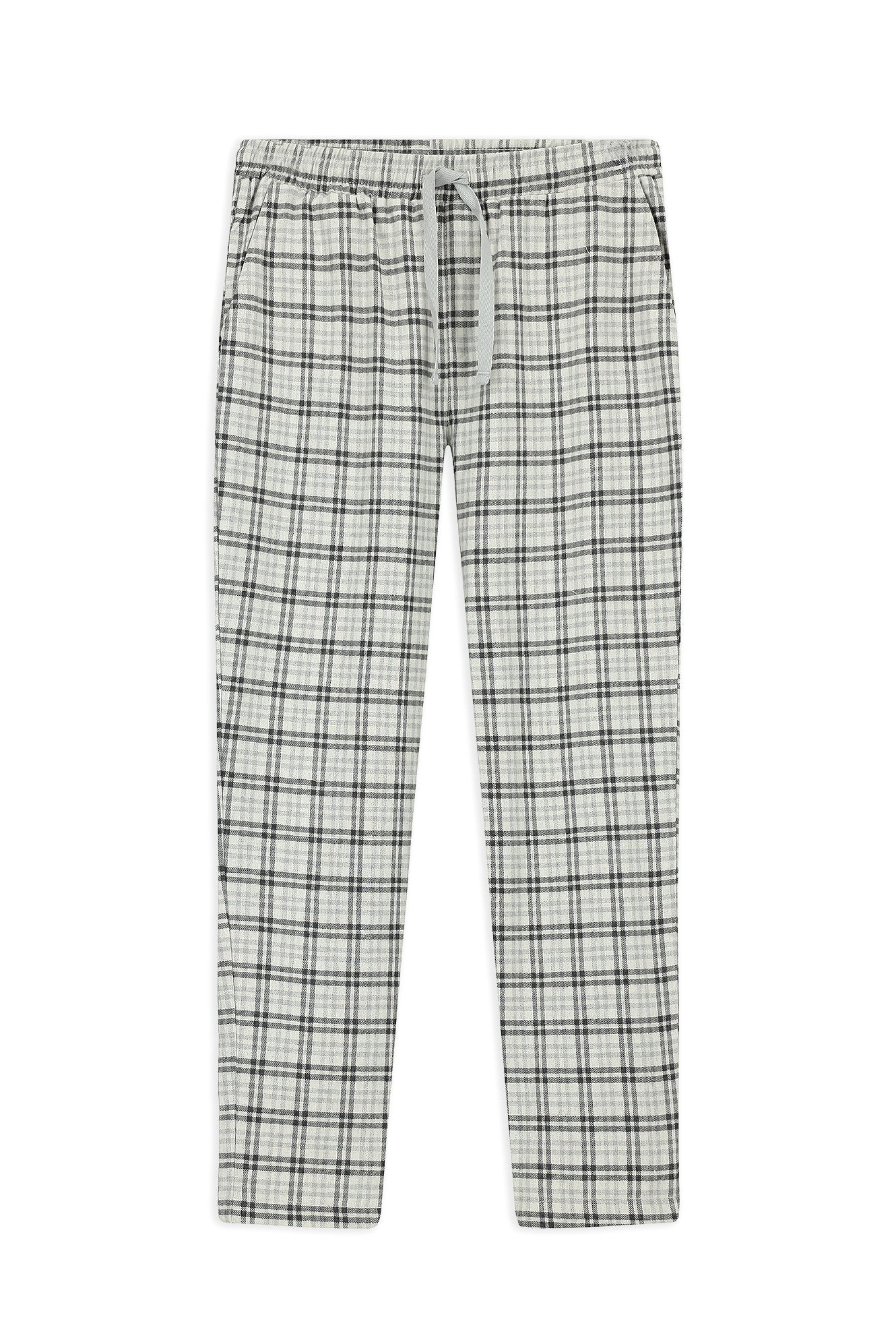 Orta Gri Melanj Slim Fit Dar Kesim Pamuklu Ekose Örme Çantalı Pijama - Eşofman Altı