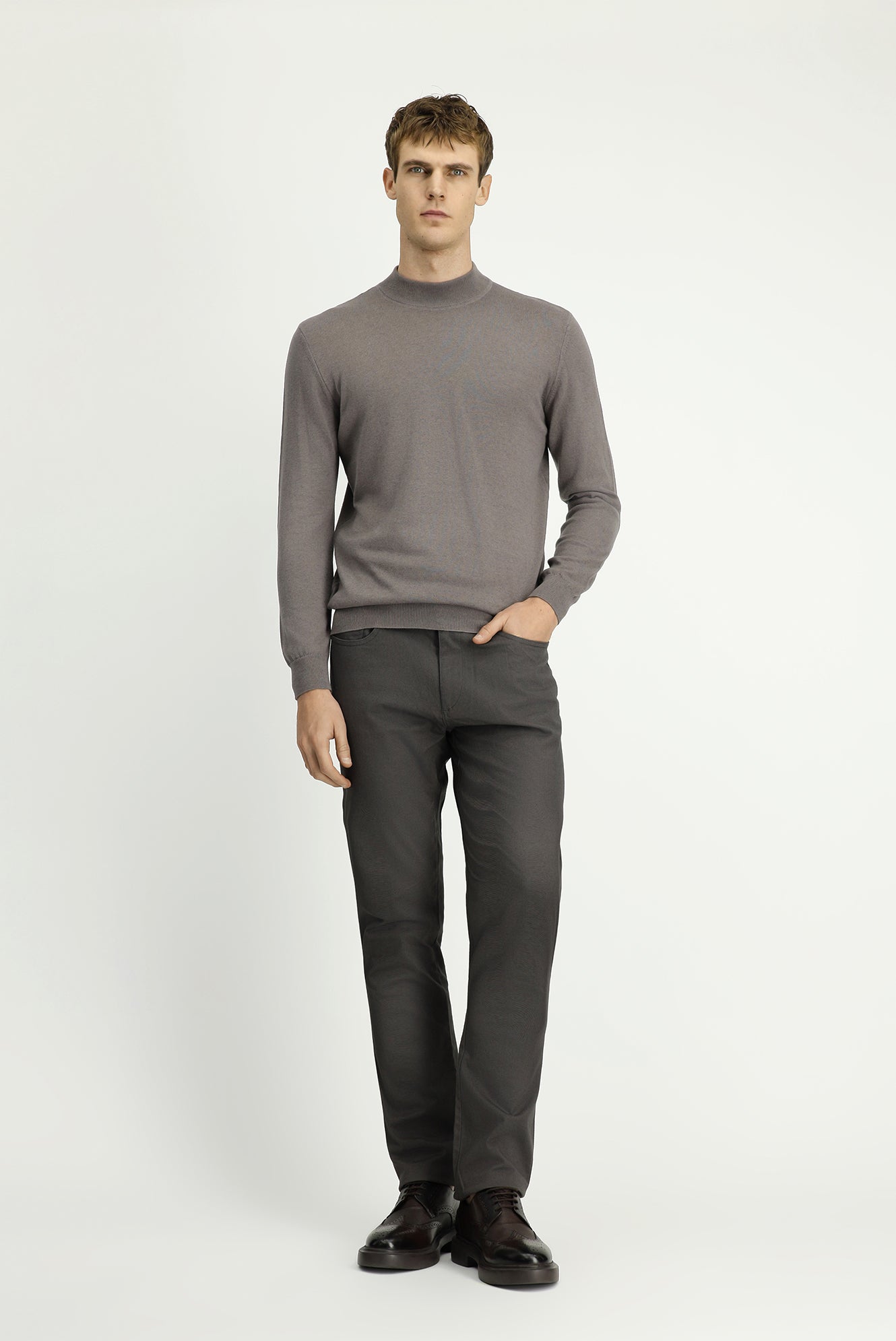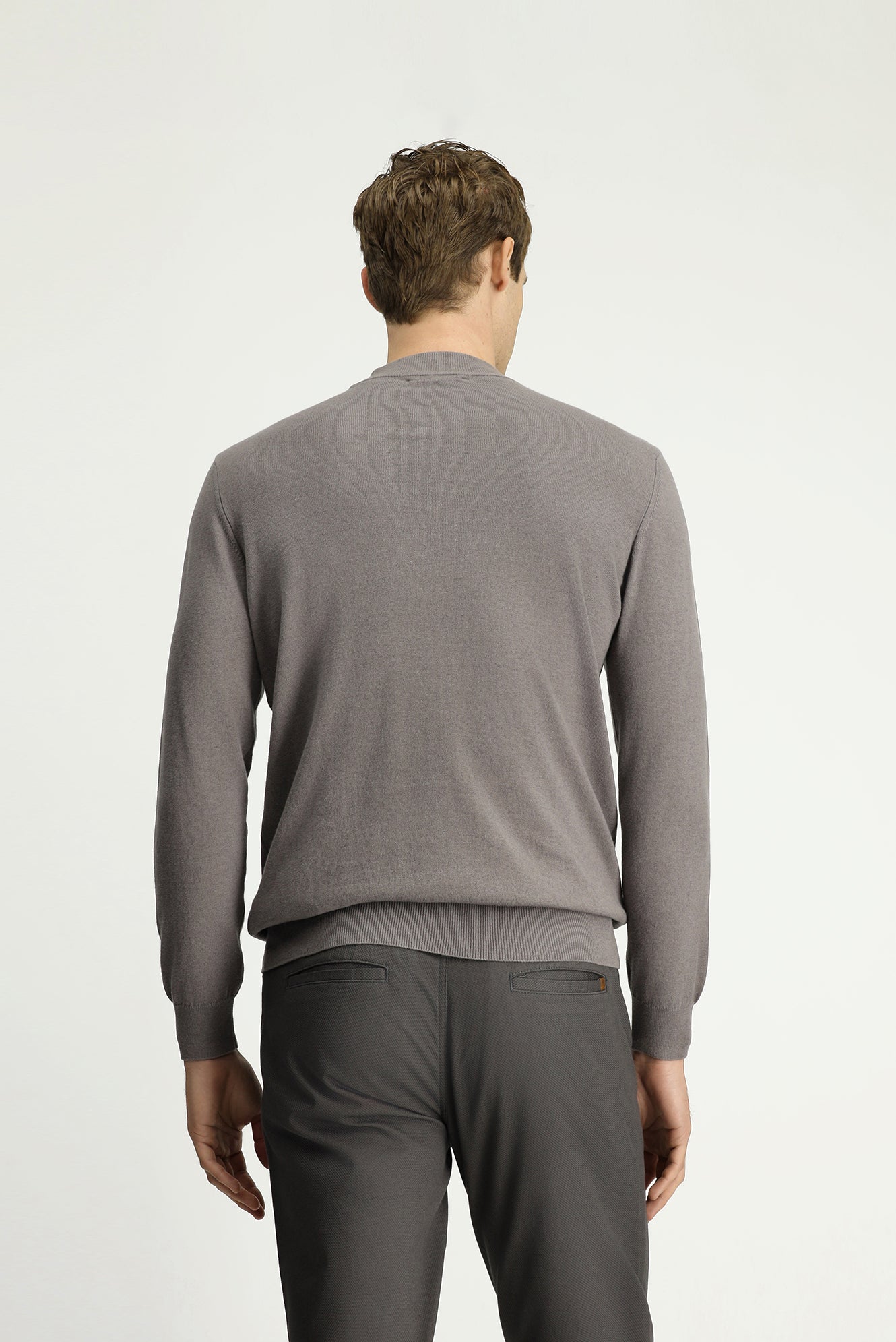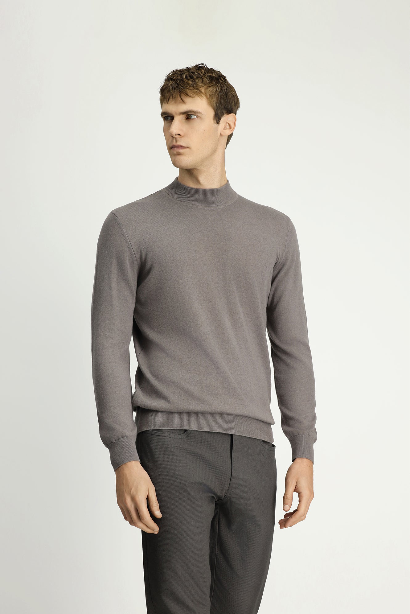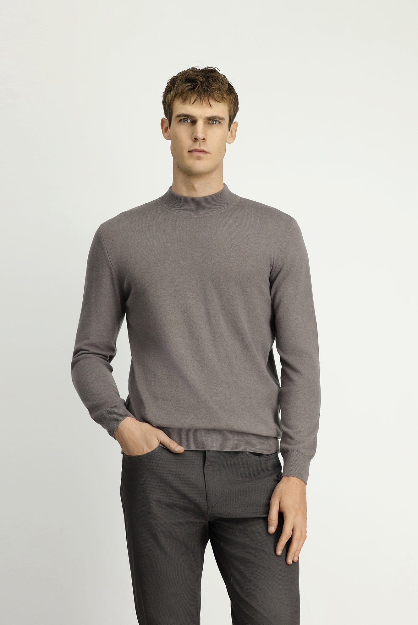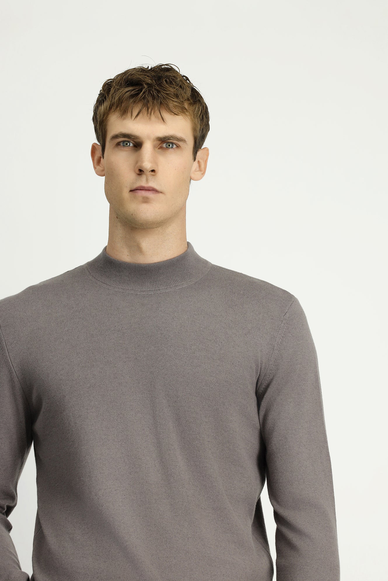 Orta Gri Melanj Yarım Balıkçı Yaka Regular Fit Pamuklu Kaşmirli Triko Kazak
