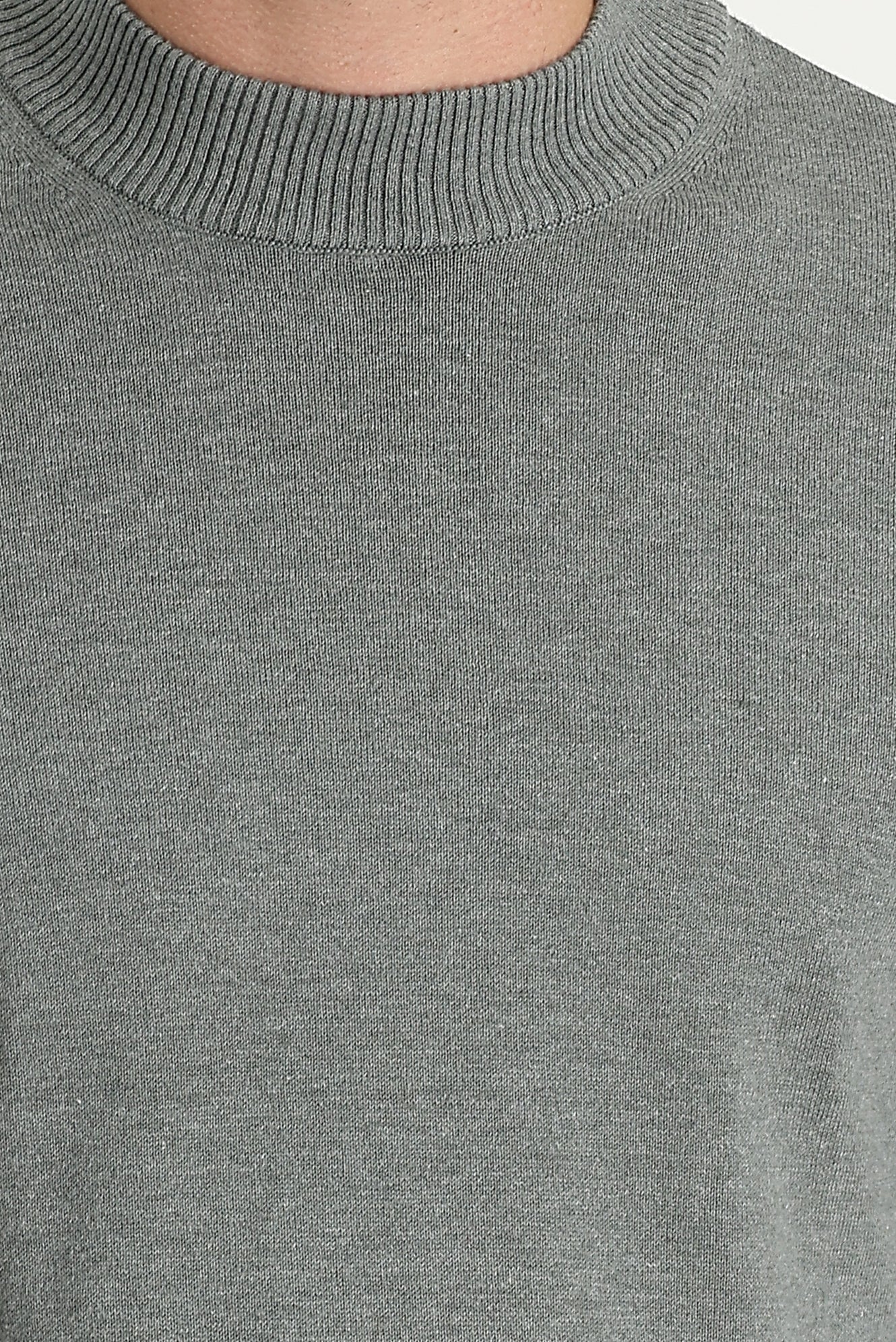 Orta Gri Melanj Yarım Balıkçı Yaka Regular Fit Pamuklu Triko Kazak
