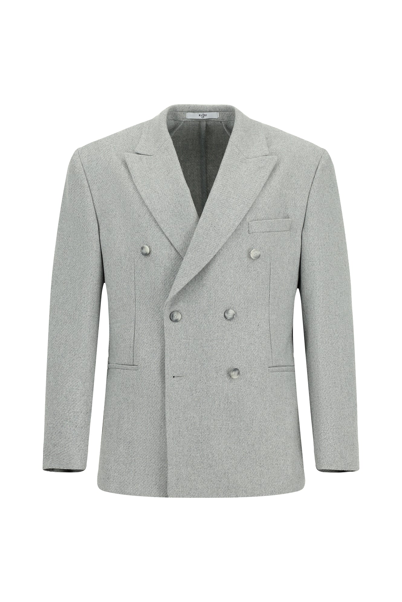 Orta Gri Milano Kalıp Yünlü Kruvaze Ceket