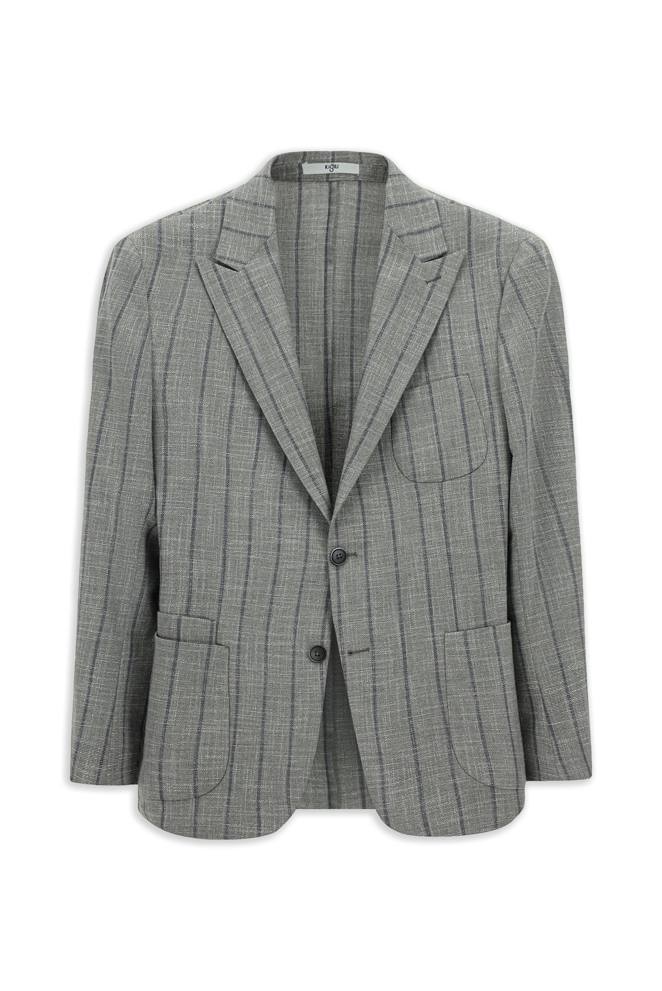 Orta Gri Regular Fit Çizgili Likralı Spor Ceket
