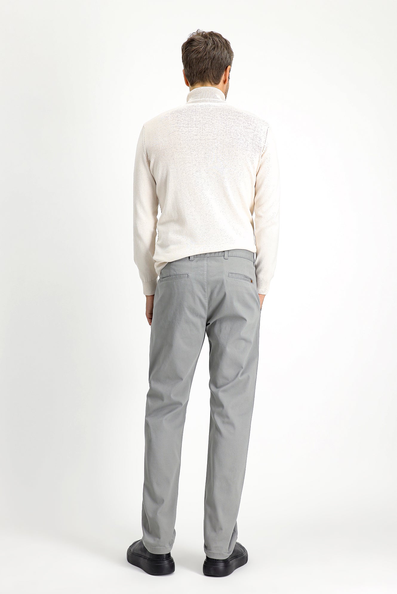 Orta Gri Regular Fit Desenli Likralı Kanvas / Chino Pantolon