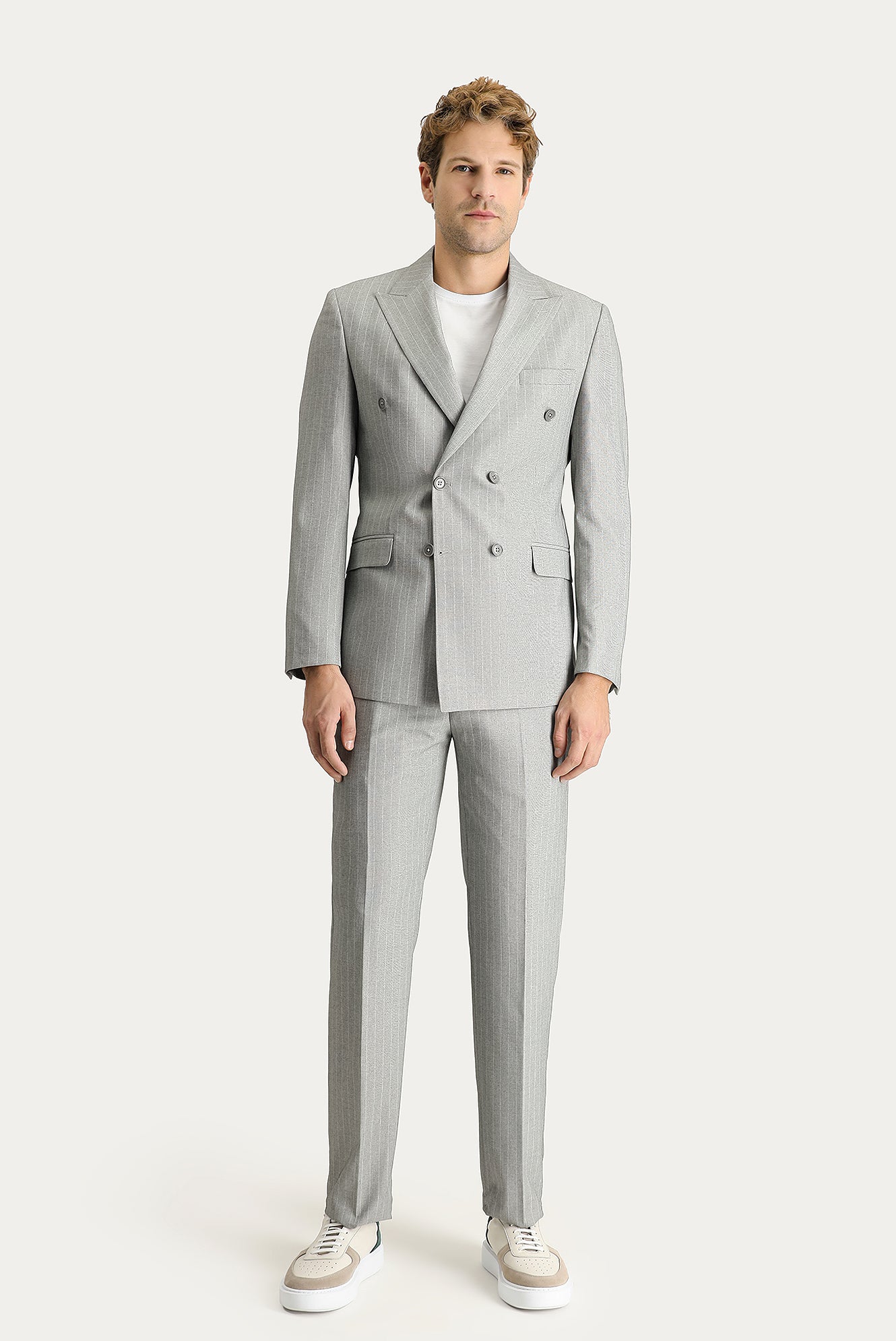 Orta Gri 6 Drop Regular Fit Standart Kesim Kruvaze Çizgili Takım Elbise