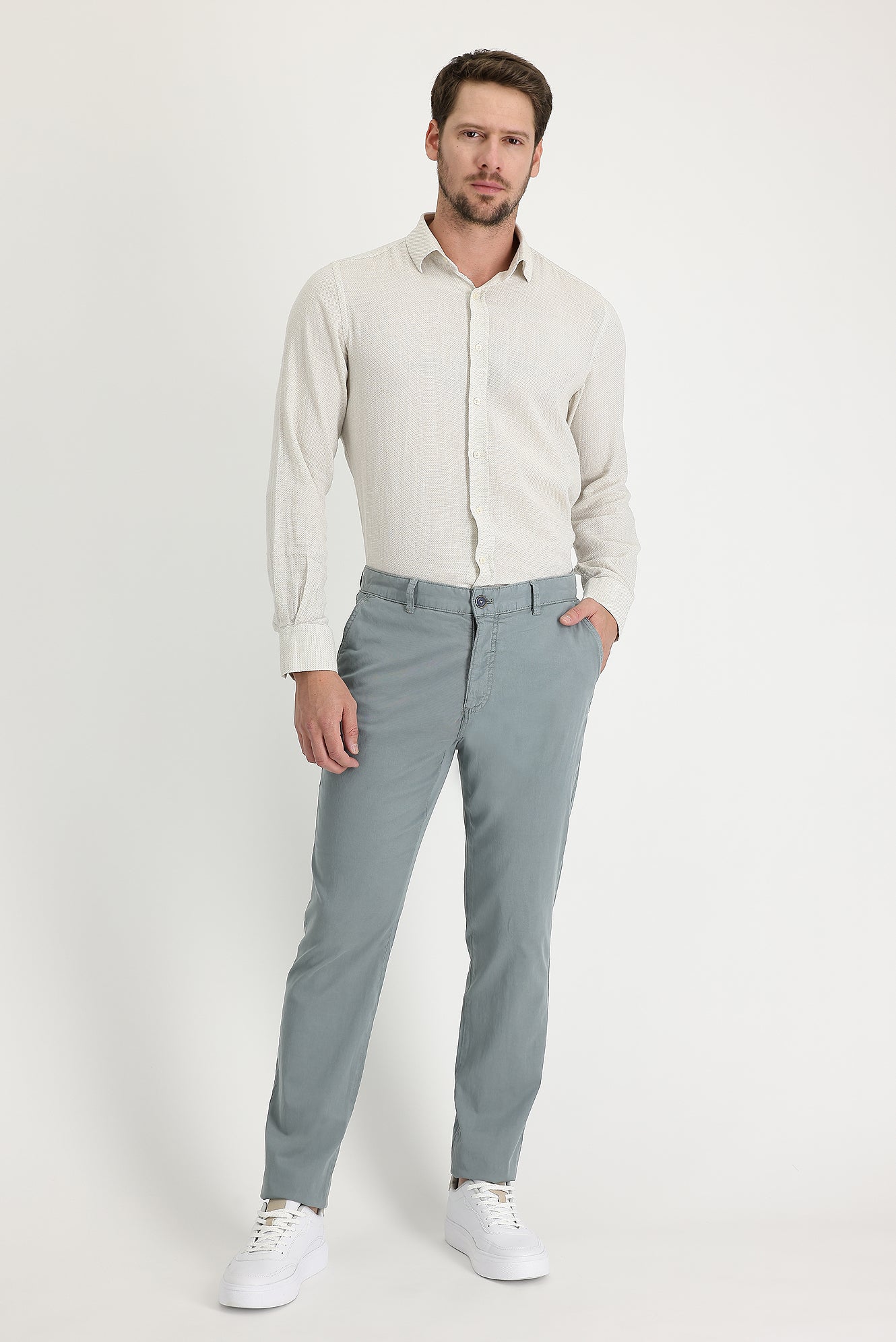 Orta Gri Regular Fit Likralı Kanvas / Chino Pantolon