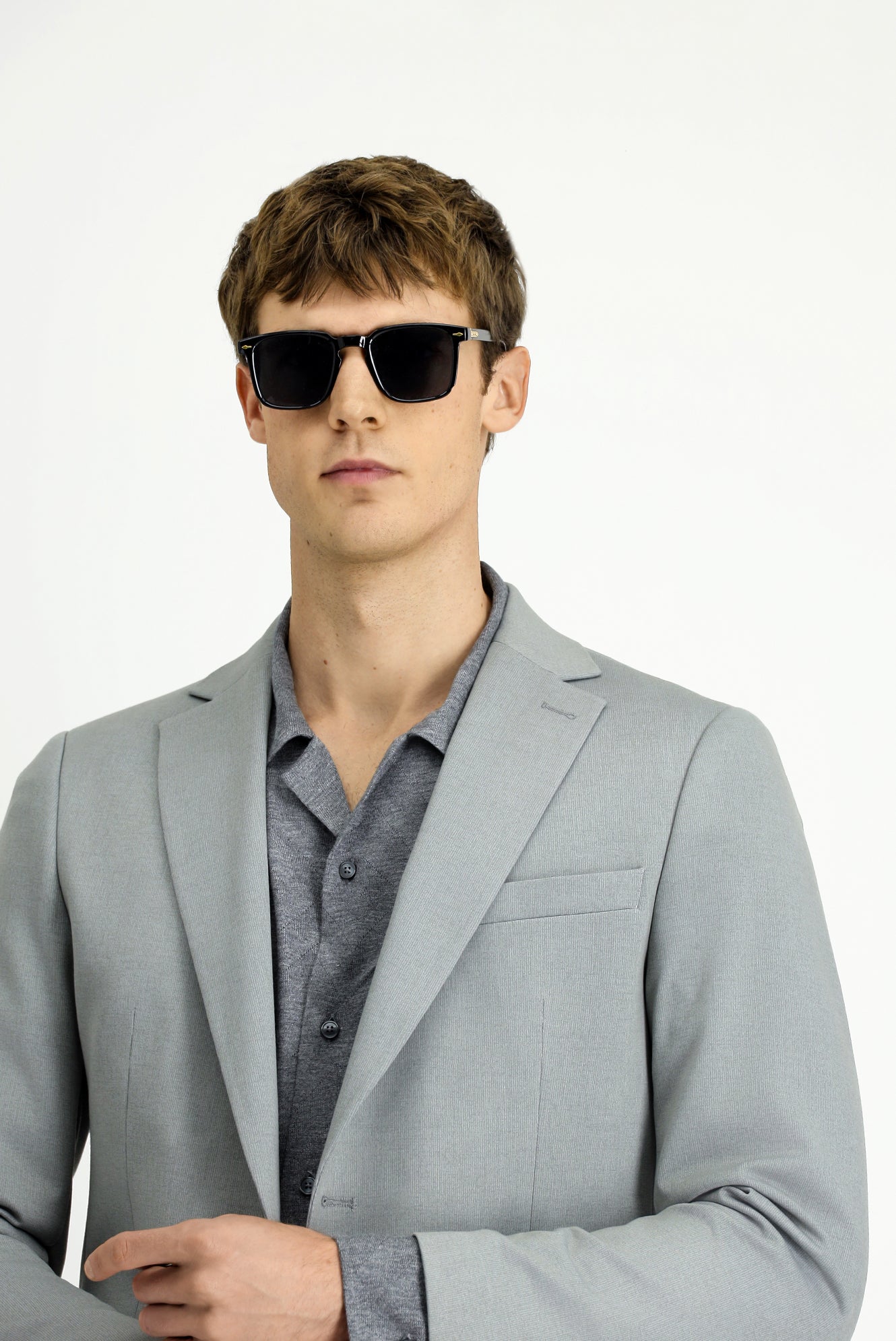Orta Gri Regular Fit Likralı Klasik Ceket