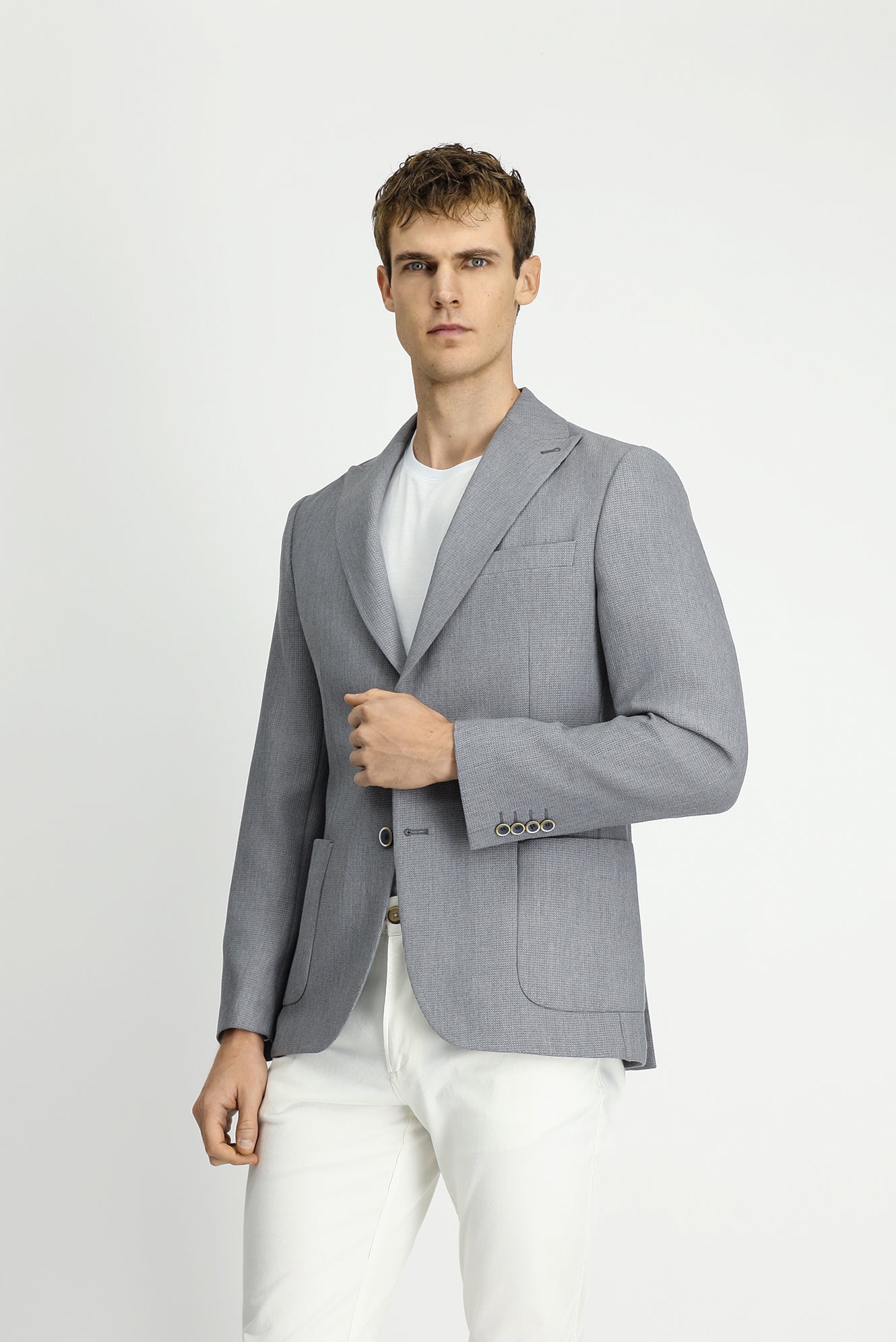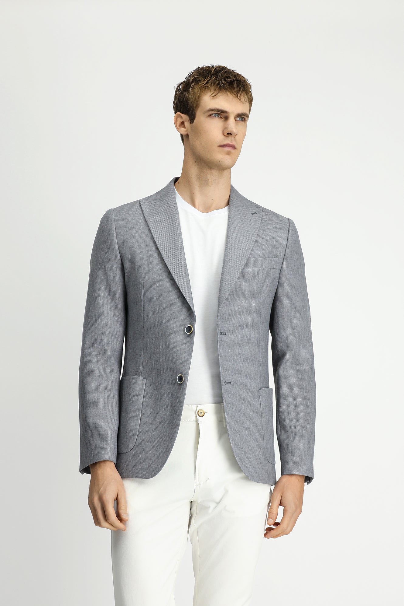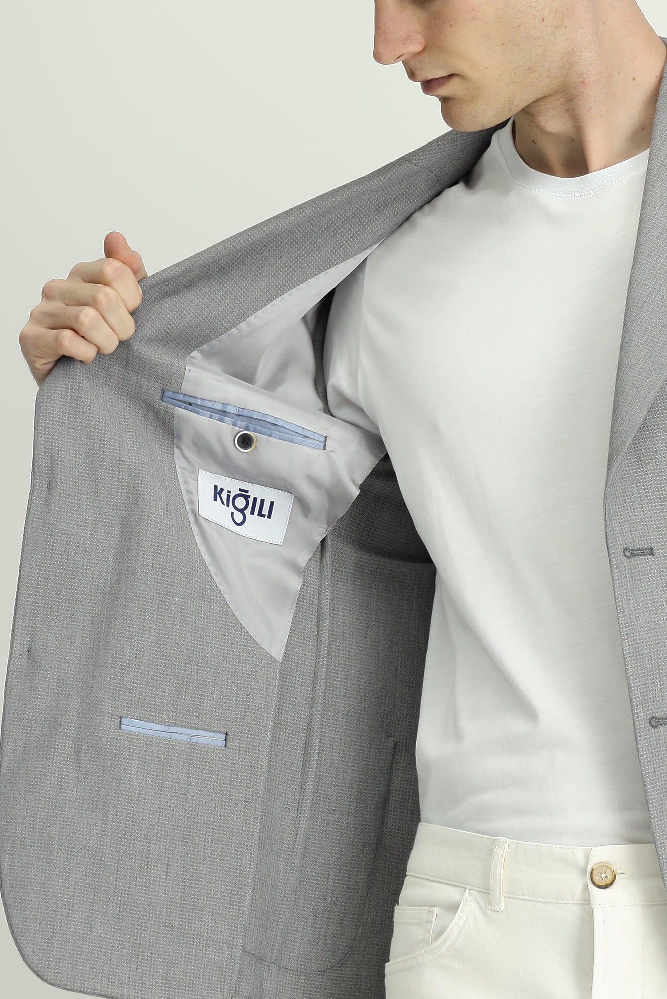 Orta Gri Regular Fit Likralı Desenli Spor Ceket