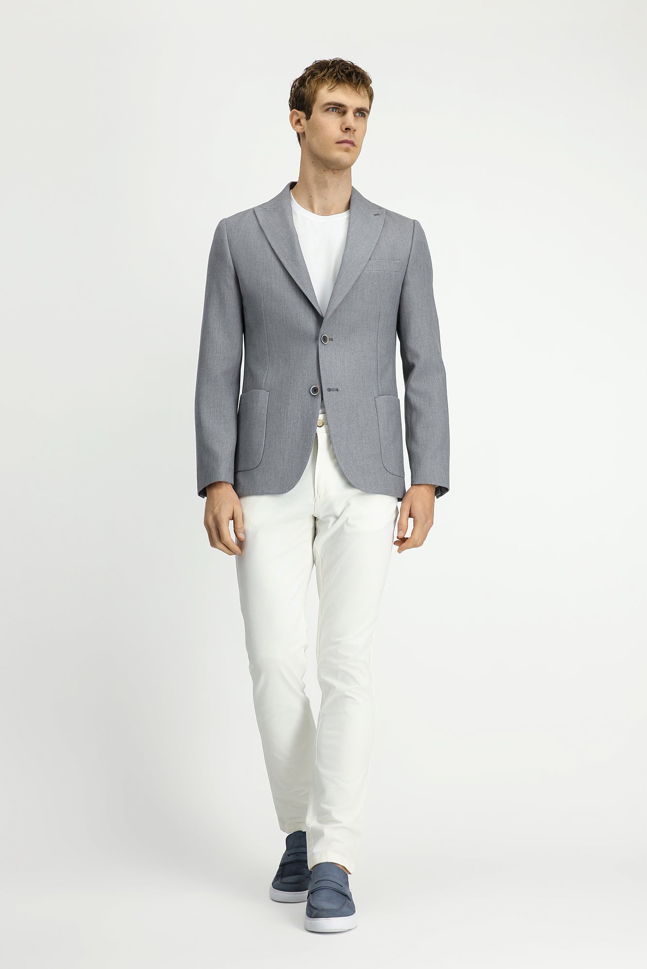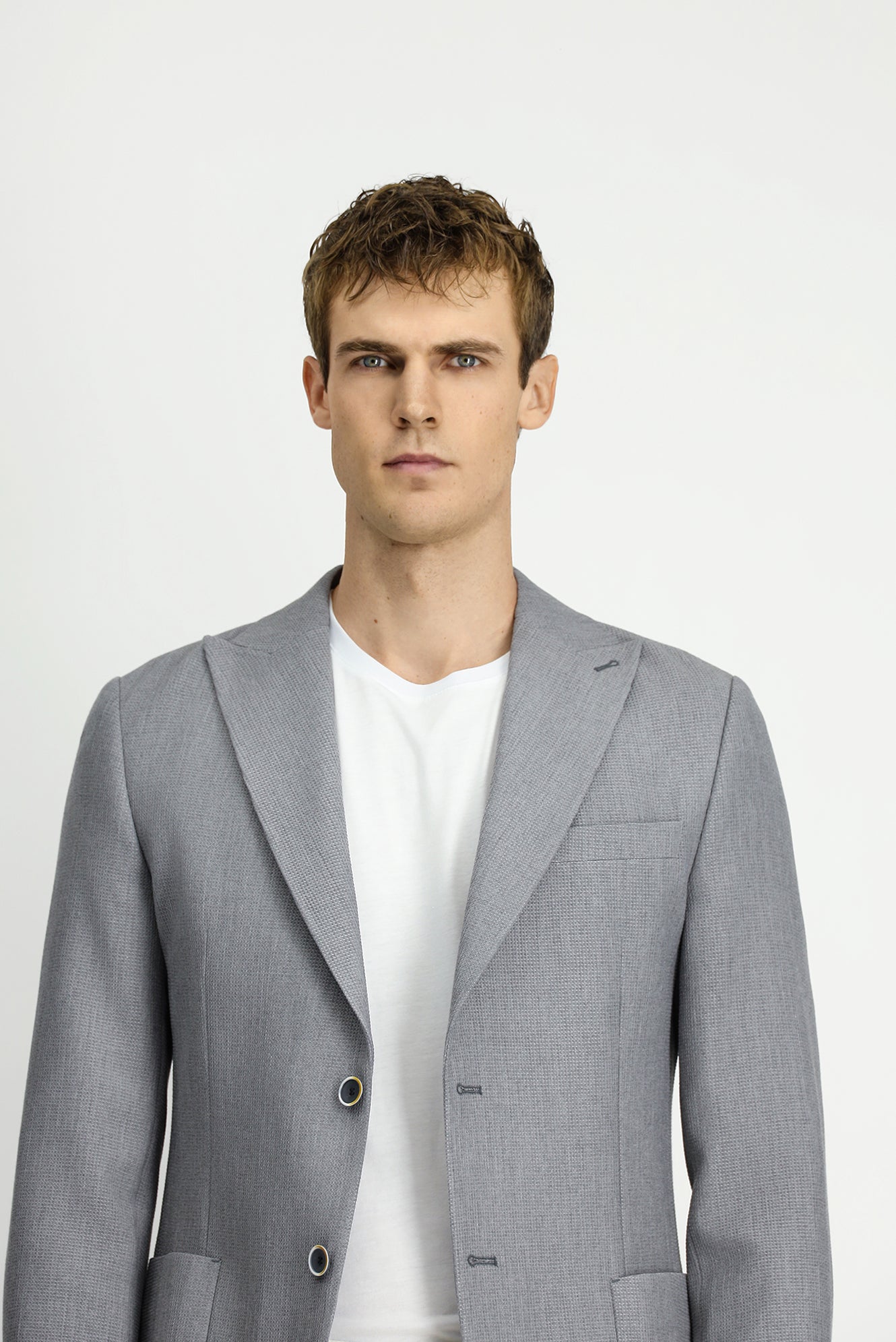Orta Gri Muscle Fit Likralı Desenli Spor Ceket