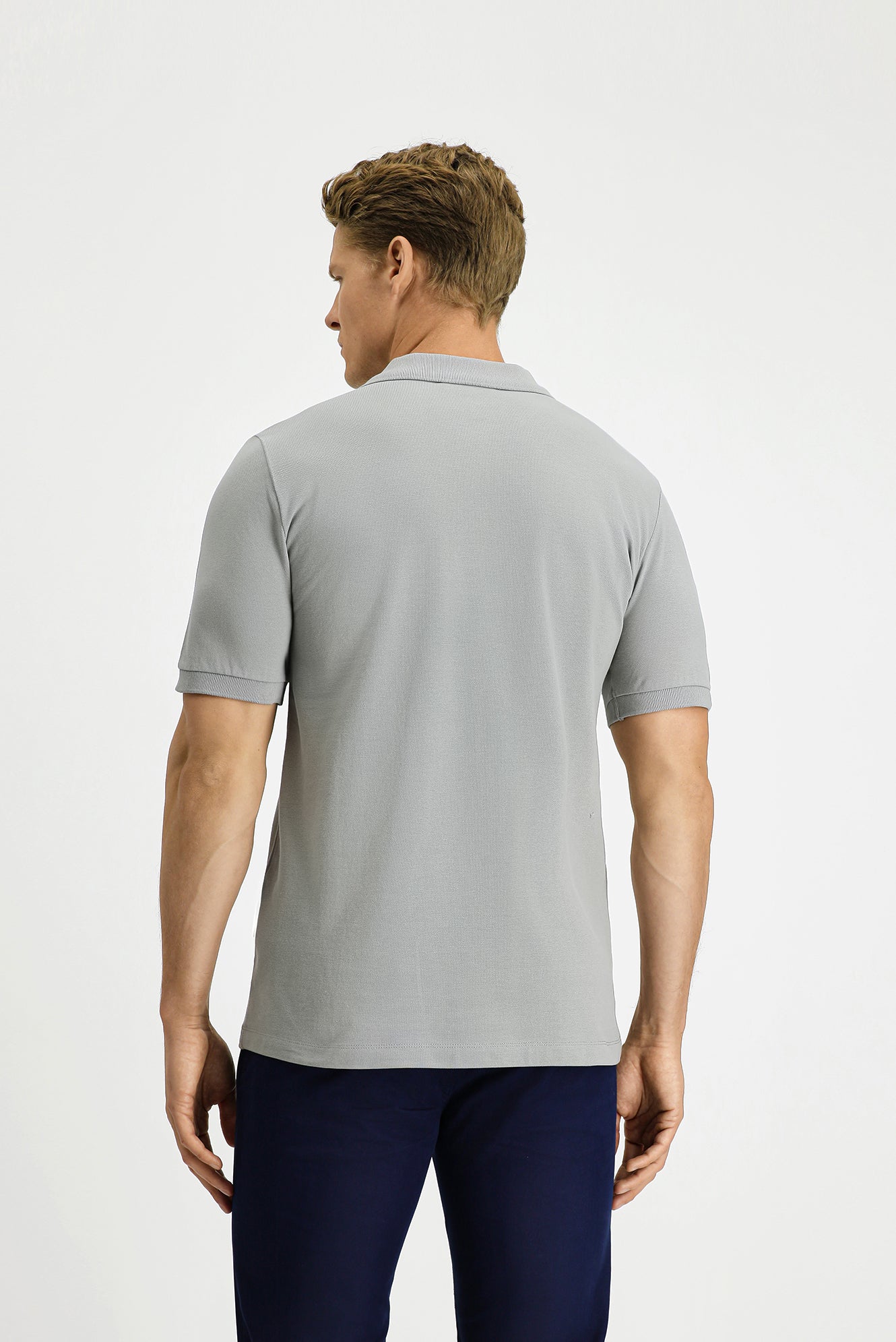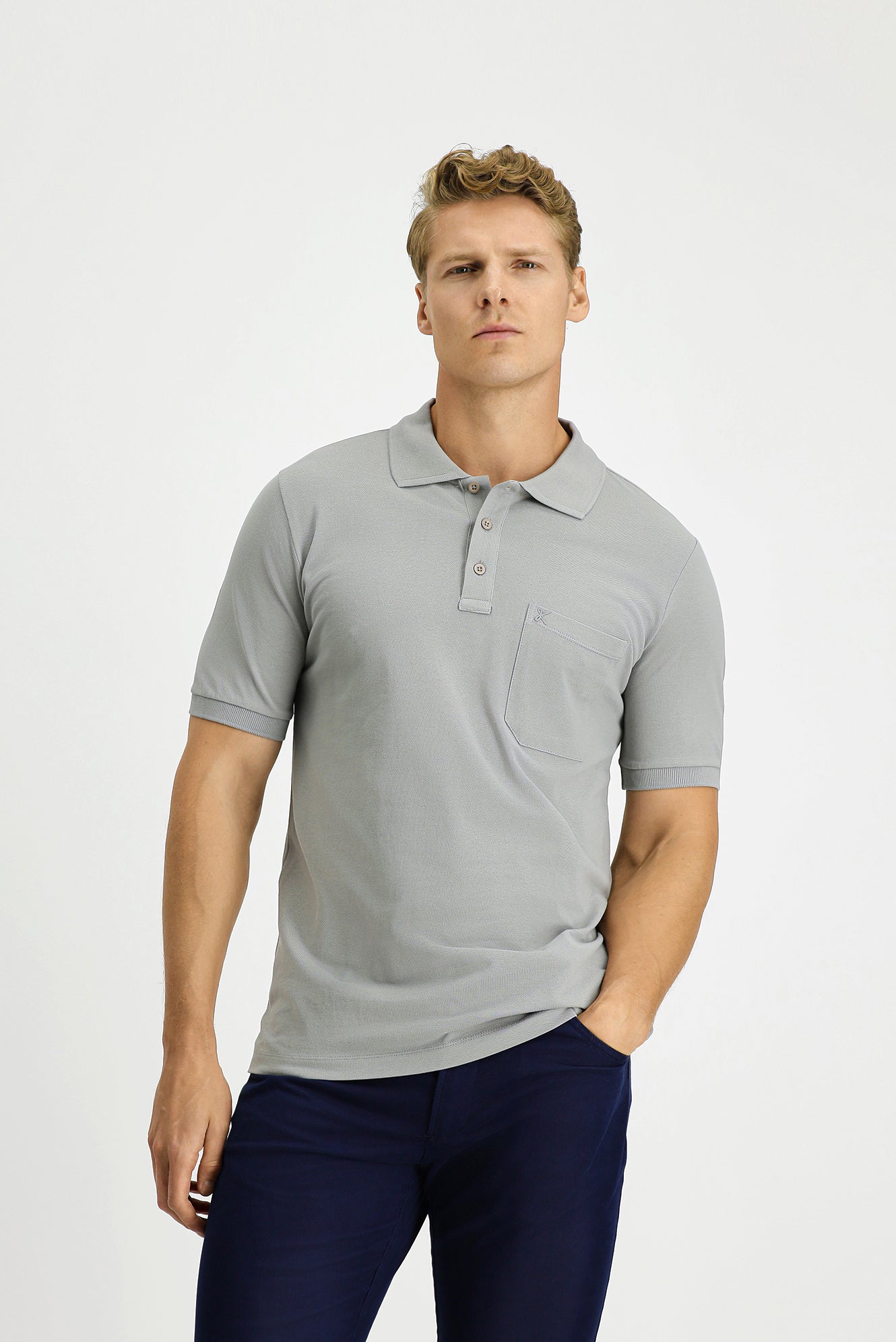 Orta Gri Regular Fit Pamuk Nakışlı Cepli Kıvrılmaz Polo Yaka Tişört