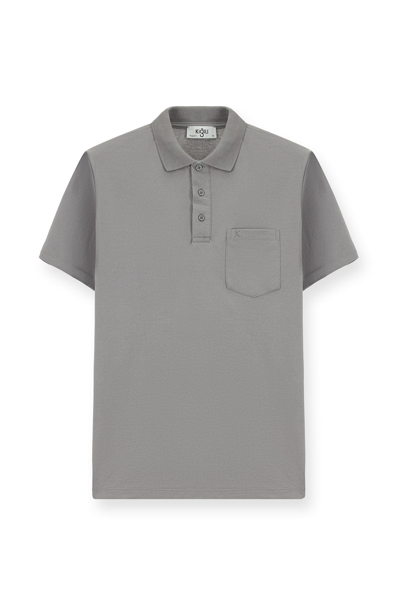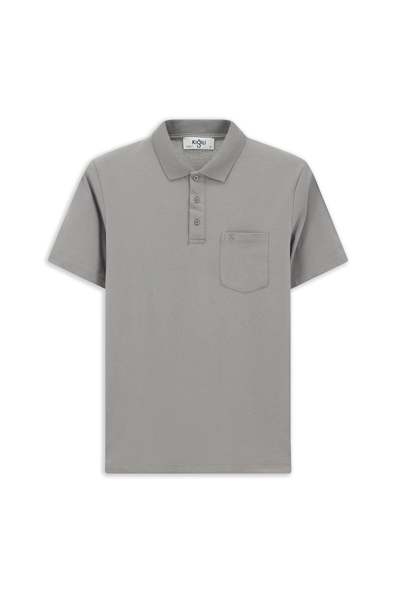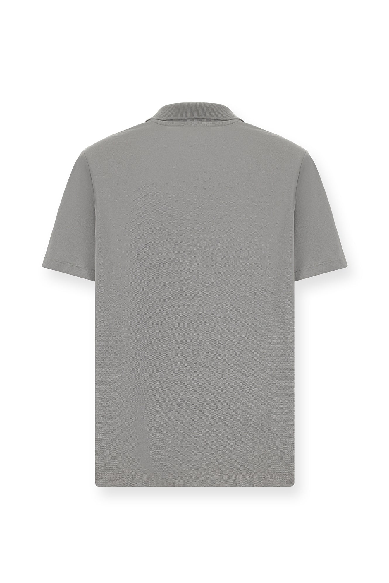 Orta Gri Regular Fit Pamuklu Nakışlı Cepli Polo Yaka Tişört