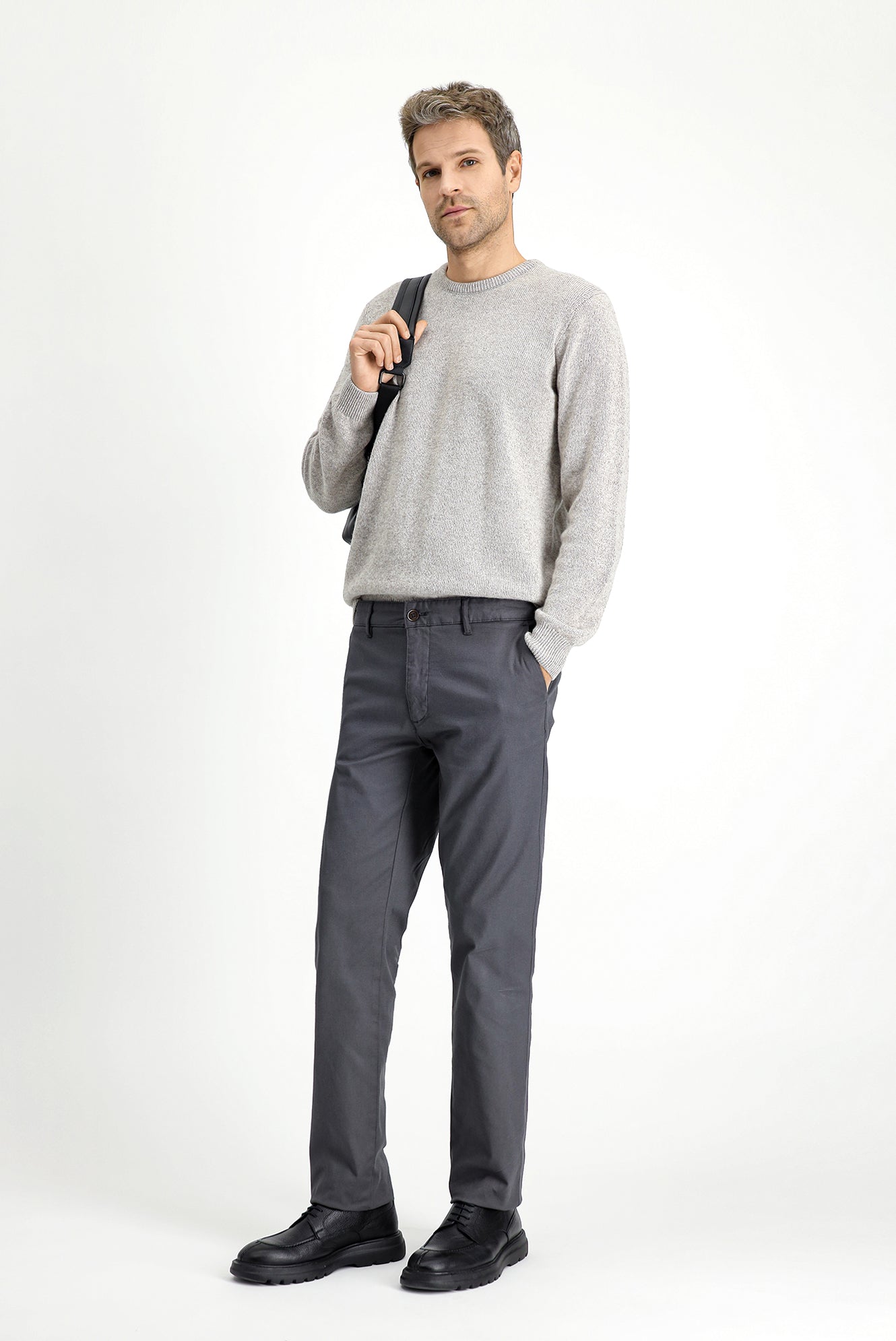 Orta Gri Relaxed Fit Rahat Kesim Desenli Likralı Kanvas / Chino Pantolon