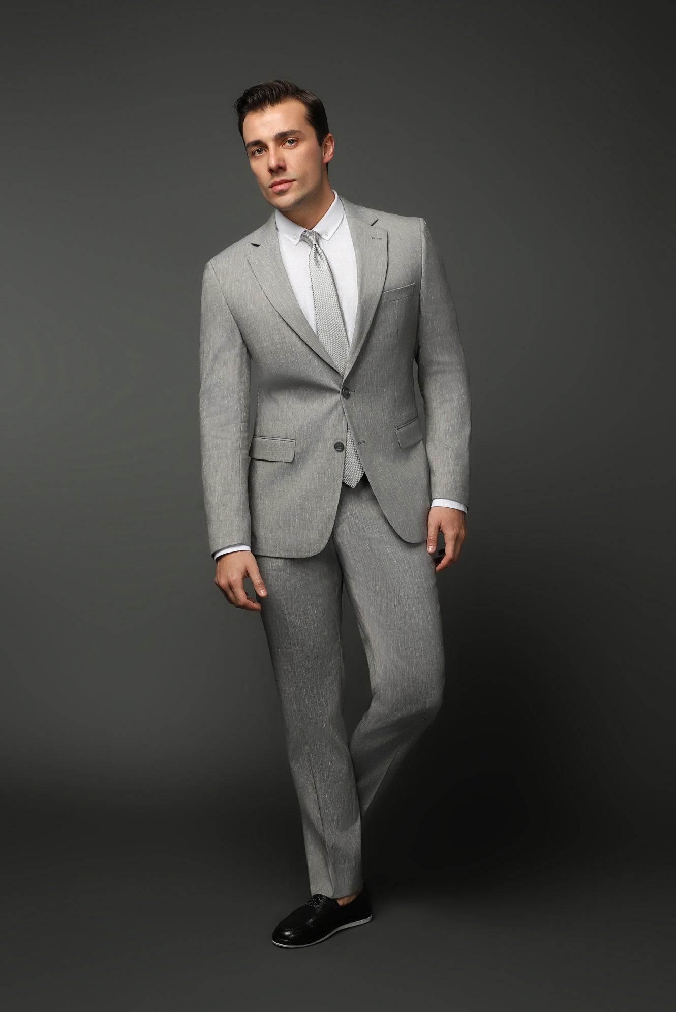 Orta Gri 7 Drop Slim Fit Dar Kesim Keten Karışımlı Takım Elbise