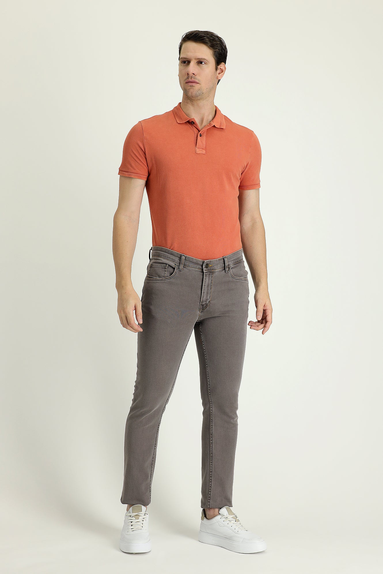 Orta Gri 7 Drop Slim Fit Dar Kesim Likralı Denim Pantolon