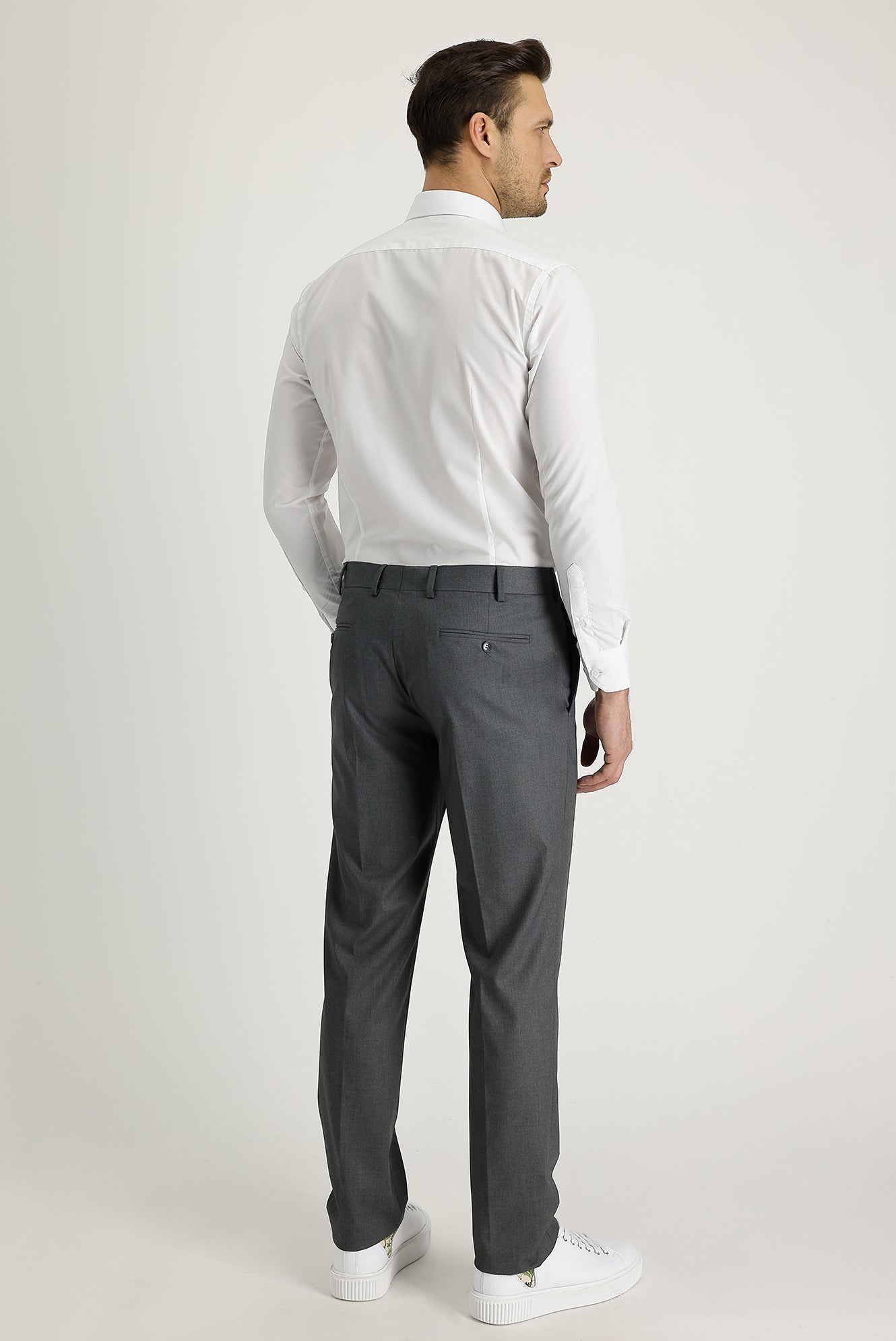Orta Gri Slim Fit Dar Kesim Likralı Klasik Kumaş Pantolon