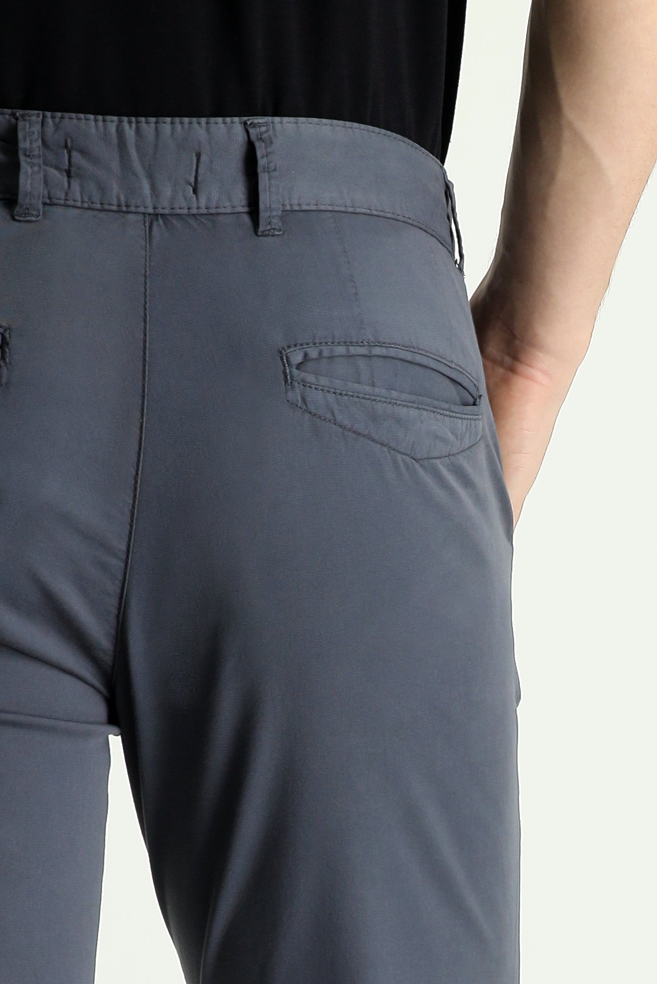 Orta Gri Slim Fit Dar Kesim Likralı Saten Kanvas / Chino Pantolon