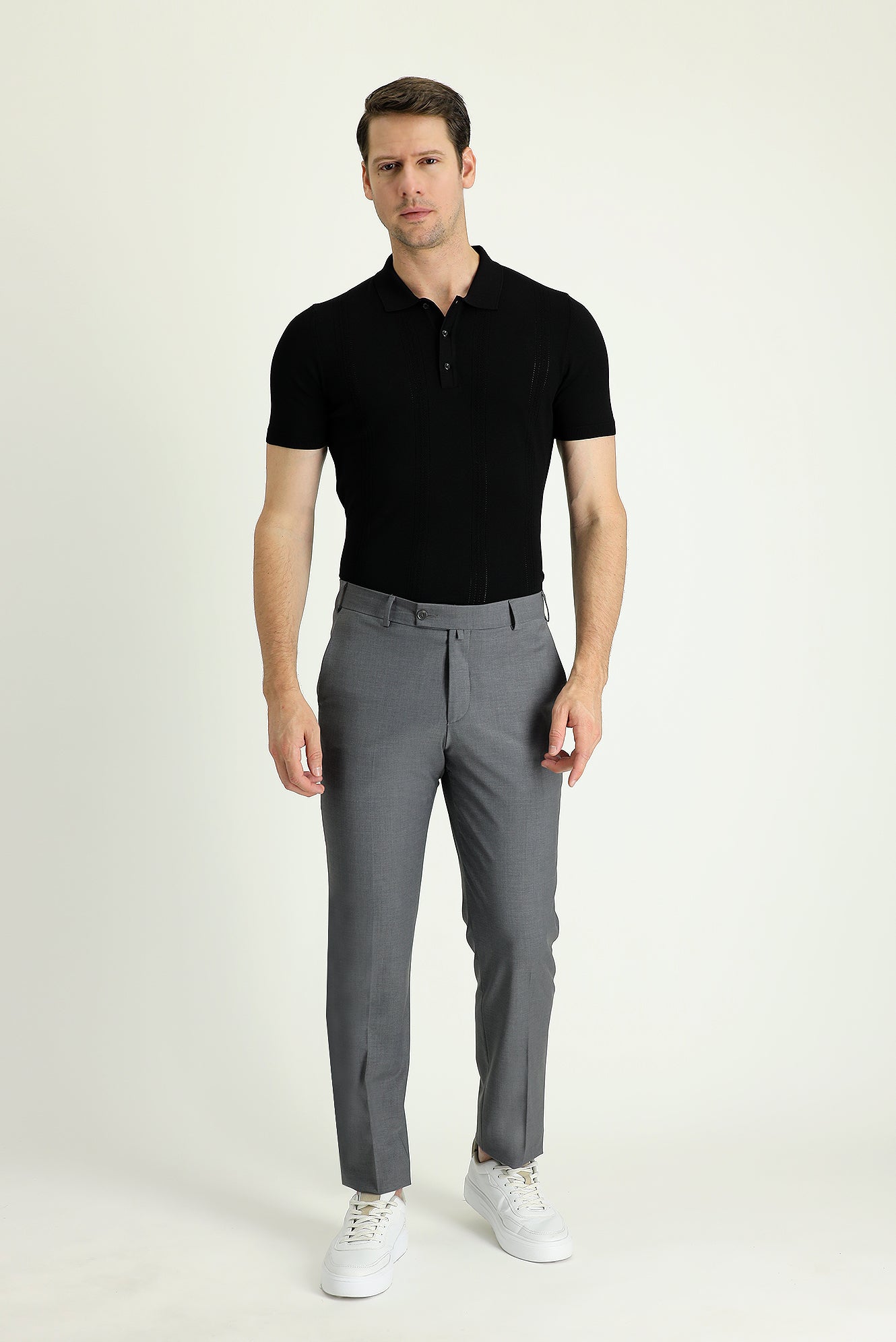 Orta Gri Slim Fit Dar Kesim Yünlü Klasik Kumaş Pantolon