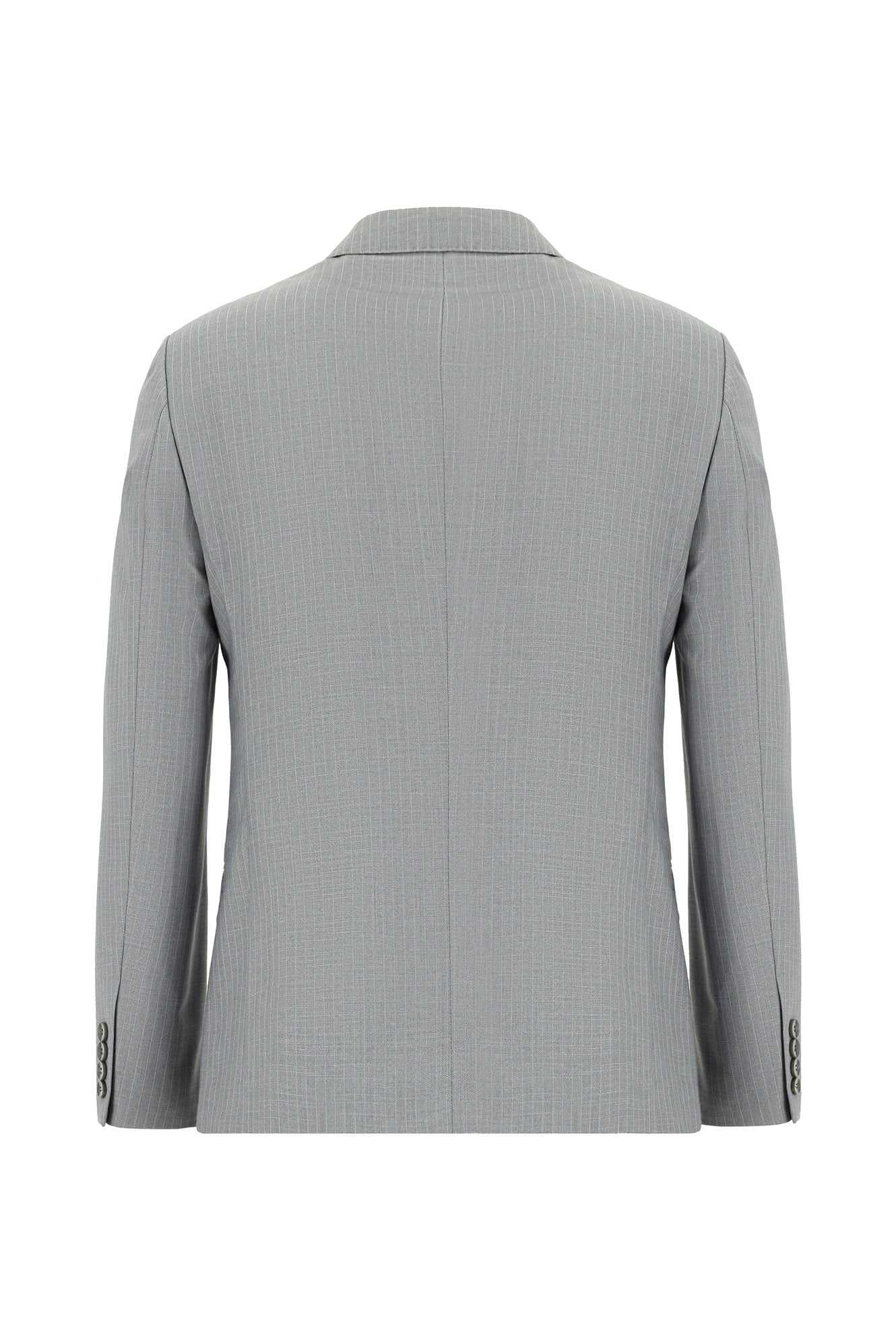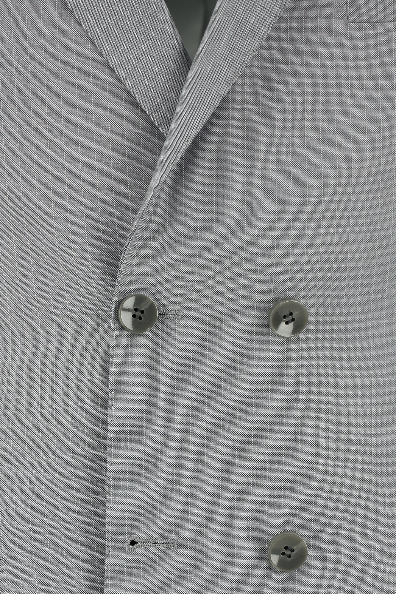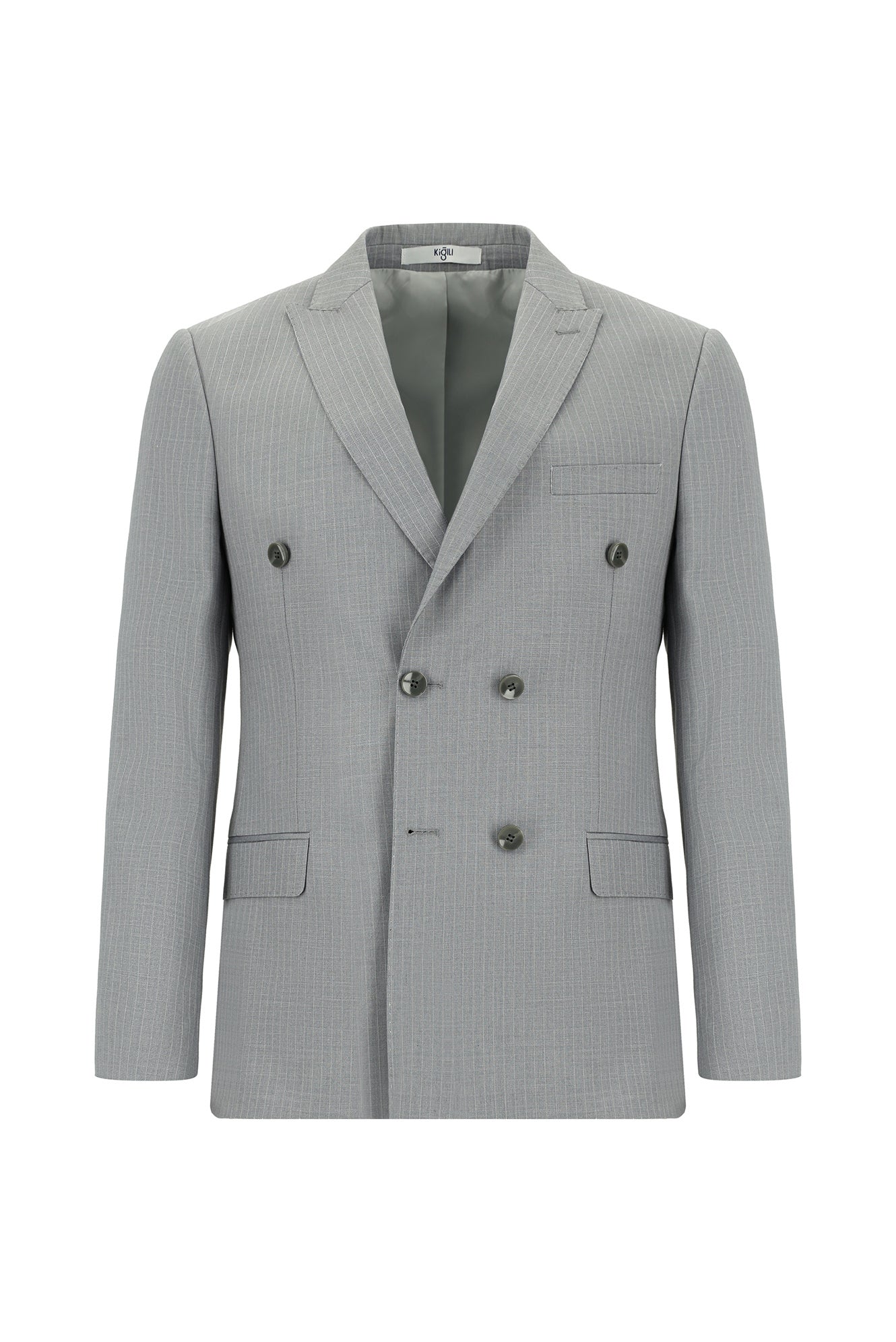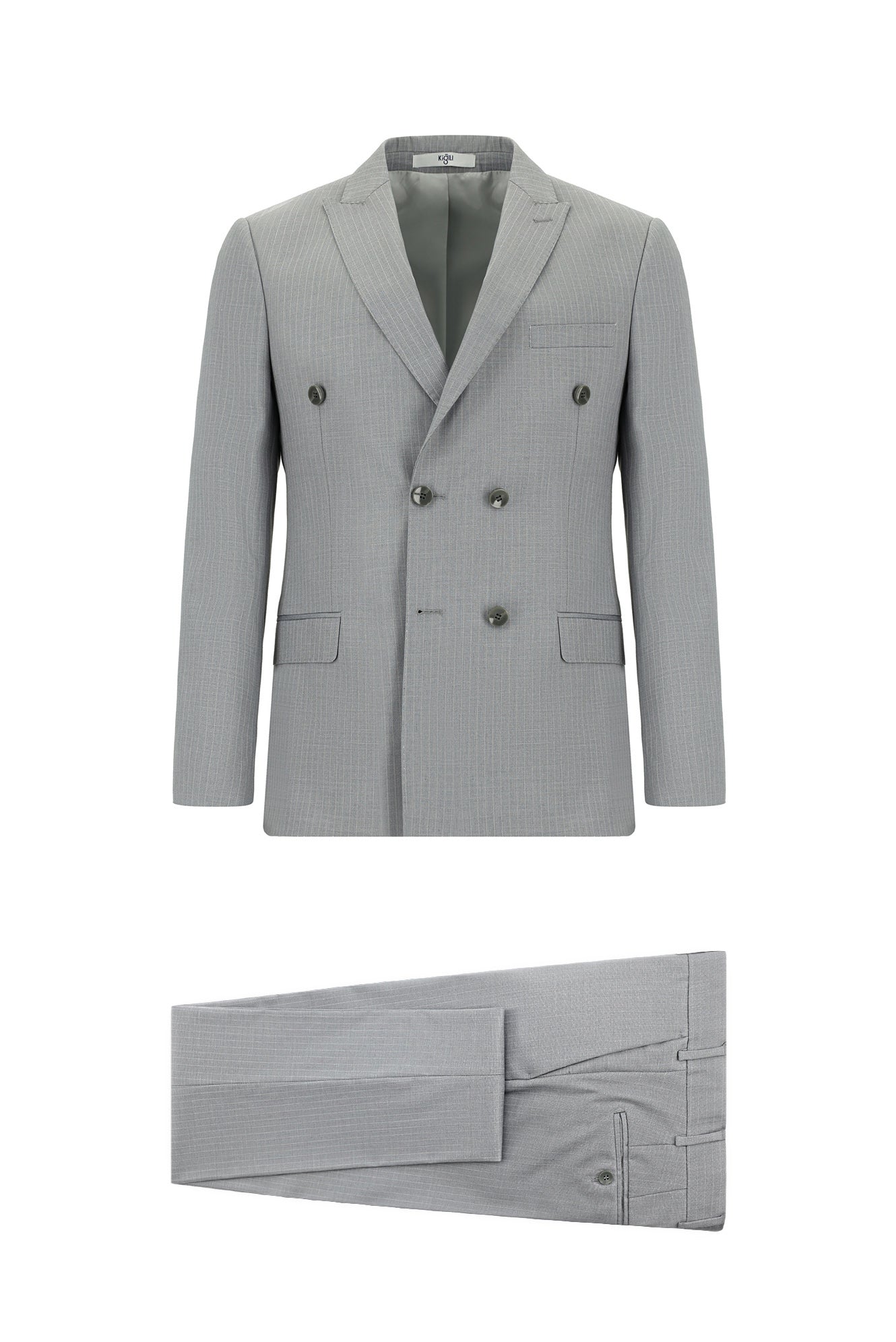 Orta Gri 7 Drop Super Slim Fit Eksra Dar Kesim Çizgili Kruvaze Takım Elbise