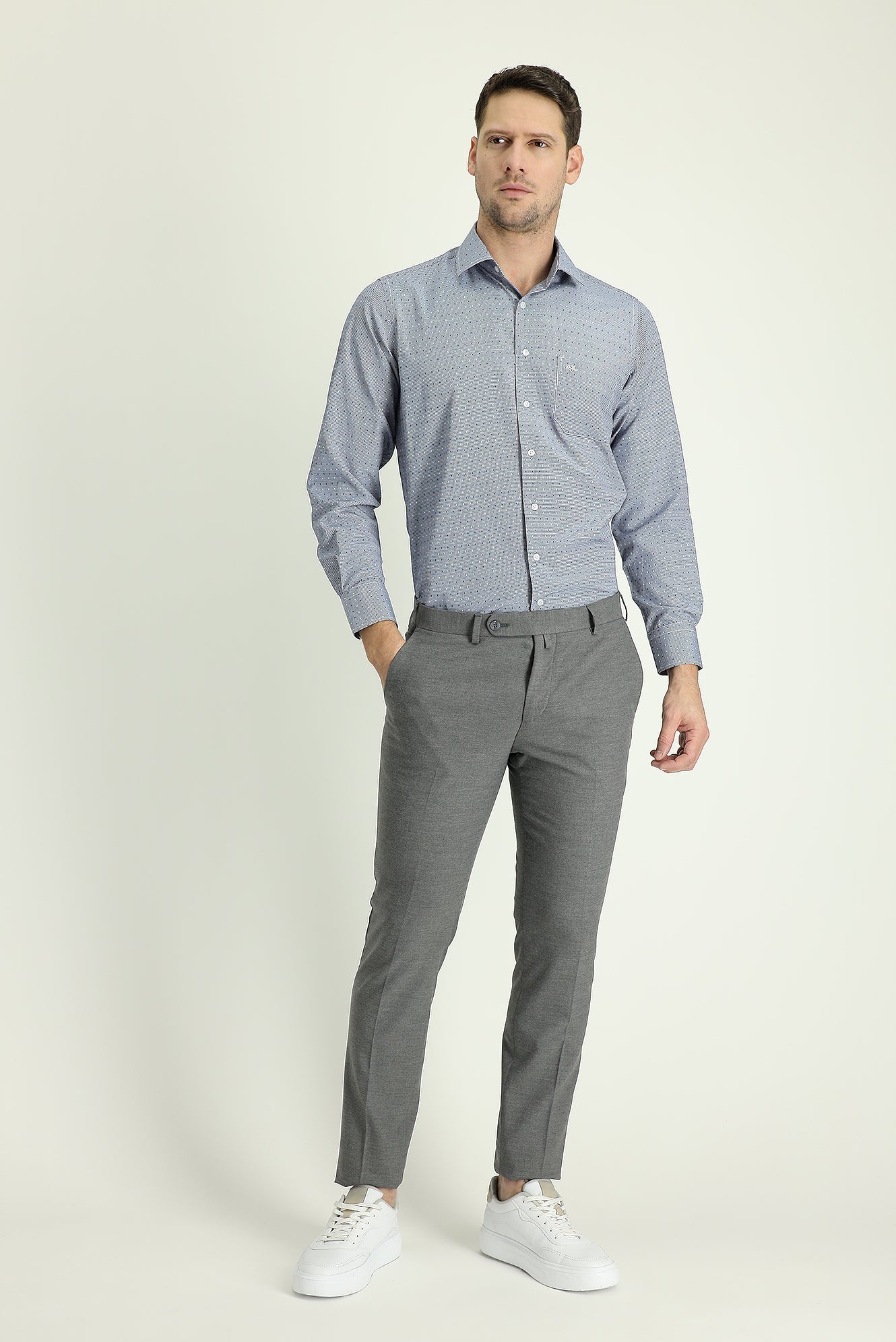 Orta Gri Super Slim Fit Ekstra Dar Kesim Likralı Klasik Kumaş Pantolon
