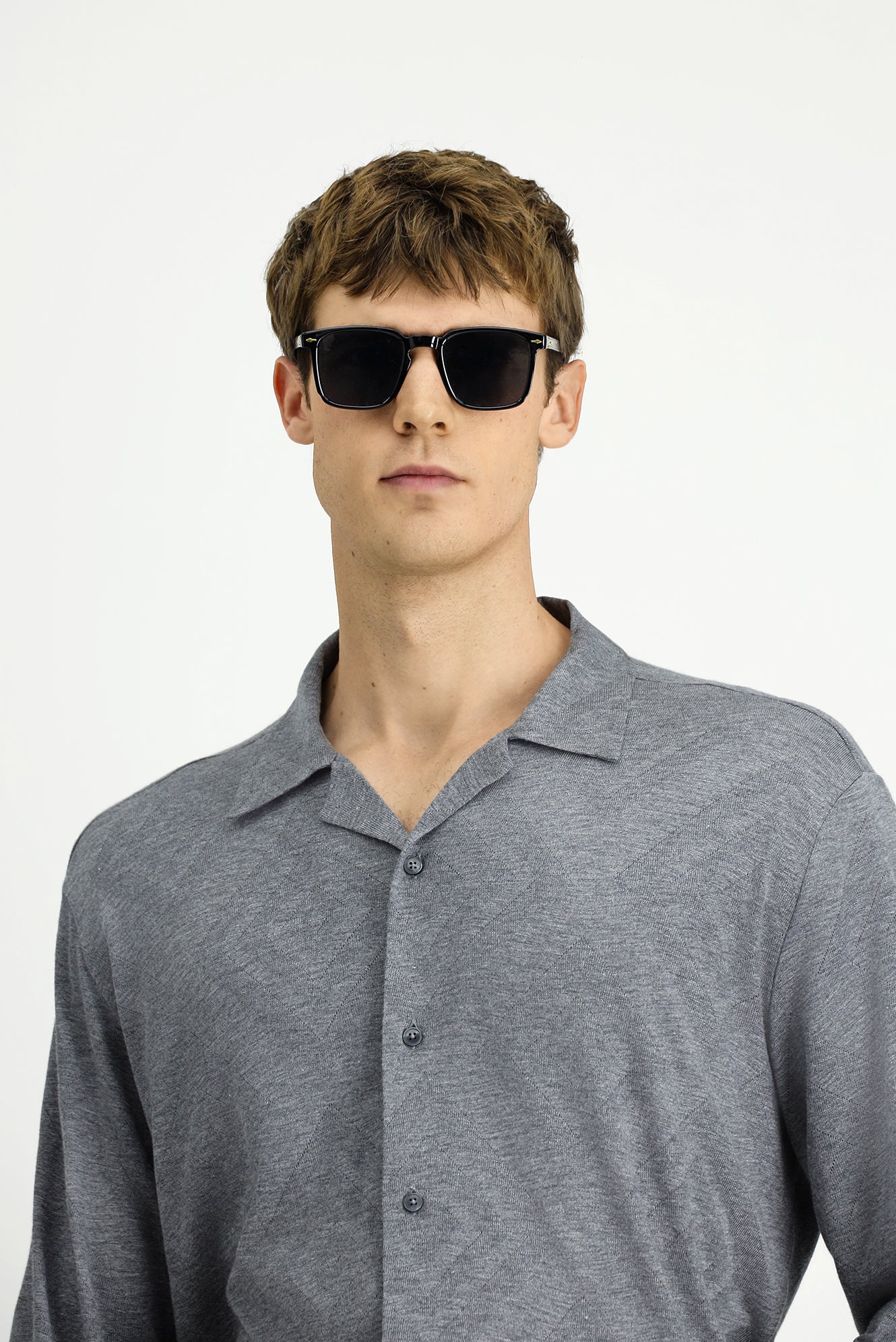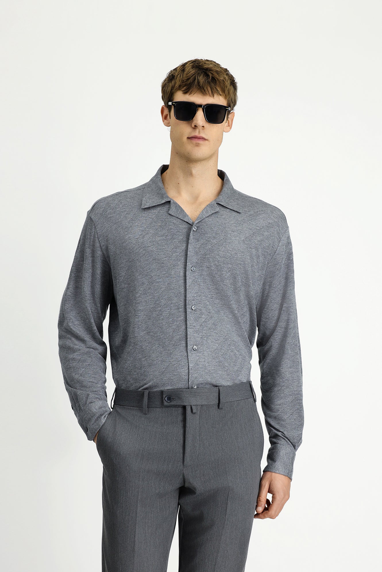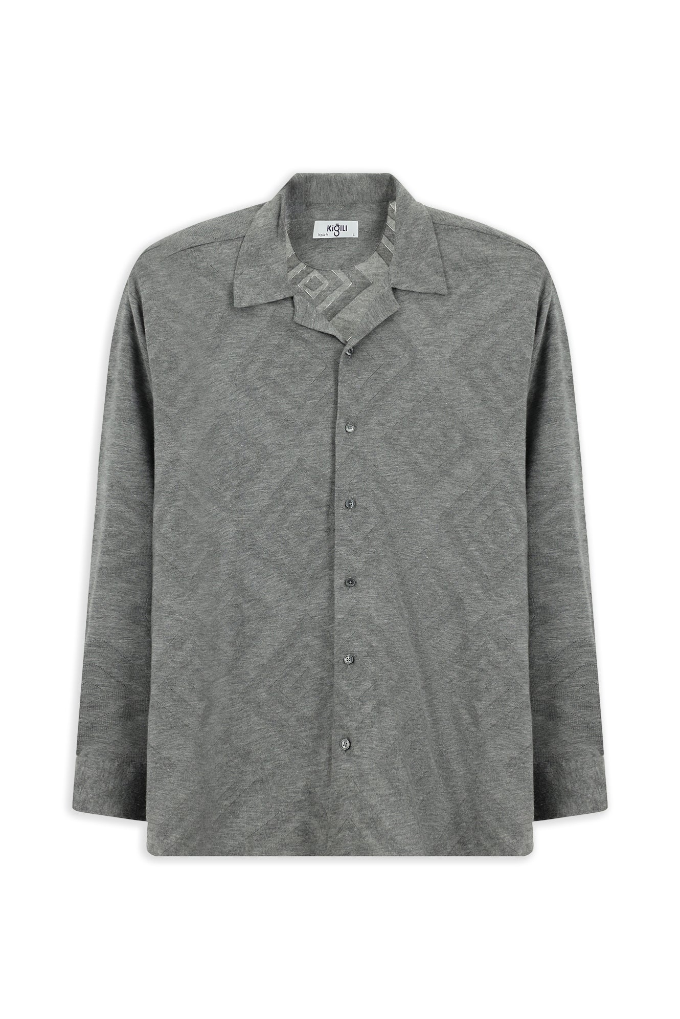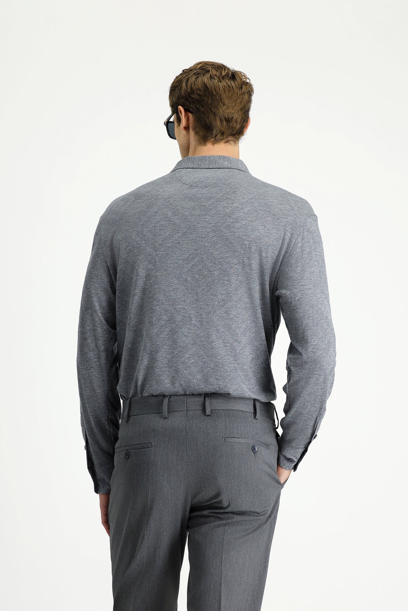 Orta Gri Uzun Kol Regular Fit Desenli Örme Spor Gömlek