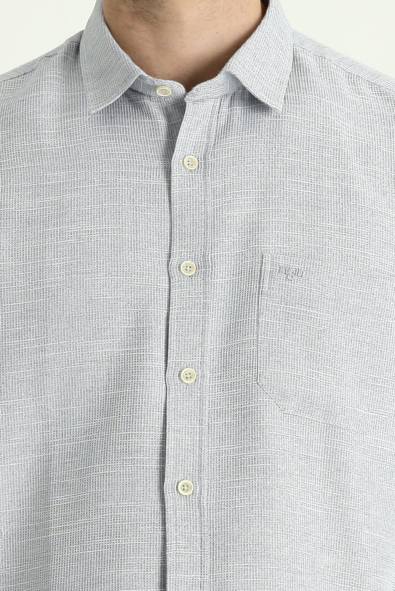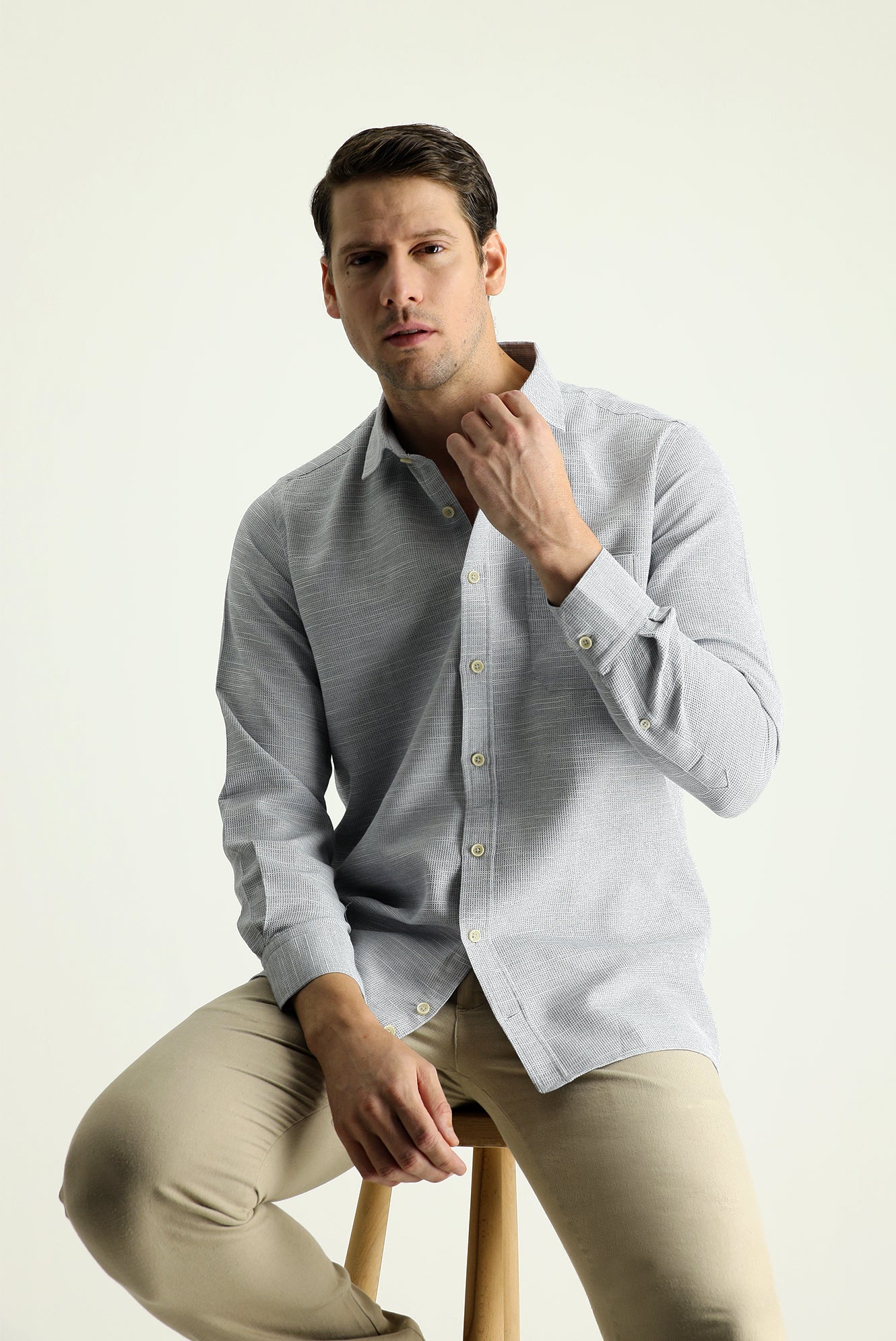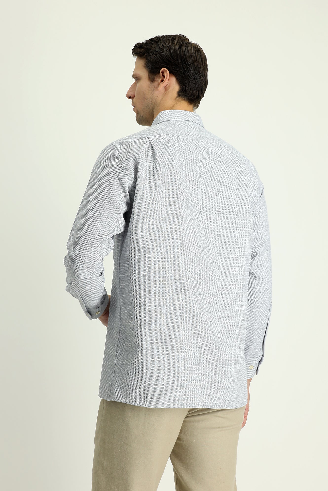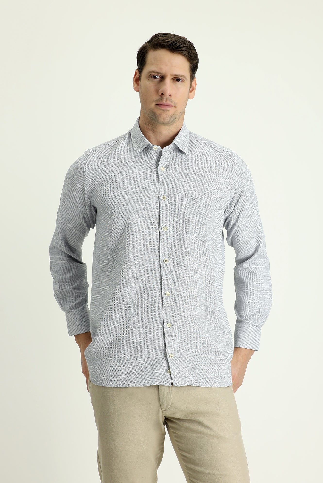 Orta Gri Uzun Kol Regular Fit Desenli Pamuklu Gömlek